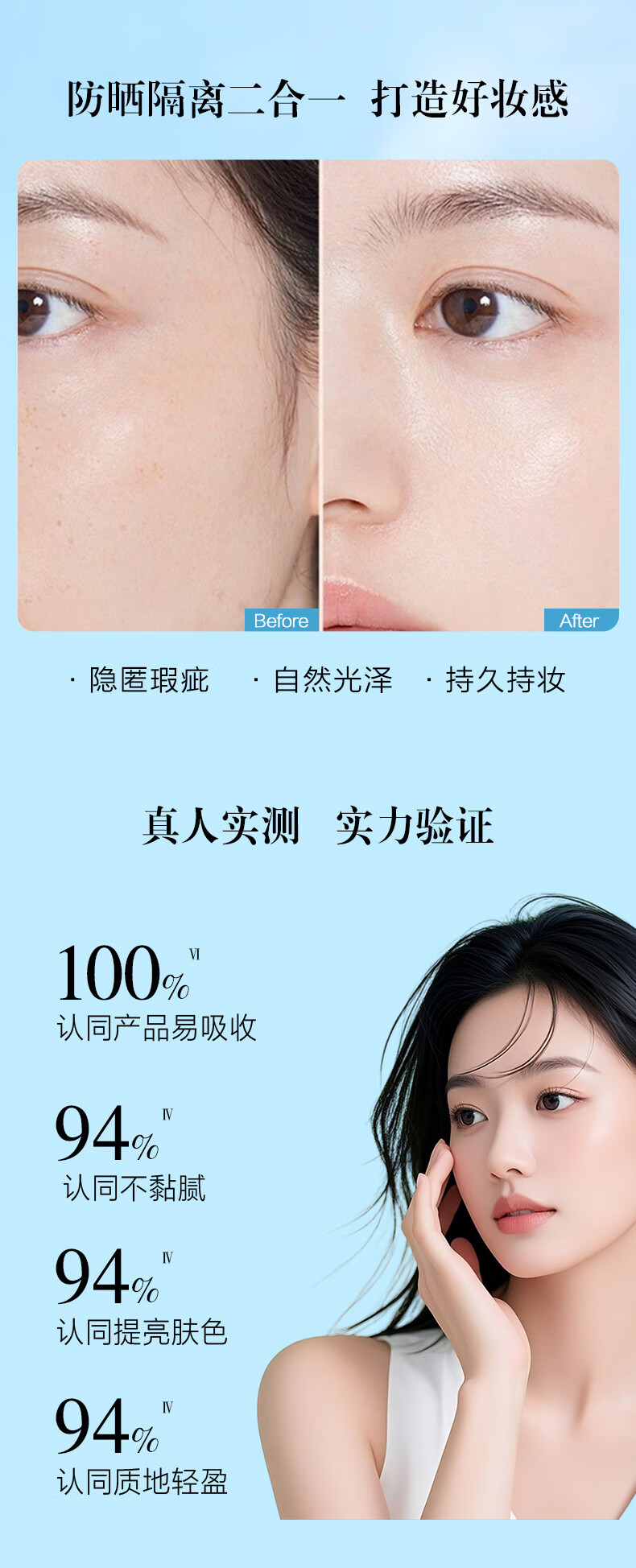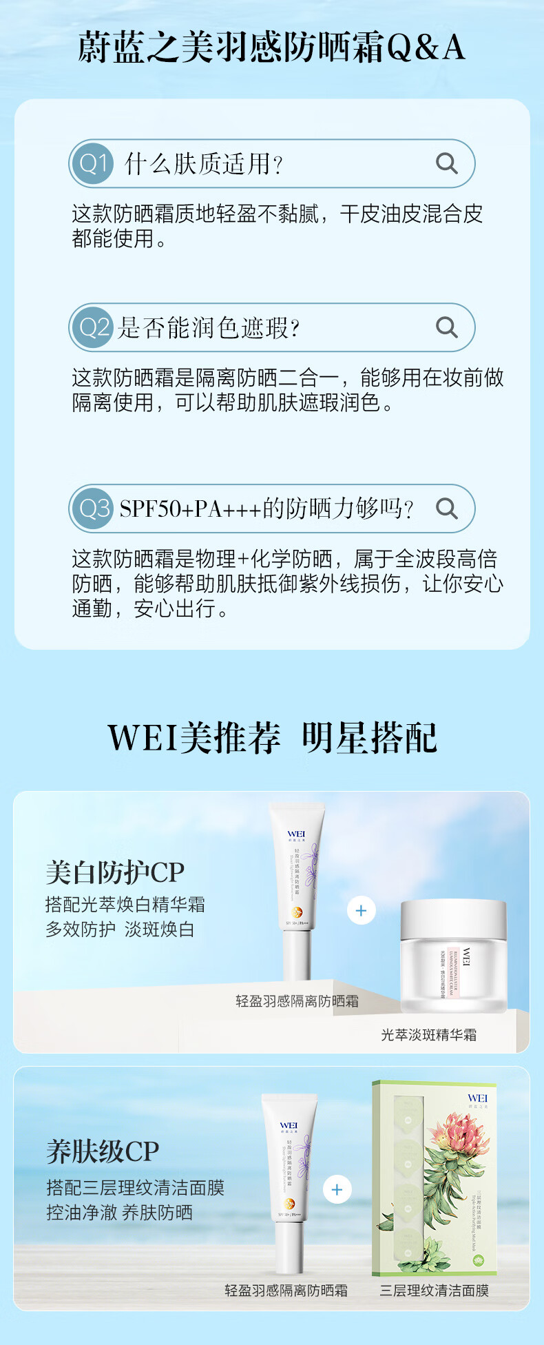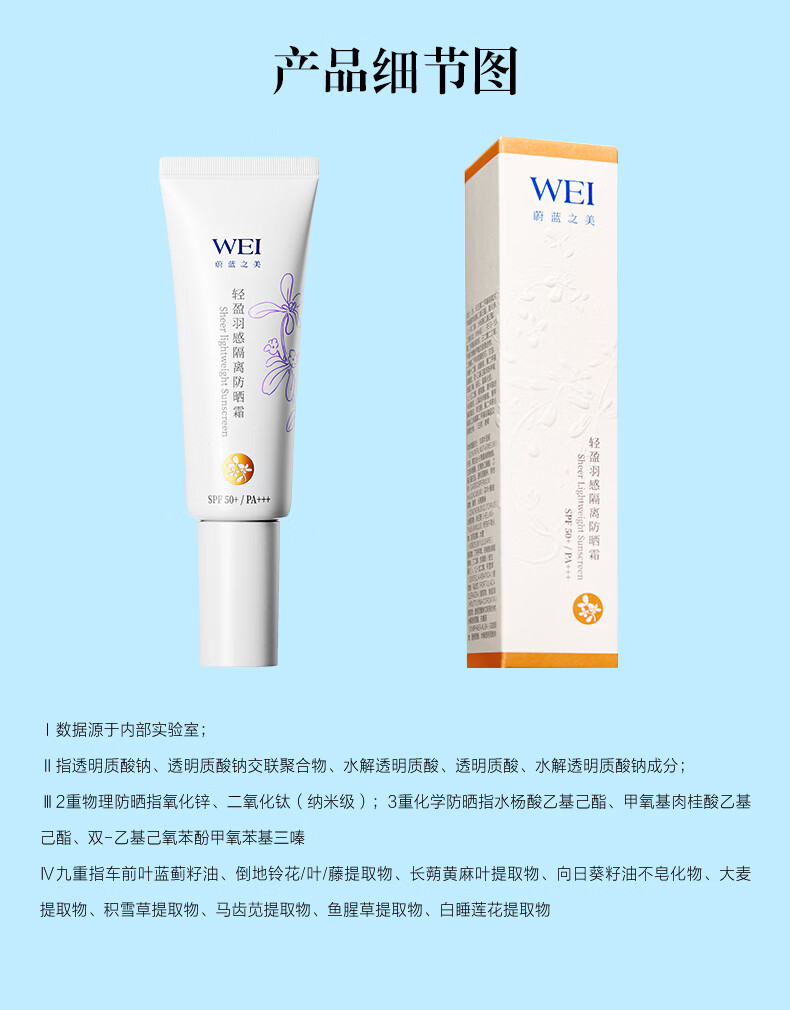 蔚蓝之美WEI轻盈羽感隔离防晒霜 户外面部高倍防晒乳防紫外线SPF50+男女士