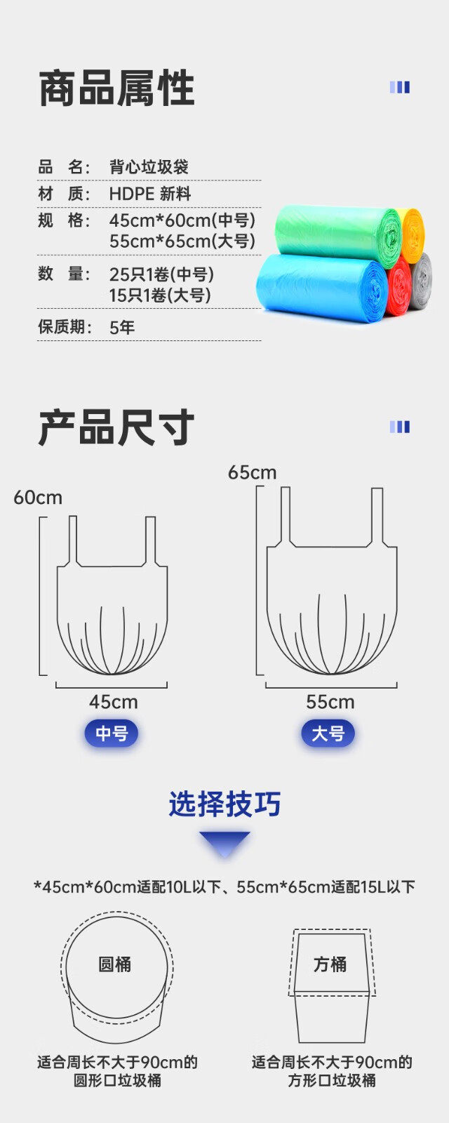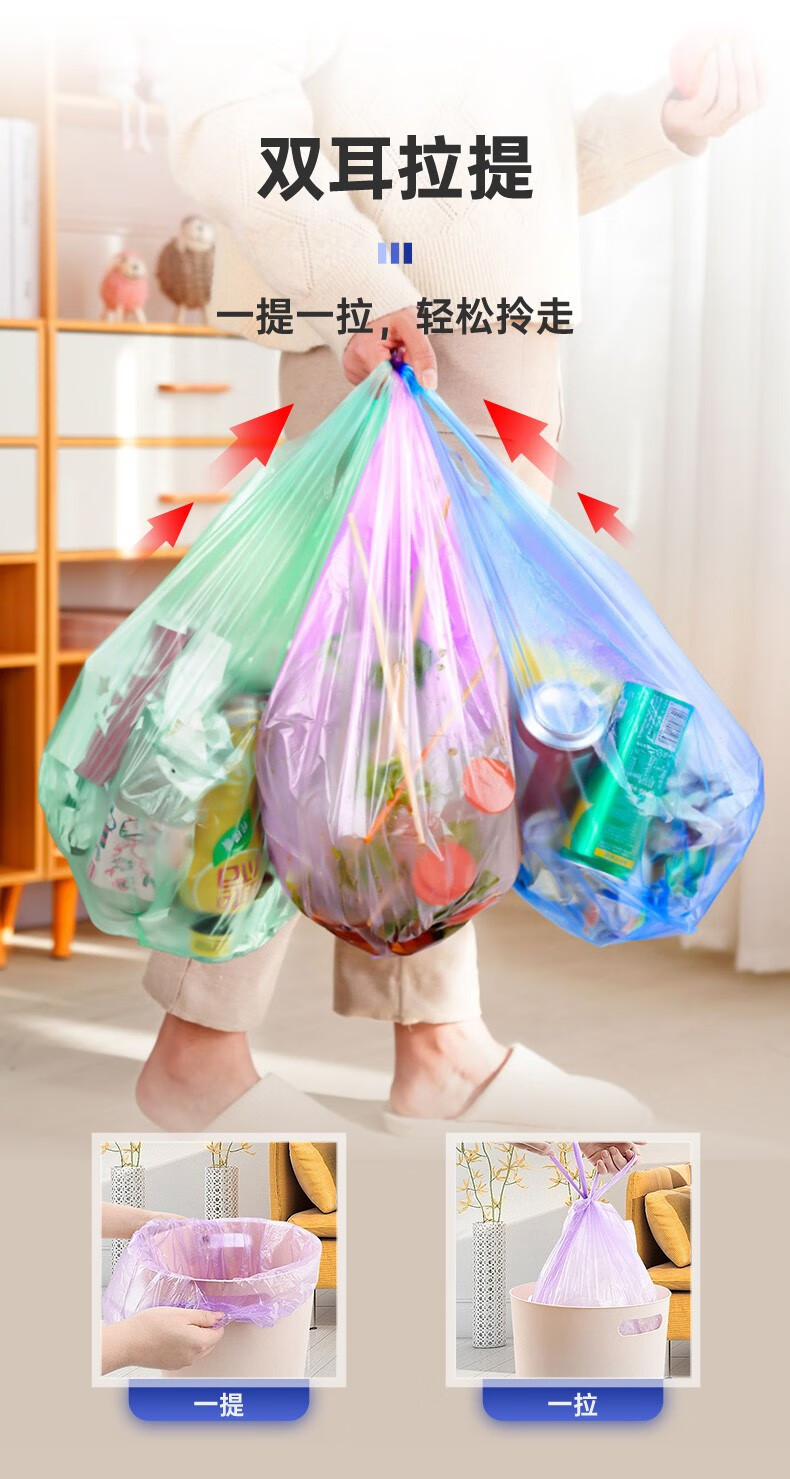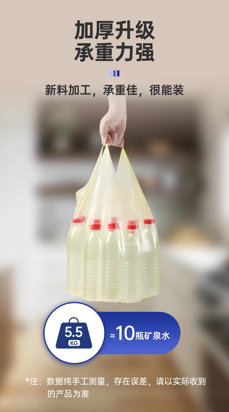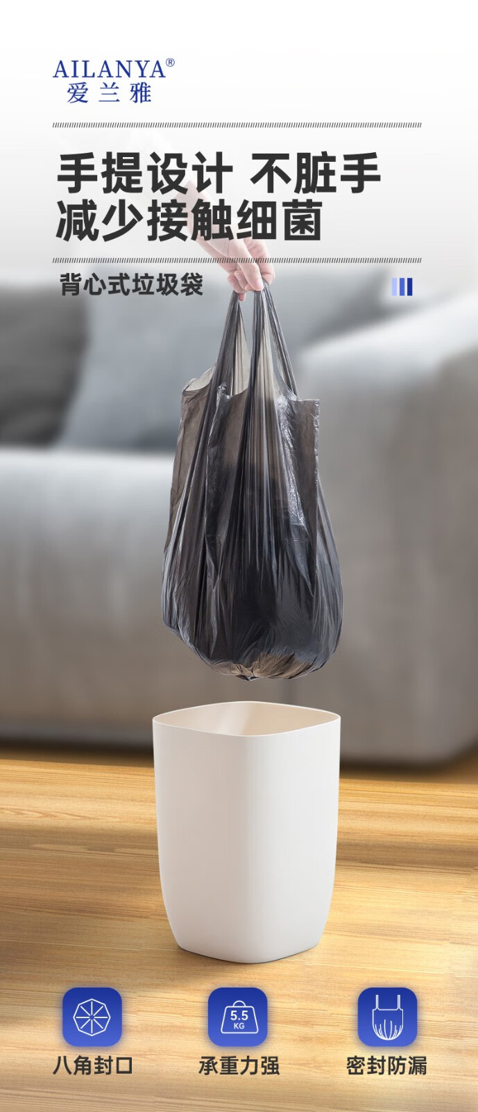 爱兰雅 背心手提式垃圾袋 家用商用办公卫生间厨房加厚中号塑料袋 45*50抽绳300个装(20卷)