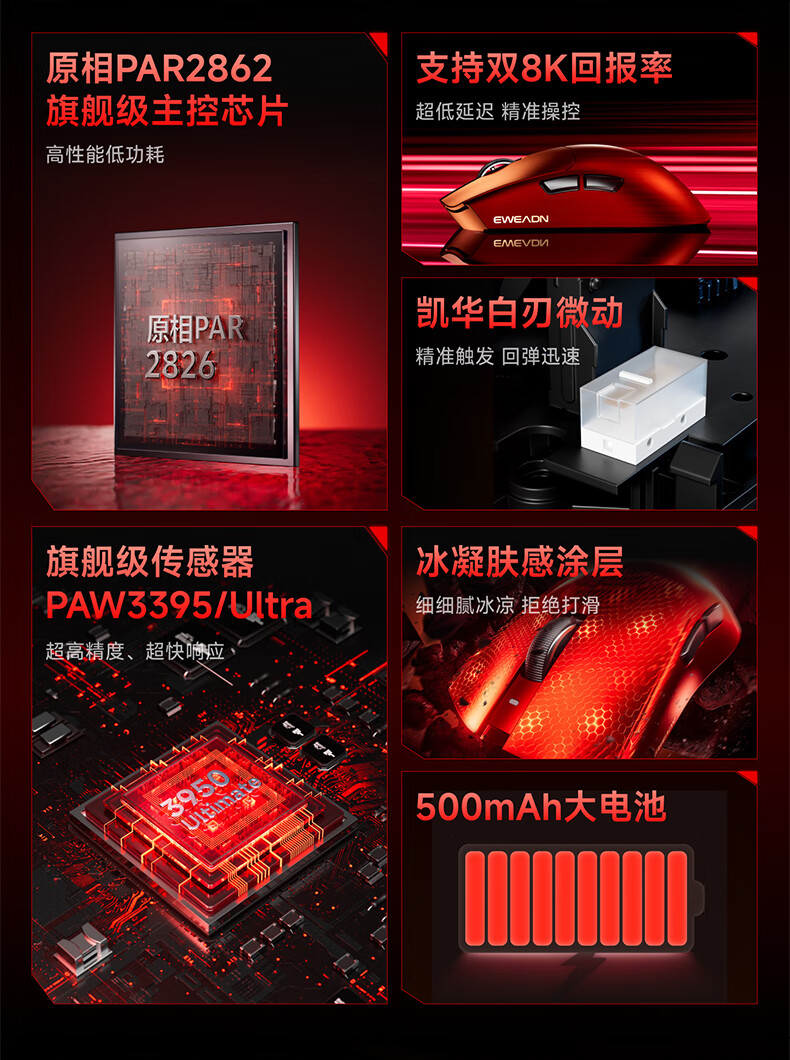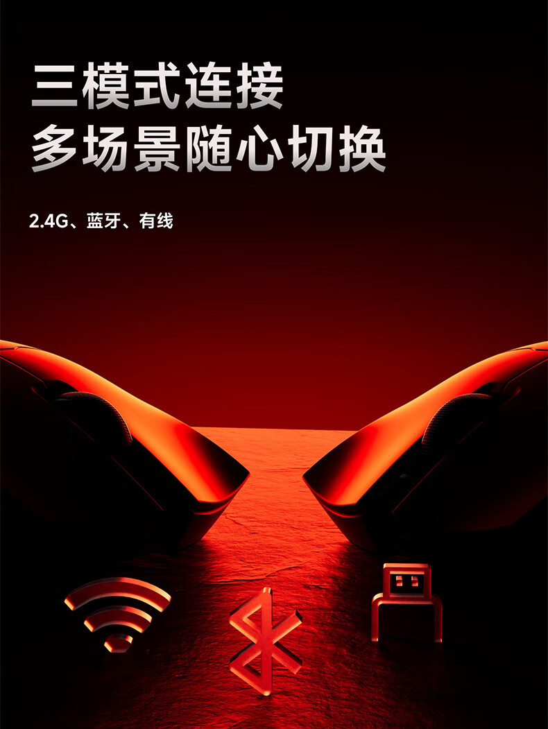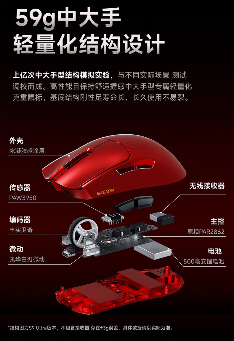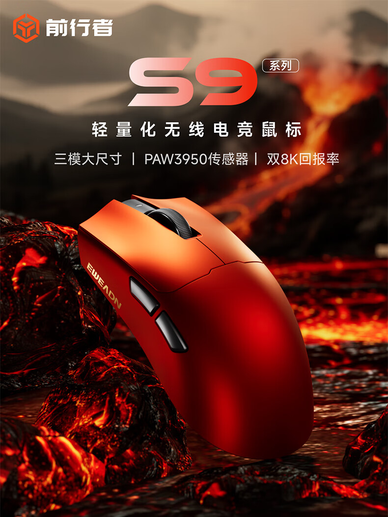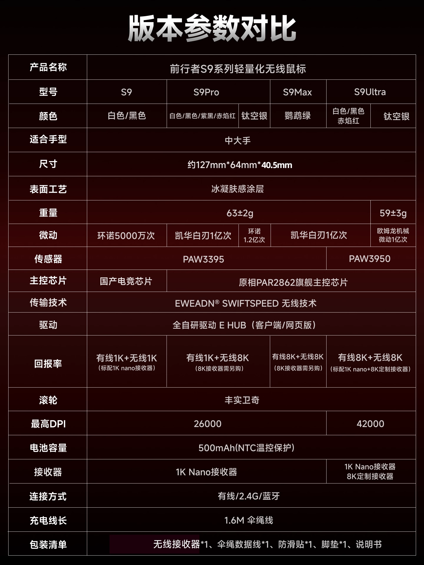 前行者S9Pro/Ultra有线无线鼠标蓝牙三模轻量化游戏PAW3950/3395电竞8K回报率笔记本台式电脑中大手专用 S9Pro夜黑-3395+凯华白刃+支持无线8K