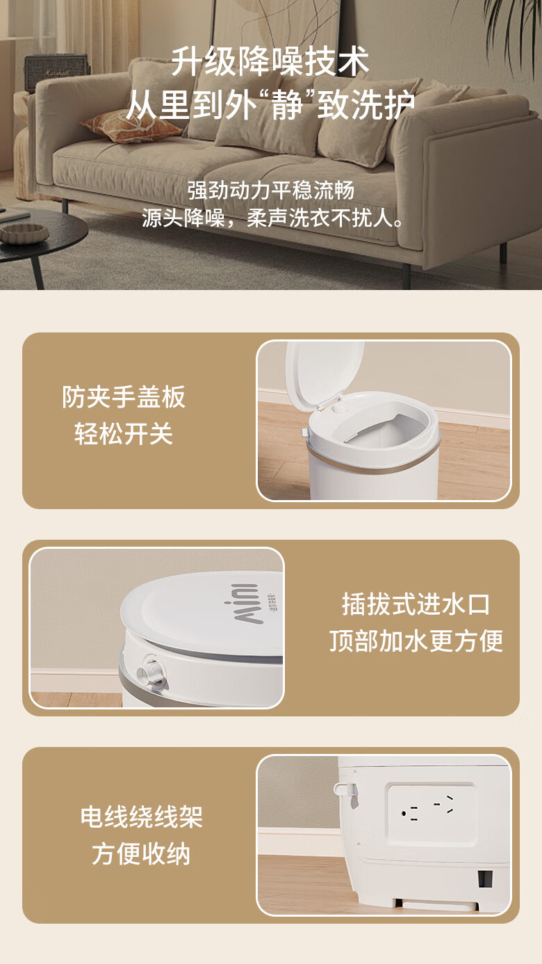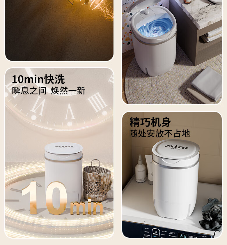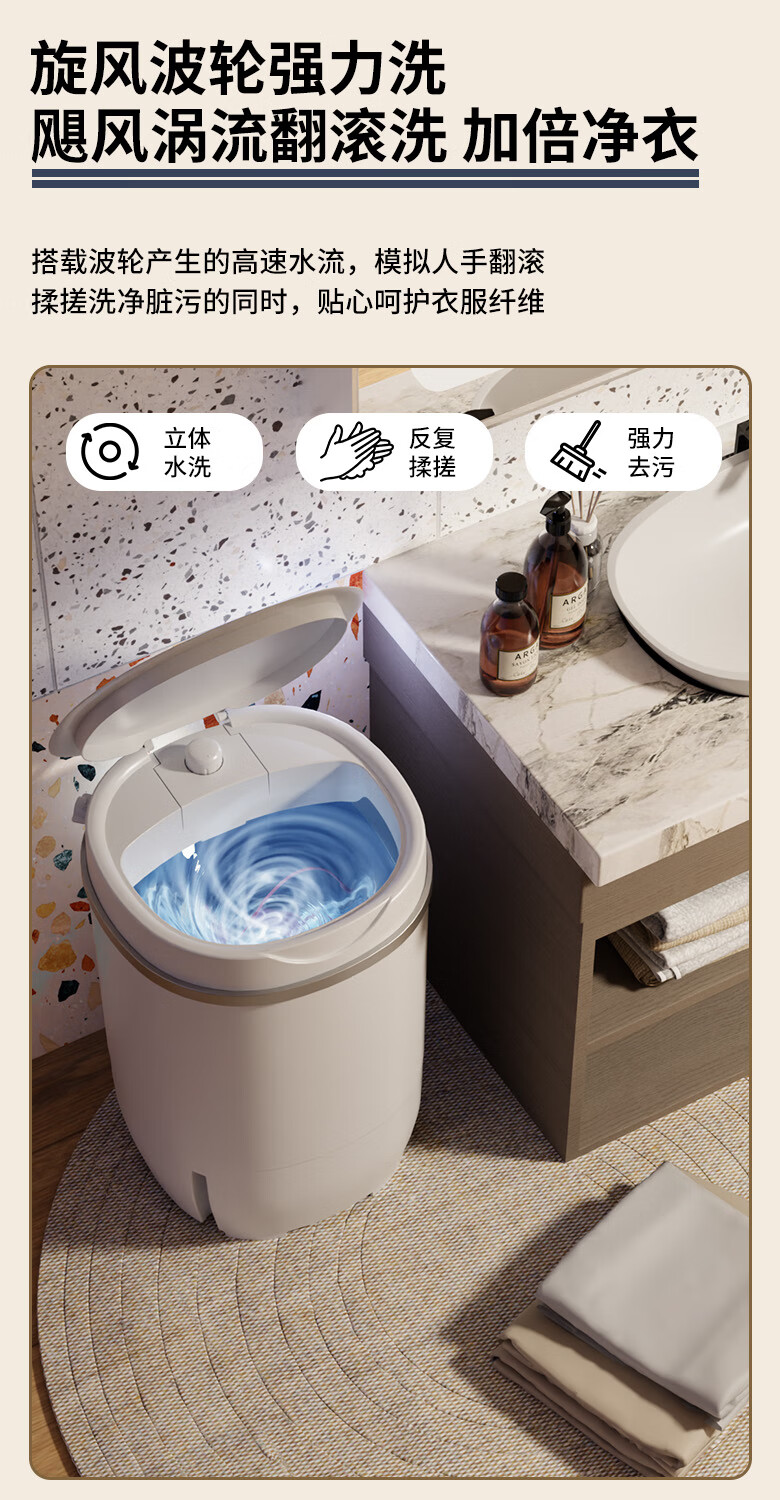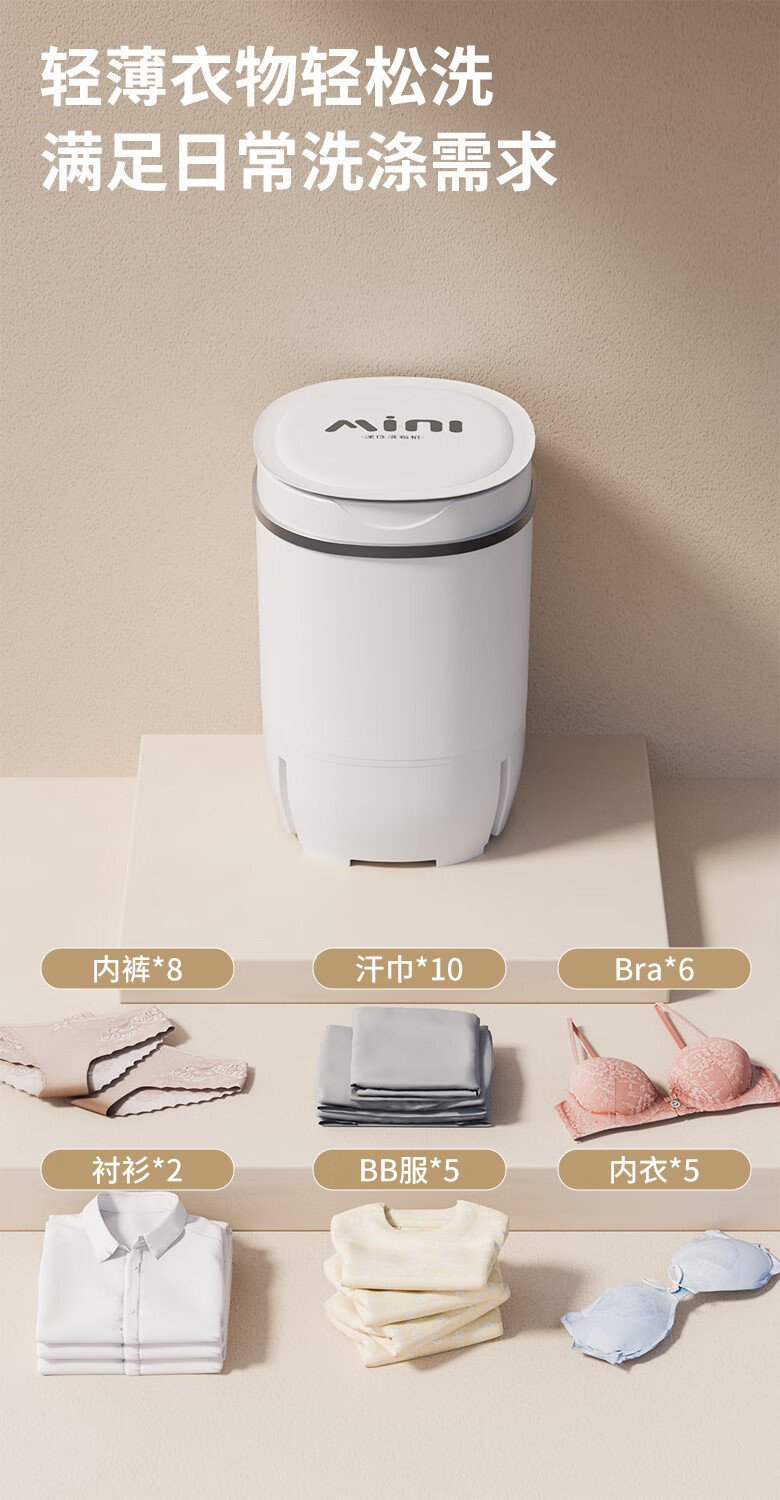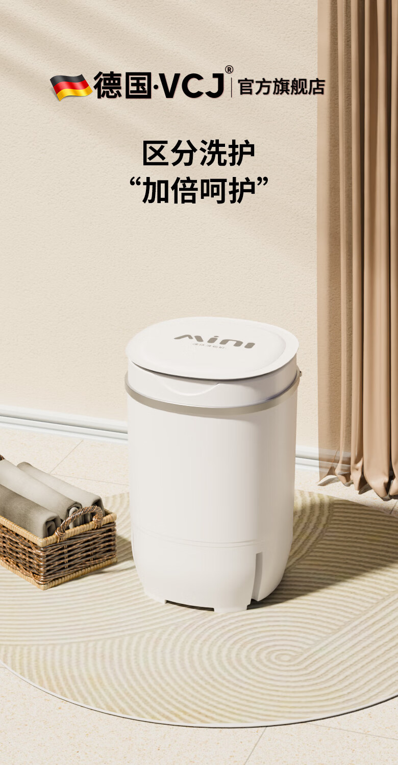 VCJ洗衣机半全自动迷你洗衣机小型洗脱一体小型家用母婴内衣裤洗袜子神器儿童单身人宿舍出租房 新4.5KG【立体水洗去污*定时降噪快洗】珍珠白