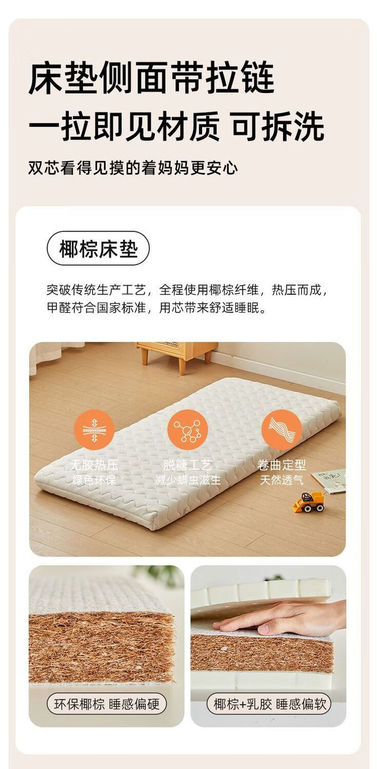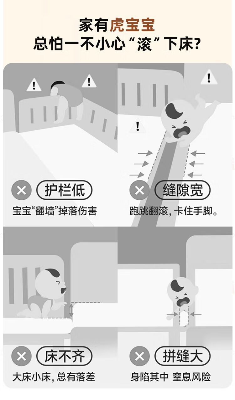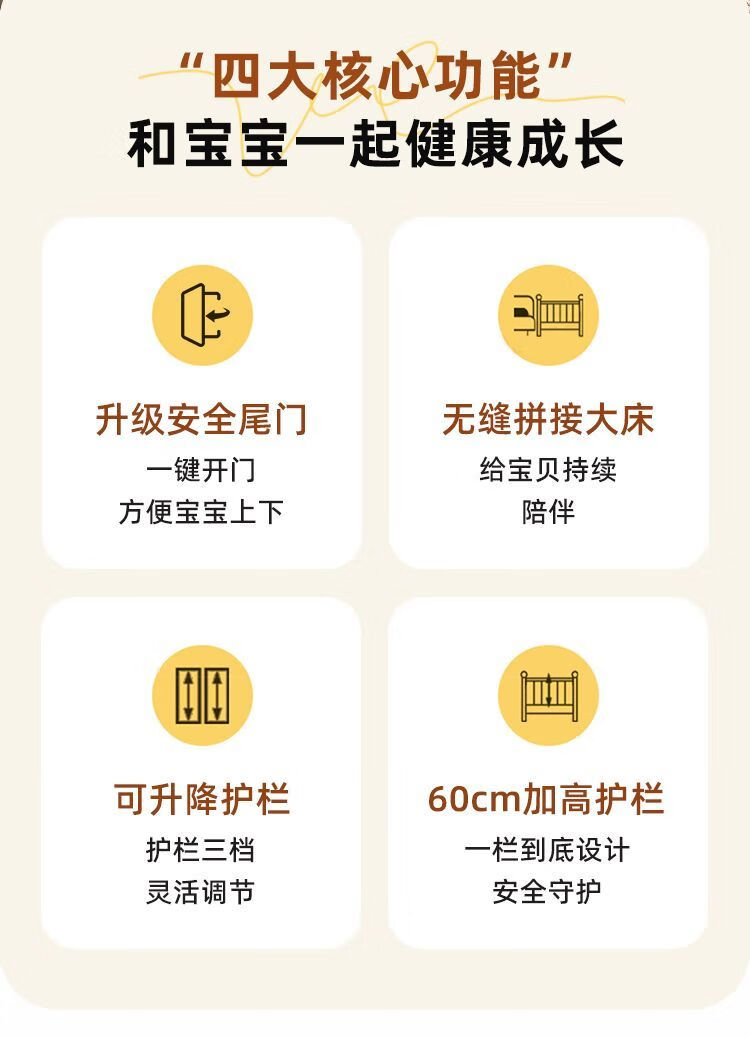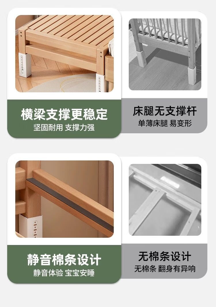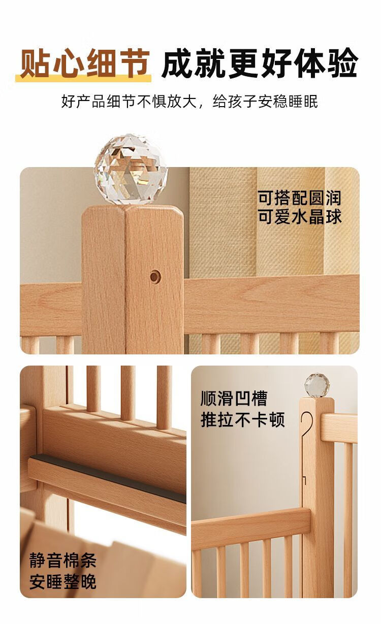 欣慕雅拼接床榉木床边加宽婴儿小床宝宝床大人可睡护栏可升降床儿童大床 带横撑平铺款 150*50-【床腿15档可调节】胡桃木