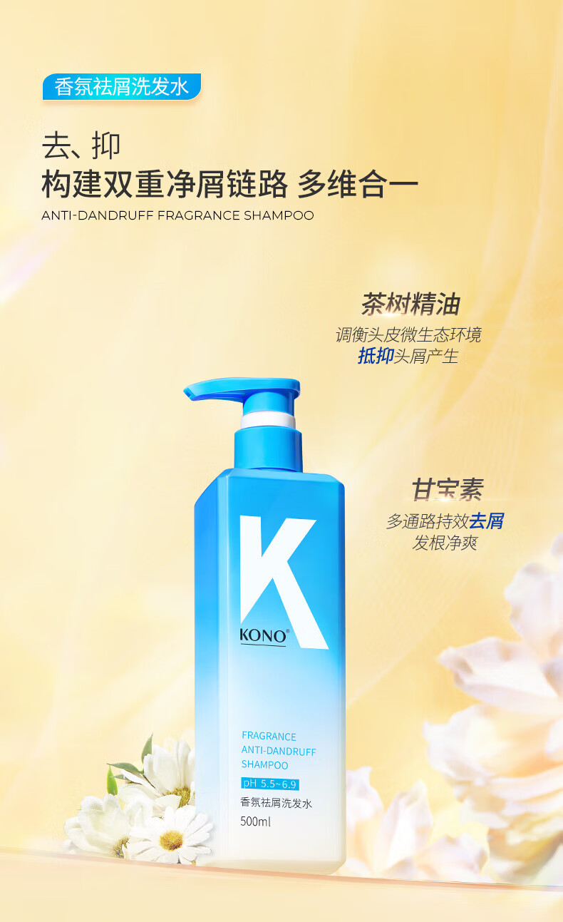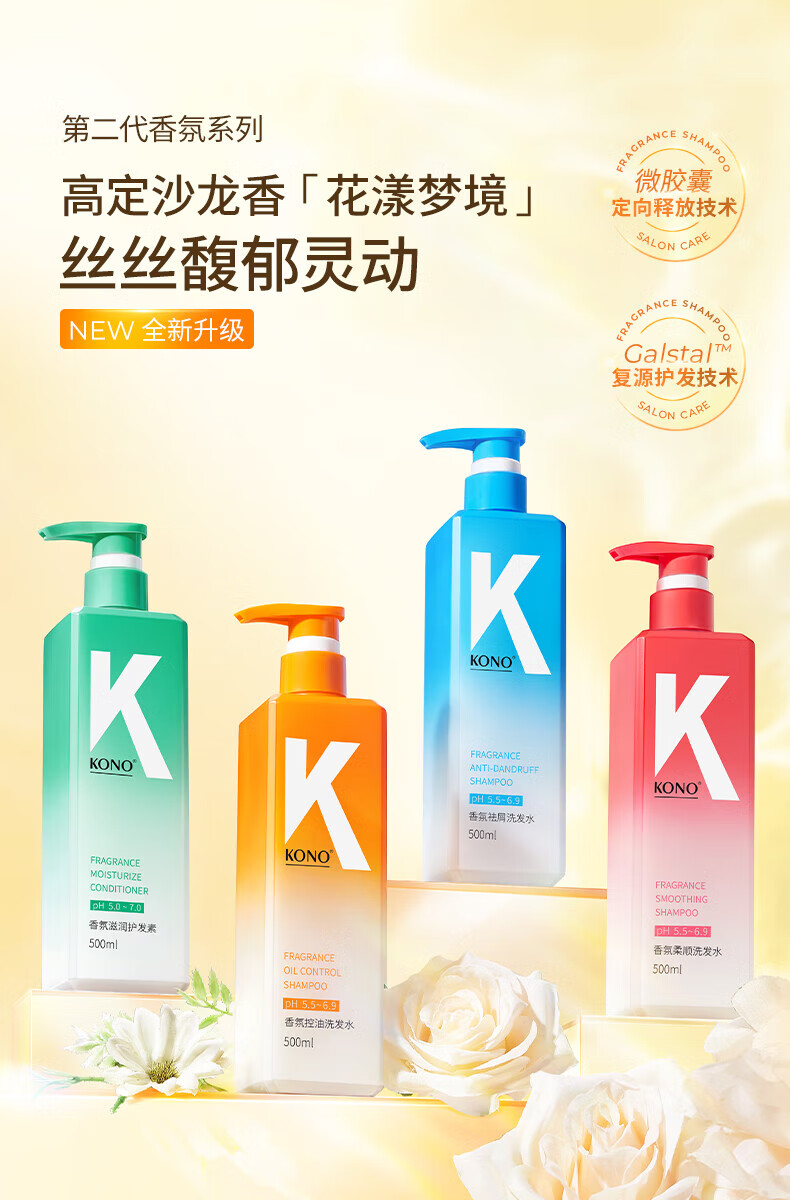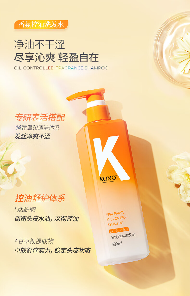KONO卡厘花漾香氛控油去屑洗发水持久留香蓬松洗发膏露1000ml
