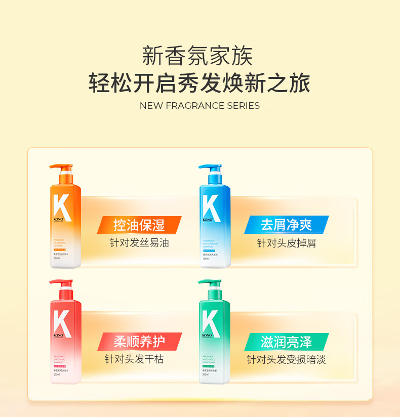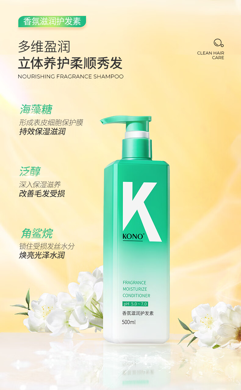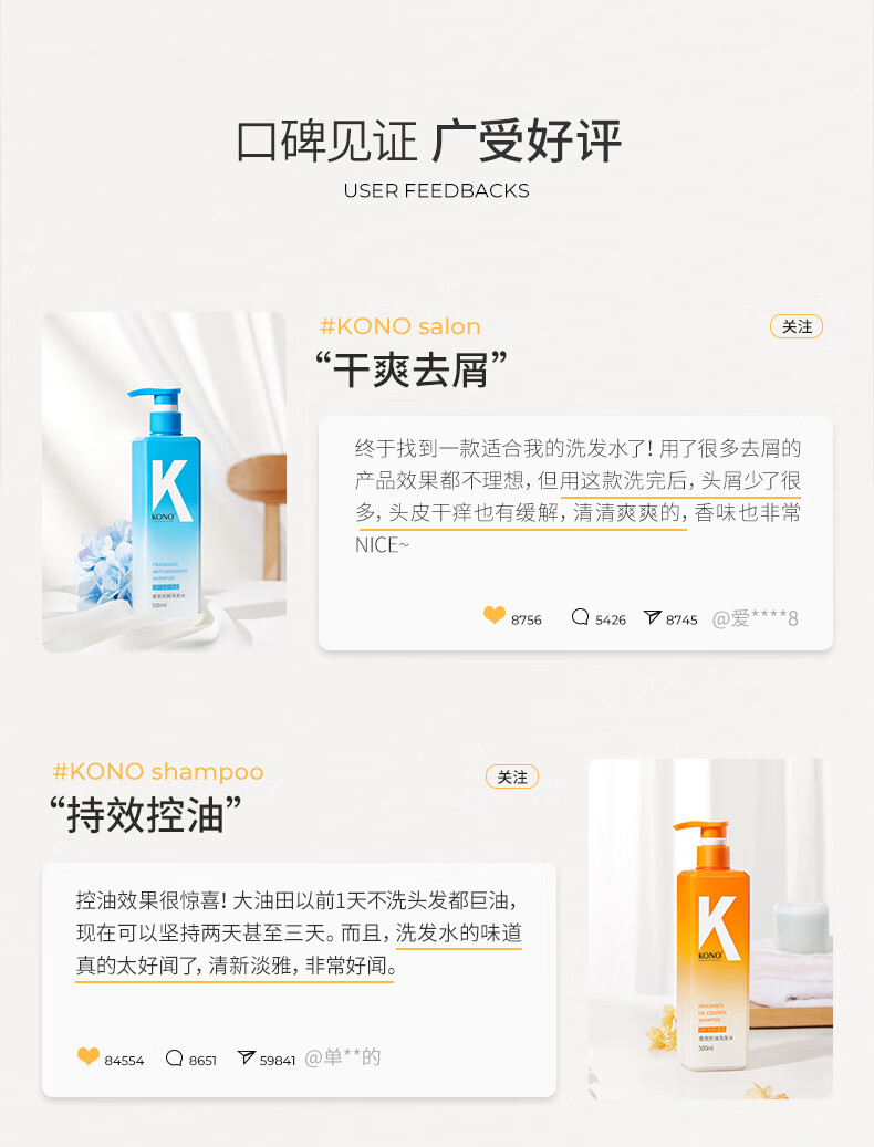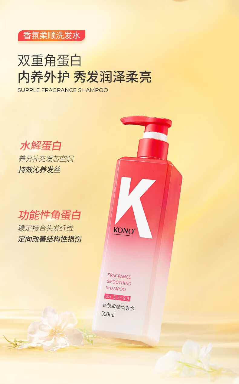 KONO卡厘花漾香氛控油去屑洗发水持久留香蓬松洗发膏露1000ml
