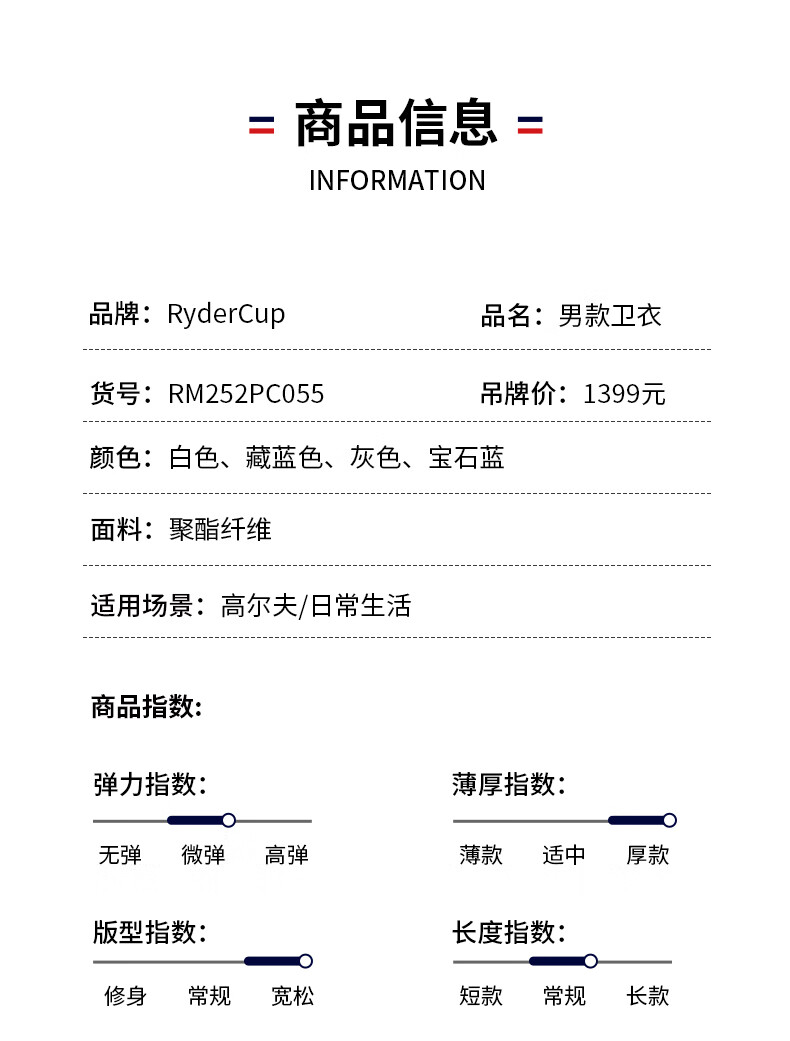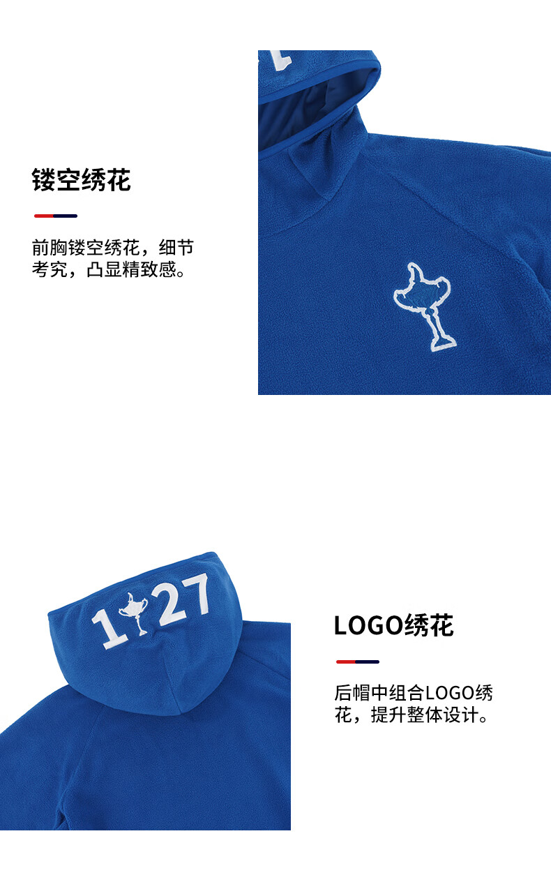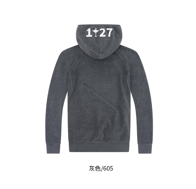 RYDER CUP莱德杯高尔夫服装男装卫衣25秋冬摇粒绒防风御寒保暖连帽运动卫衣 灰色 M