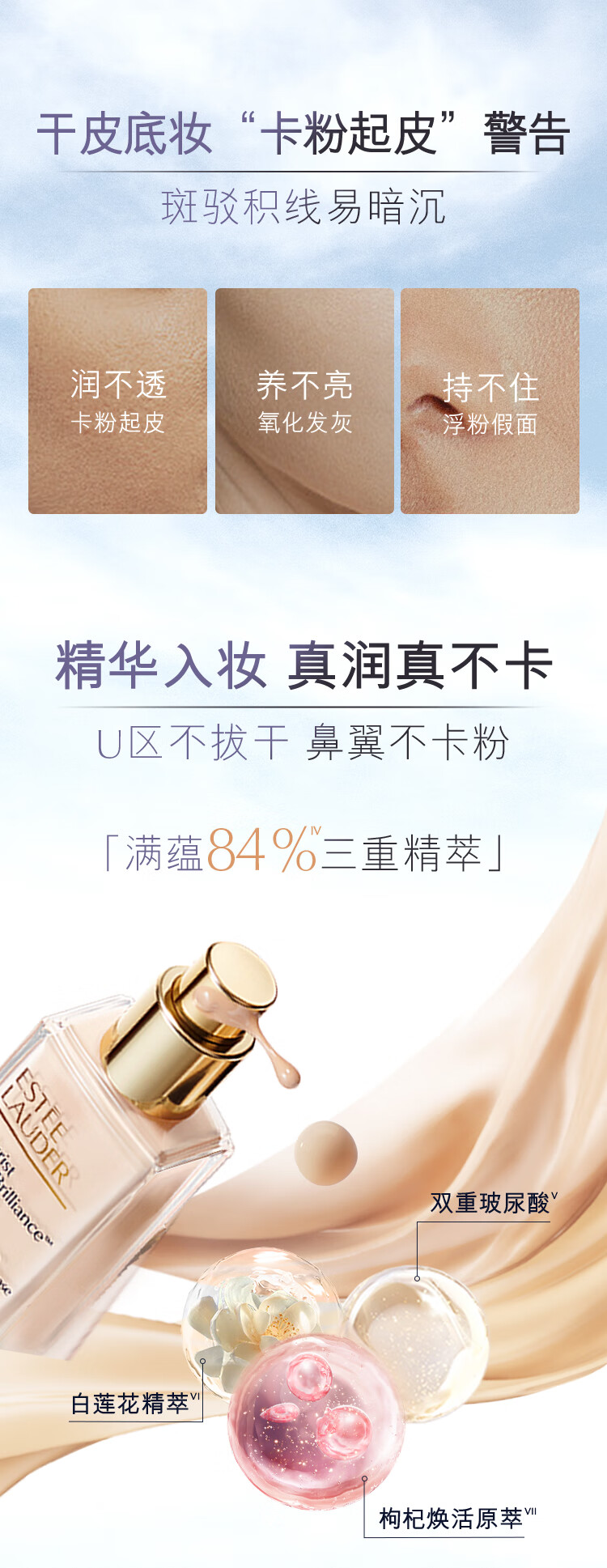 雅诗兰黛沁水粉底液62#暖调瓷白(1W0)30ml干皮持久遮瑕化妆品礼盒生日礼物