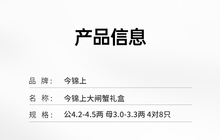 【活蟹】今锦上大闸蟹鲜活螃蟹礼盒公4.2-4.5两母3.0-3.3两4对8只精品礼盒礼品去绳足重