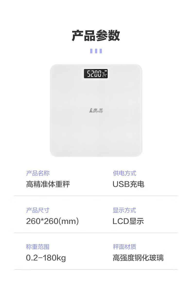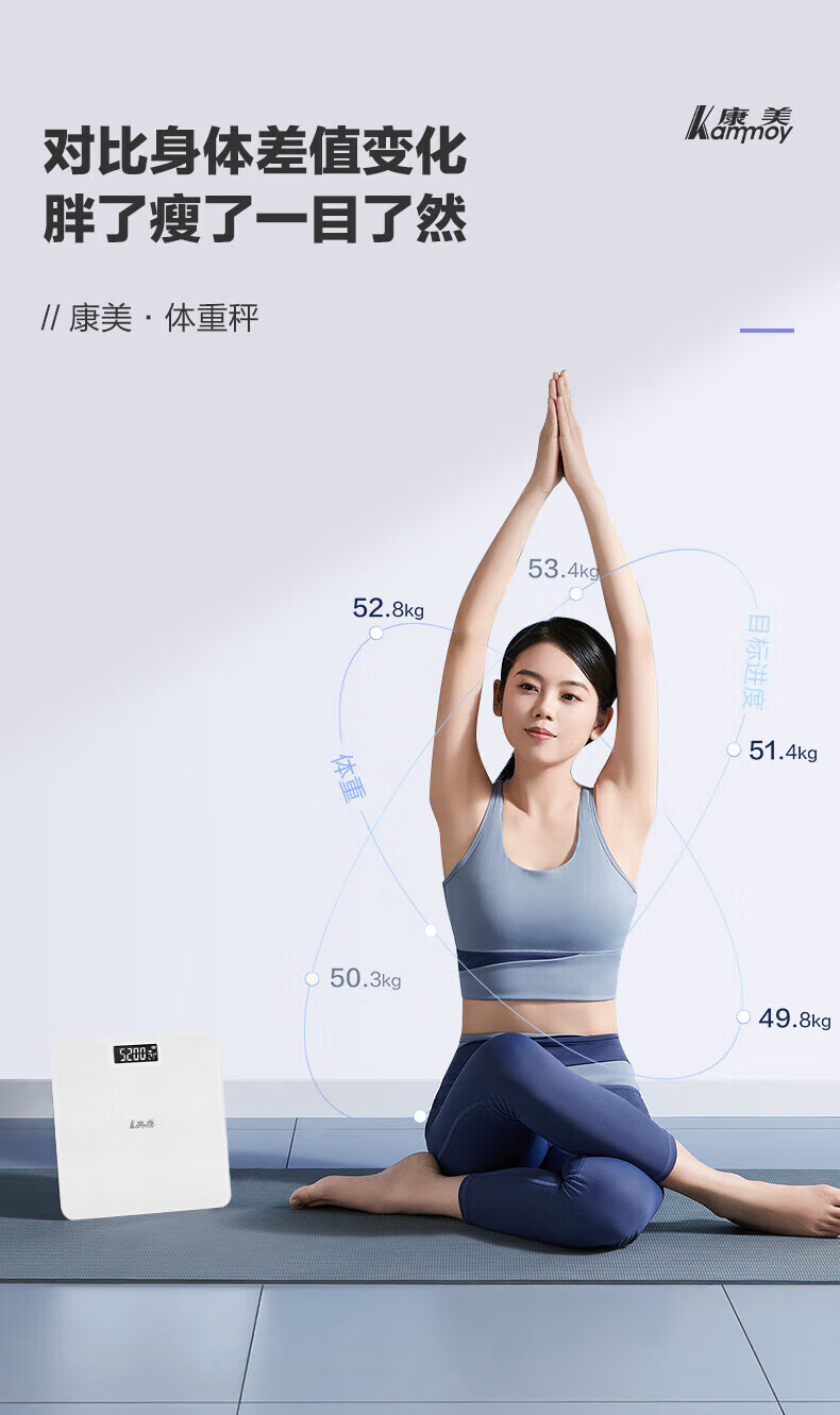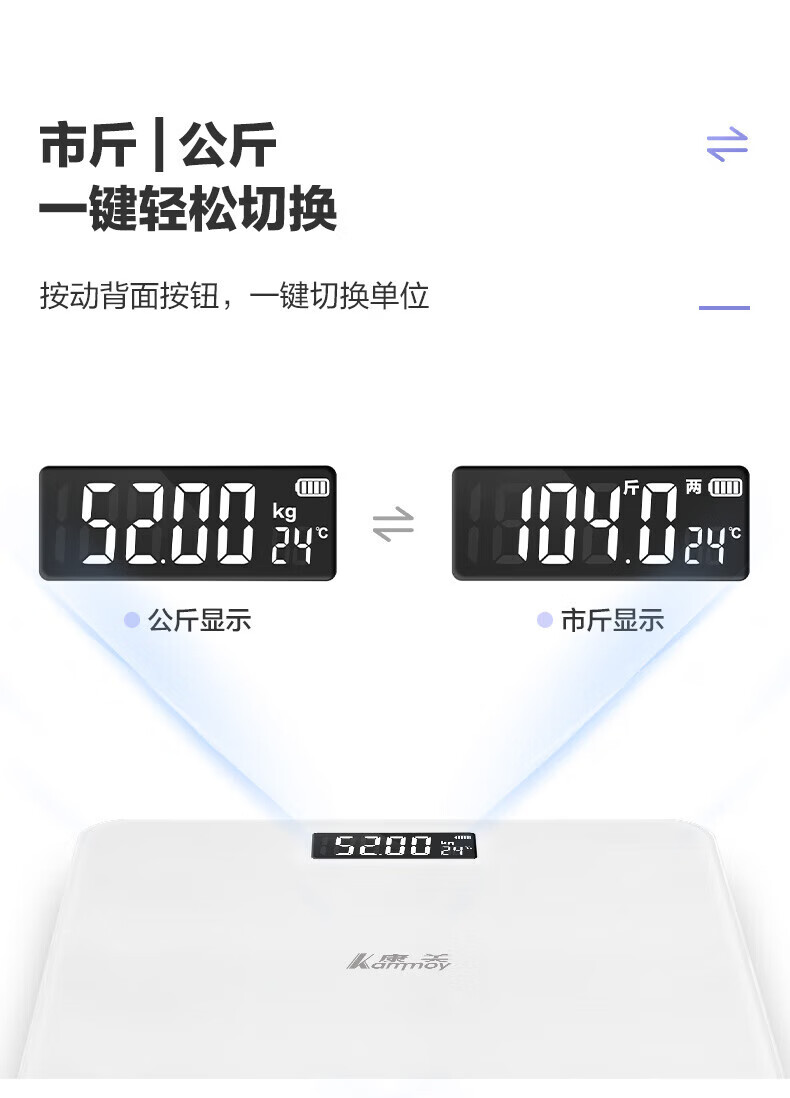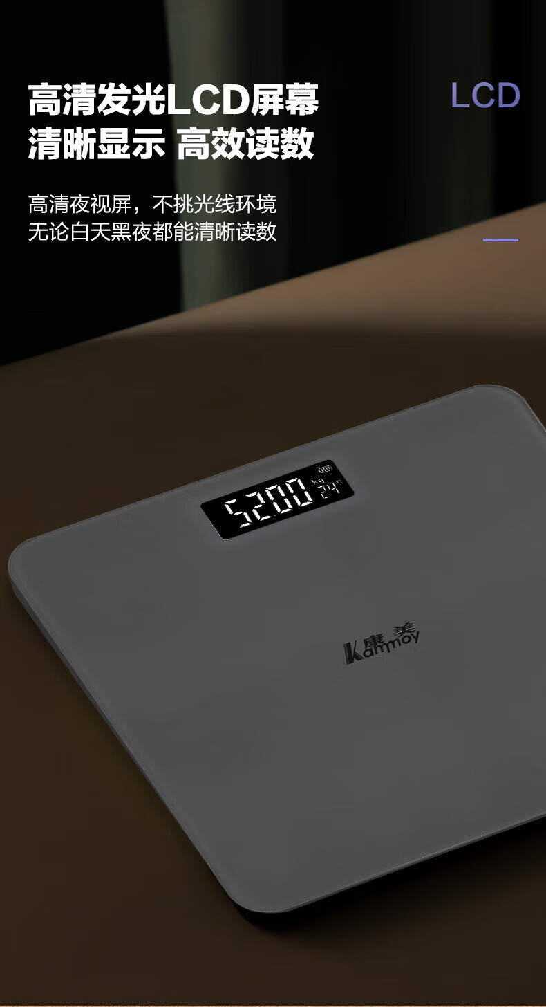香山康美 体重秤 电子秤人体秤家用健康秤减肥 高精度称精准高清显示屏 kammoy 体重秤LCD显示【电池款】