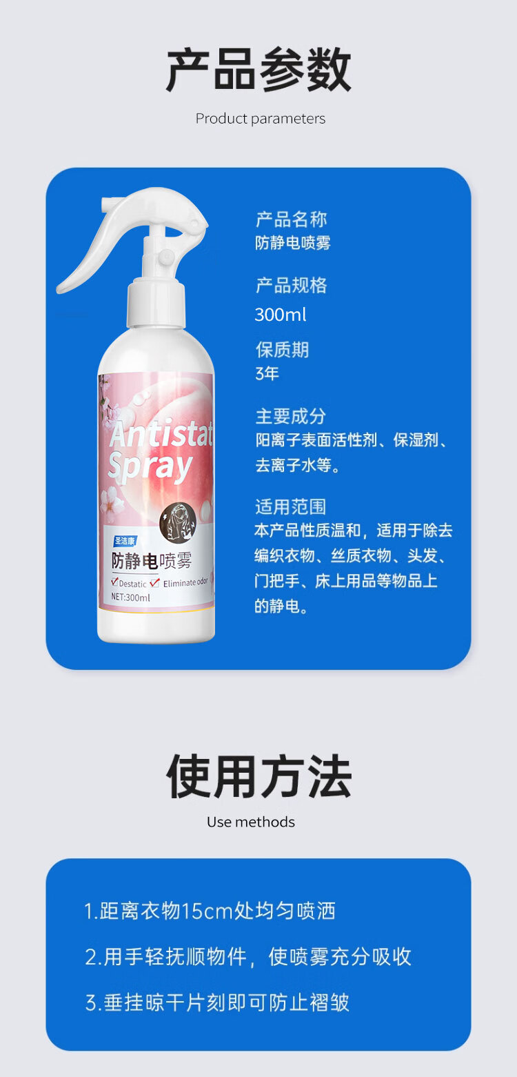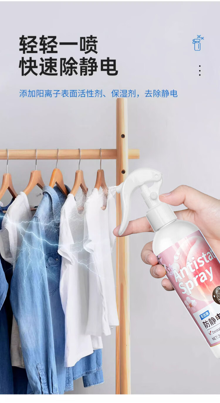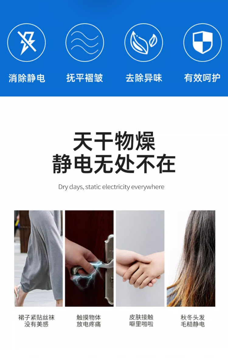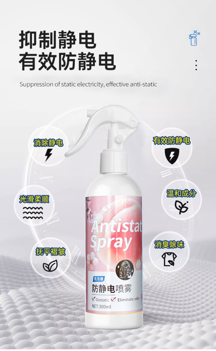 圣洁康防静电喷雾300ml衣物柔顺剂 去静电喷剂衣服去味持久留香氛 【薰衣草香氛】防静电喷雾300ml