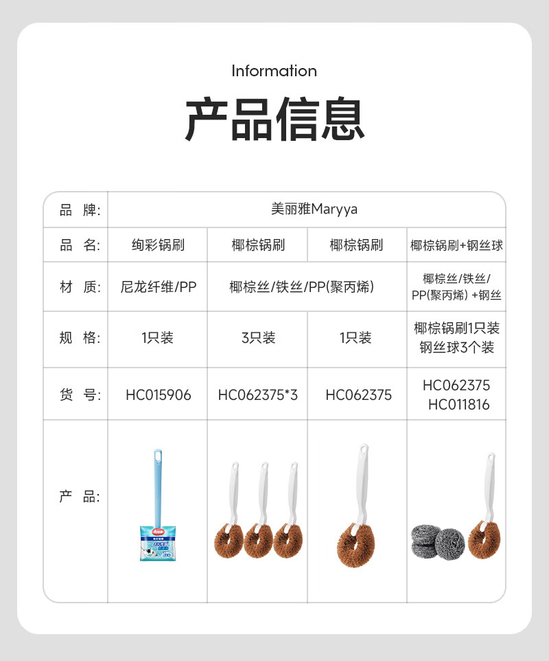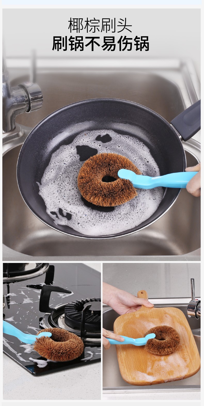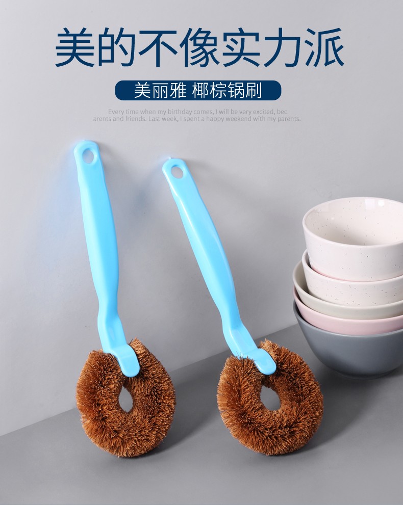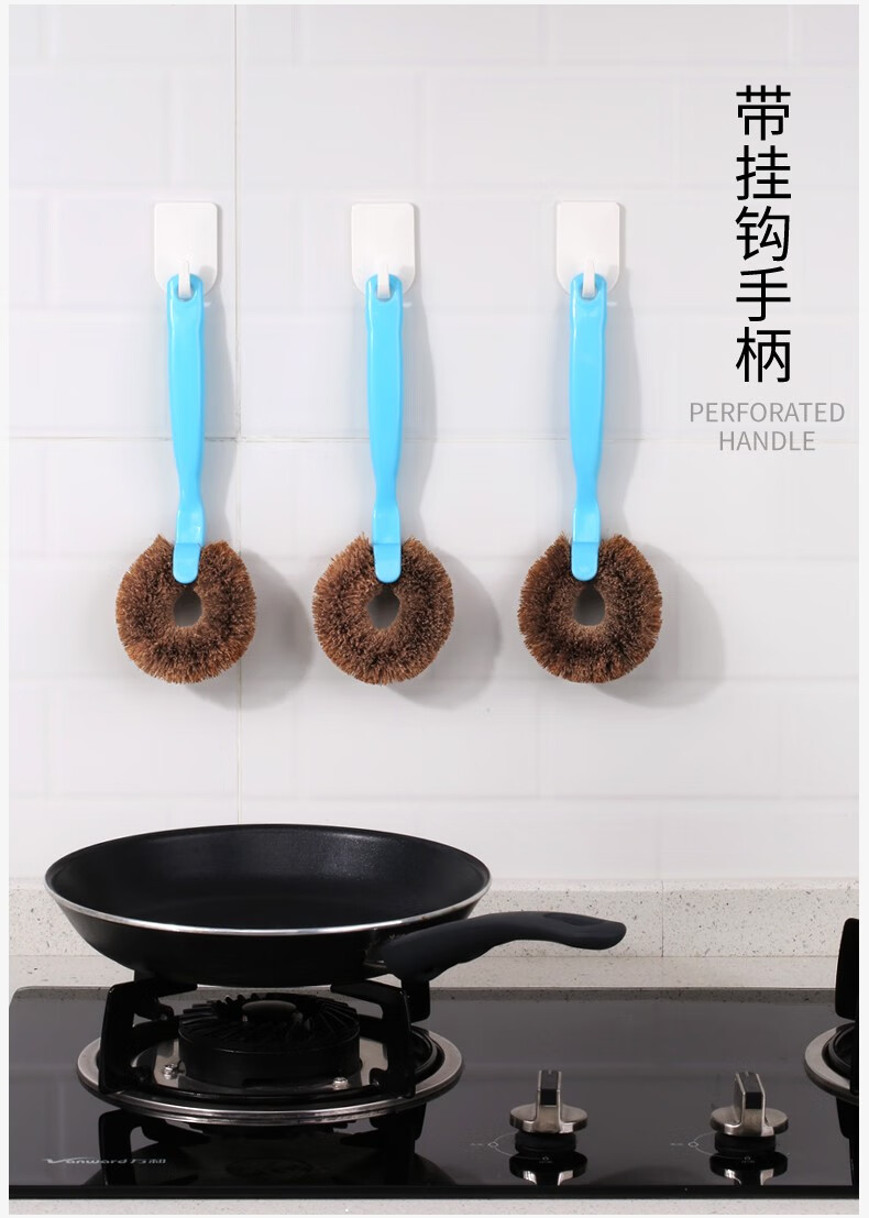 美丽雅长柄锅刷 家用厨房洗锅洗碗刷子水槽灶台去污清洁刷 椰棕锅刷【3只装】