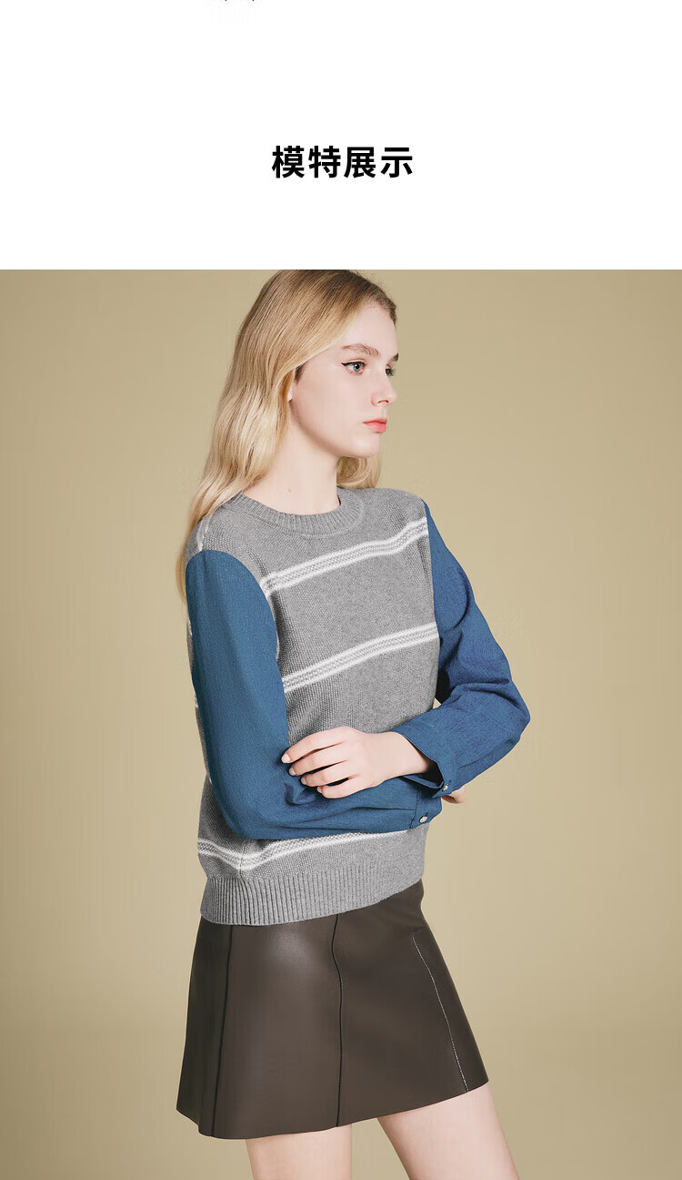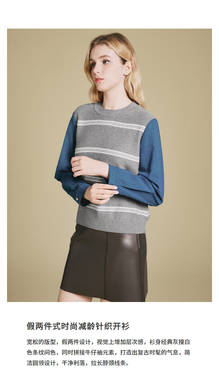 PSALTER诗篇专选2025年春季假两件式时尚减龄撞色拼接针织套头毛衫女 浅灰 XL 42