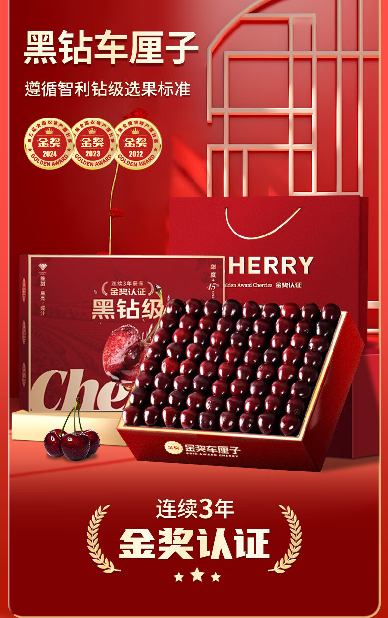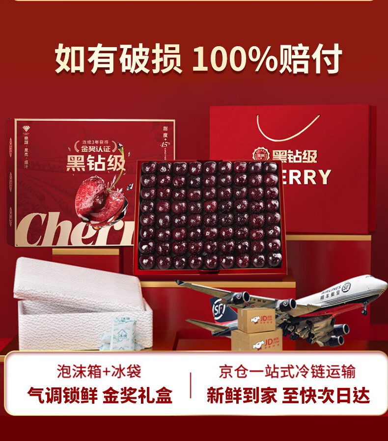 山姆大叔 智利车厘子【JD顺丰-多地次日达】4J级大樱桃水果礼盒年货礼品 2斤(净重) (划算装)尝鲜礼盒 【黑钻级】巨无霸|3J 30-32mm