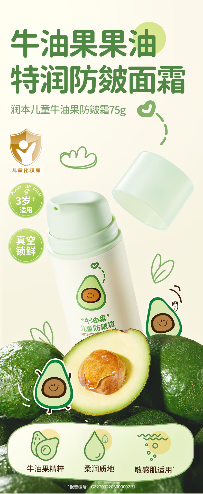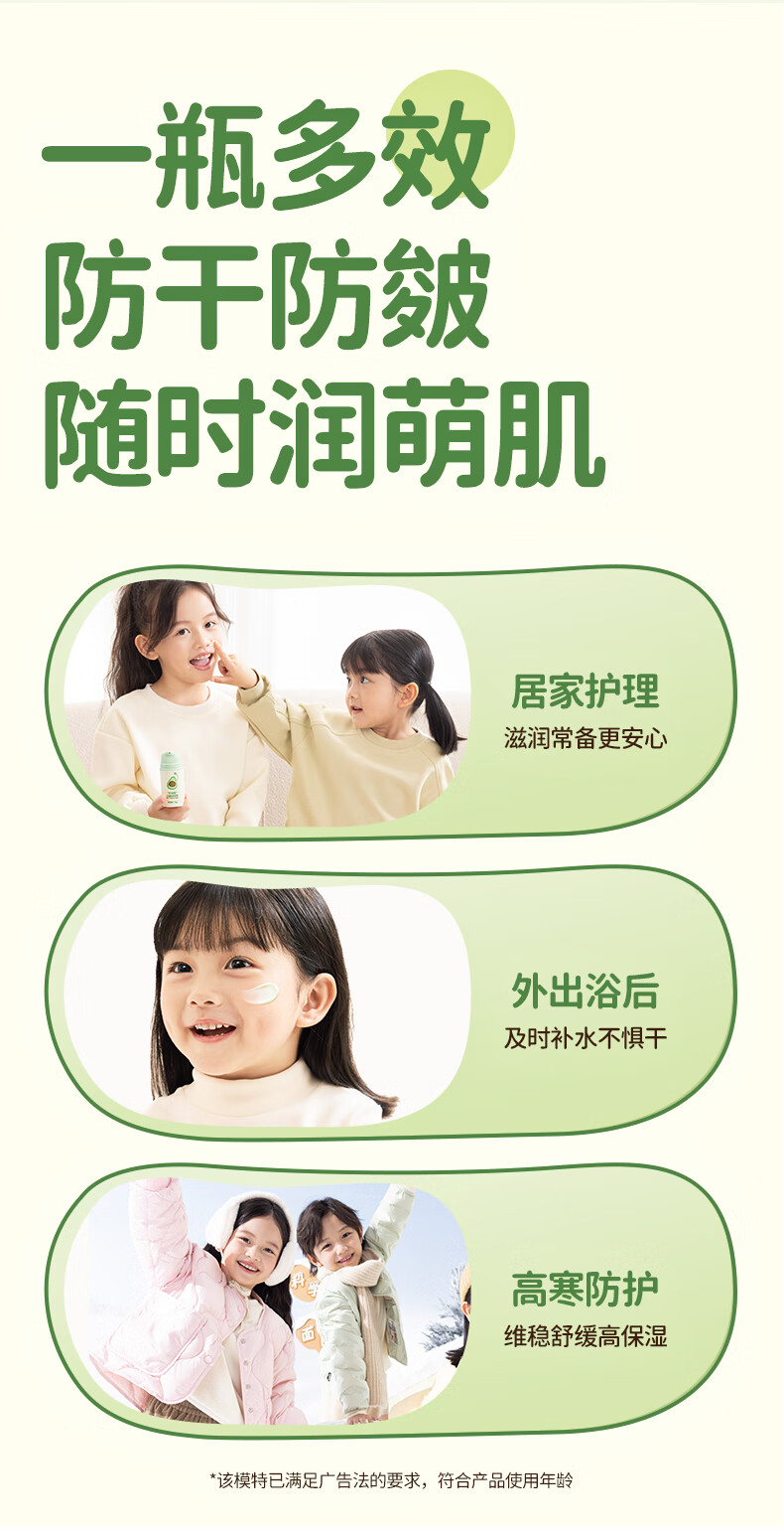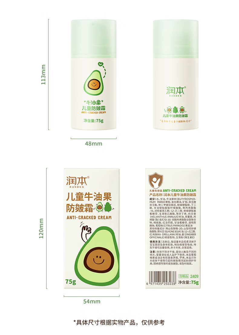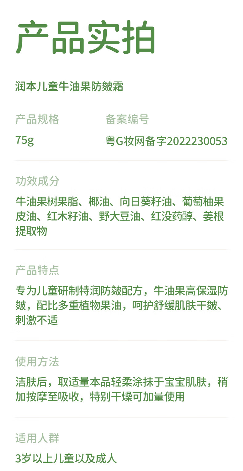 润本(RUNBEN)牛油果防皴裂面霜儿童秋冬宝宝滋润补水保湿乳婴儿擦脸防冻润肤霜 儿童款 50g 2瓶 【多娃家庭】