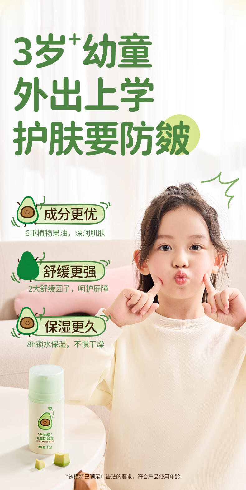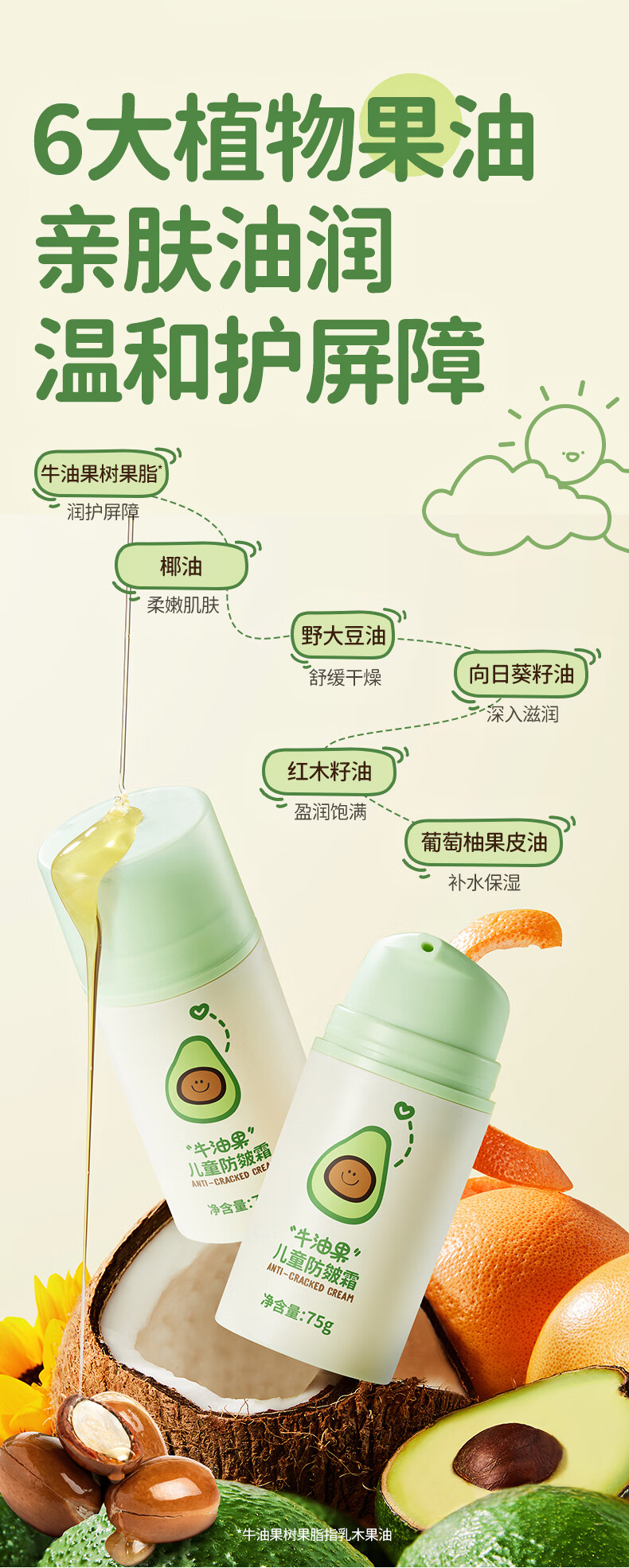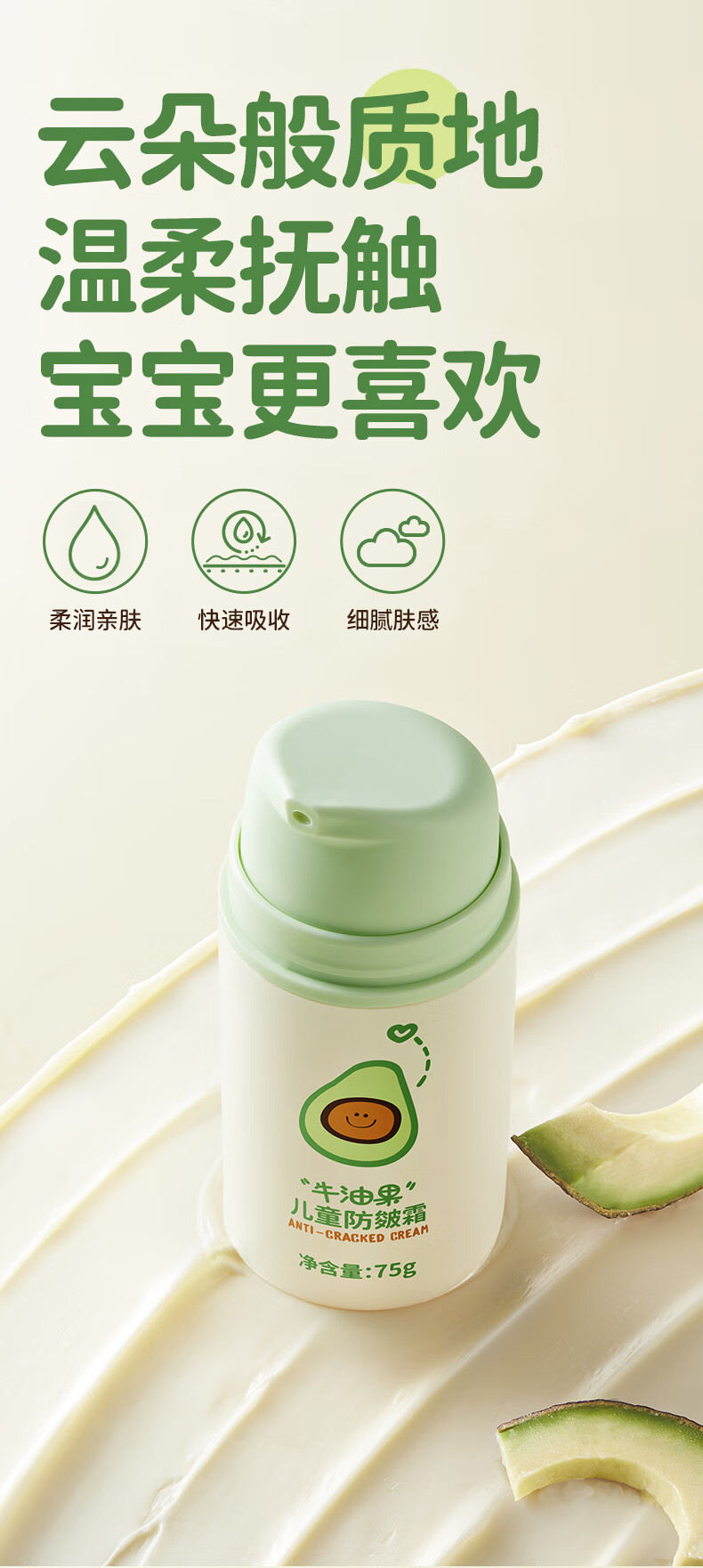 润本(RUNBEN)牛油果防皴裂面霜儿童秋冬宝宝滋润补水保湿乳婴儿擦脸防冻润肤霜 儿童款 50g 2瓶 【多娃家庭】