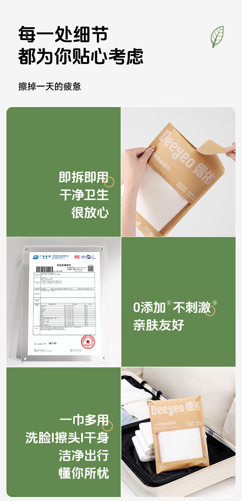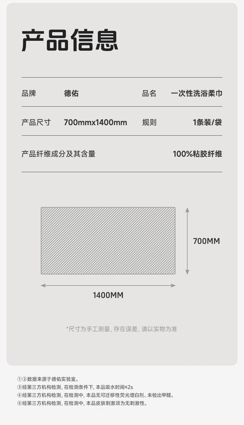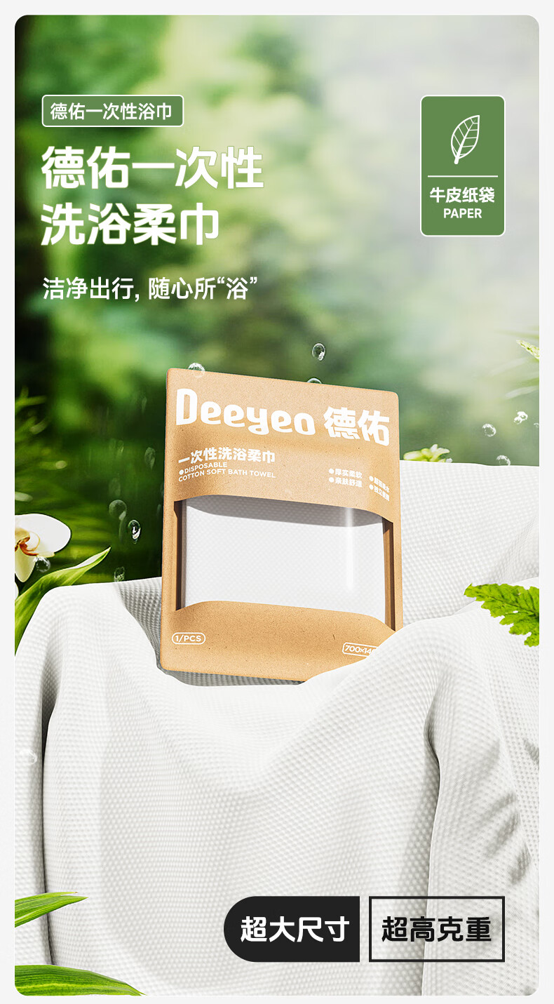 德佑一次性浴巾5条装加大加厚单独包装柔软舒适酒店用品便携旅行装