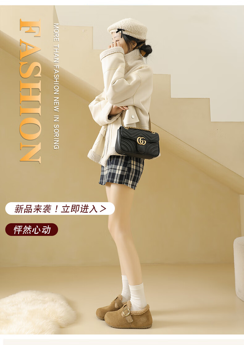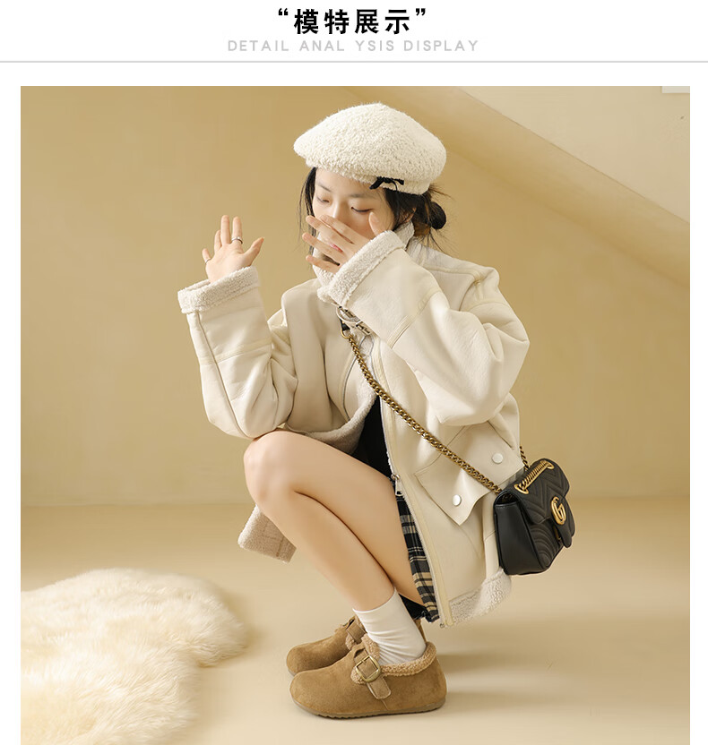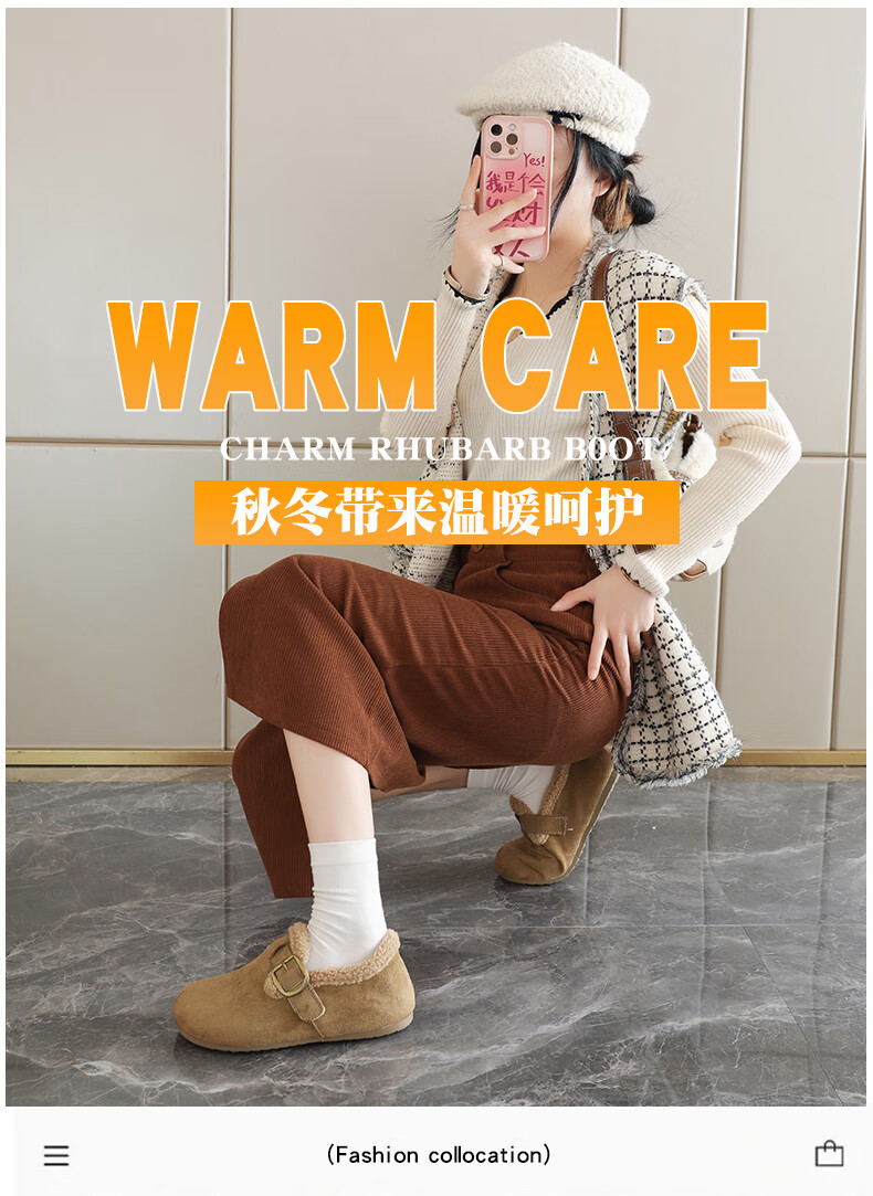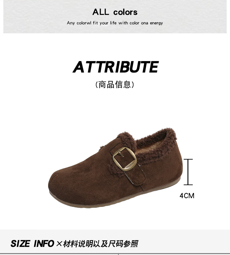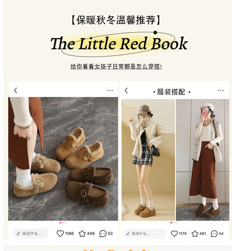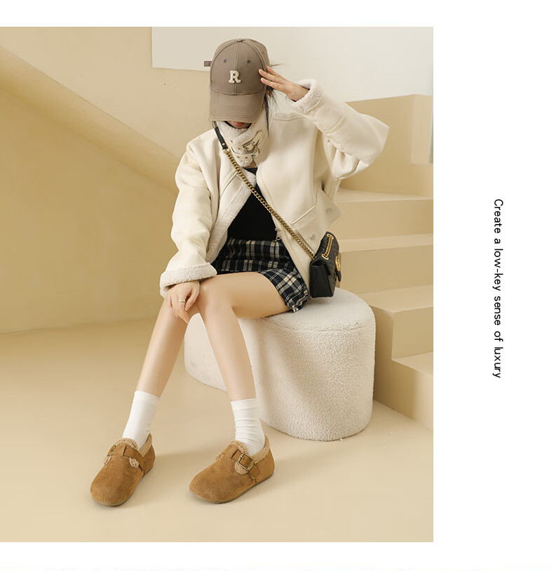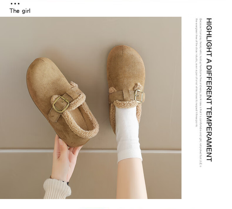 稻草人(MEXICAN)大码女鞋41到43码勃肯鞋女2026冬季加绒乐福鞋防滑软底孕妇棉鞋女 卡其色 36