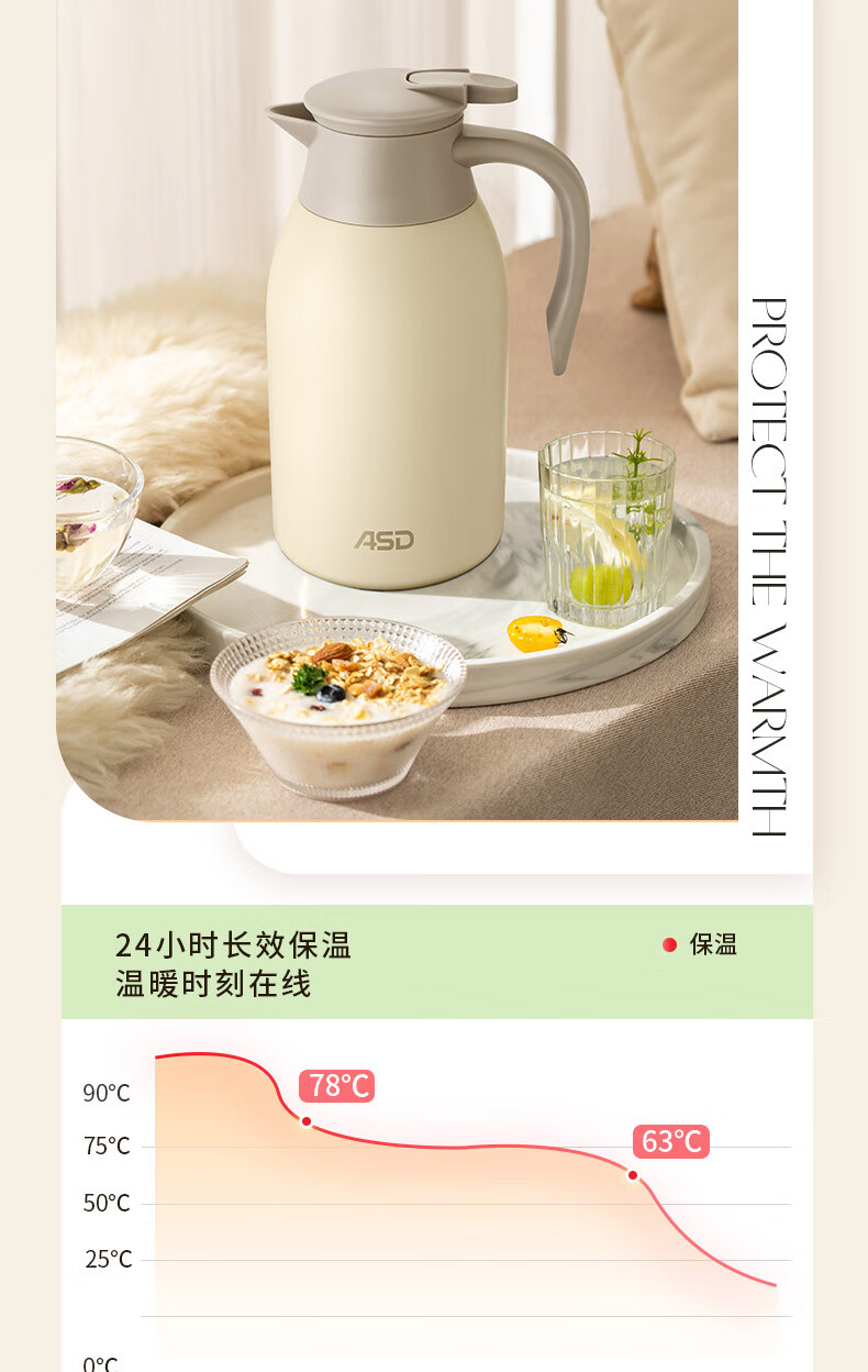 爱仕达(ASD)保温壶大容量家用暖水壶保温瓶304不锈钢2L热水壶RWS20P4WG-S