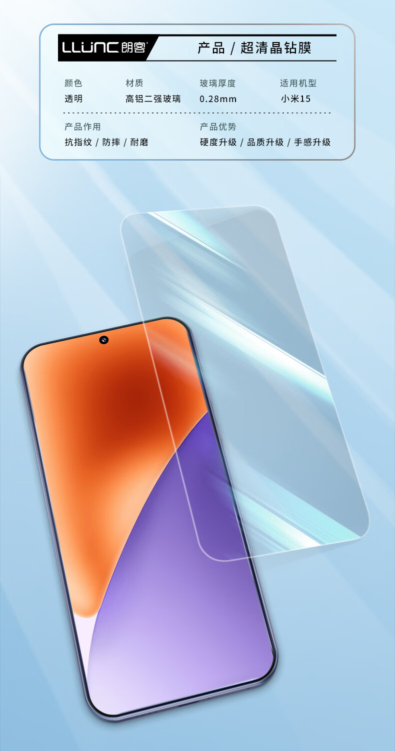 朗客【超声波解锁】小米15钢化膜xiaomi15手机膜全覆盖无白边抗指纹超清超薄不挡屏防摔手机贴膜2片装