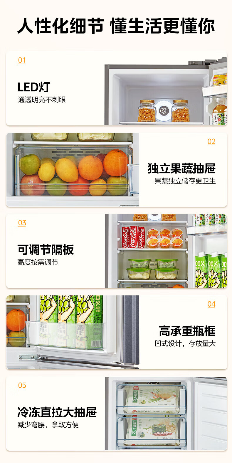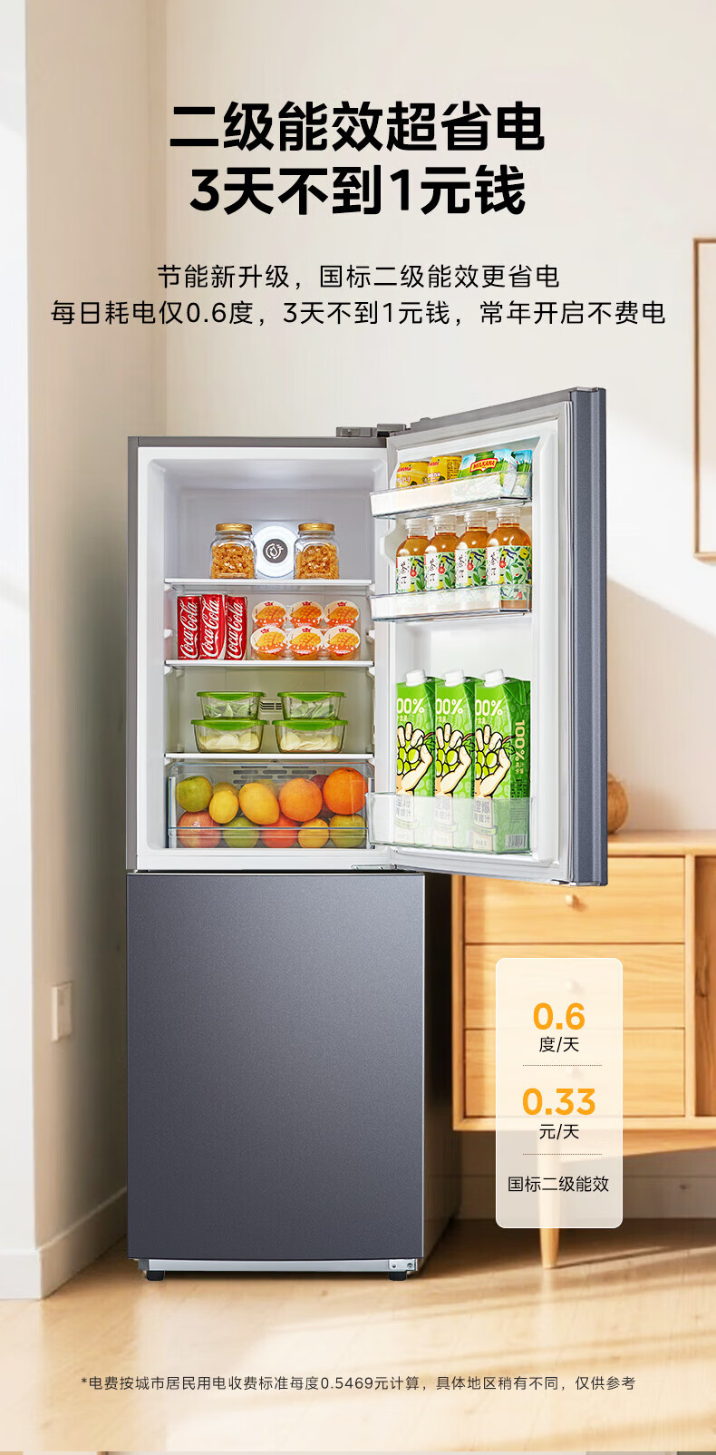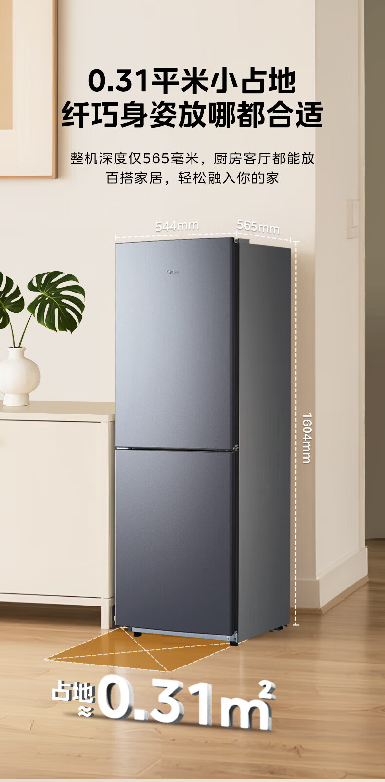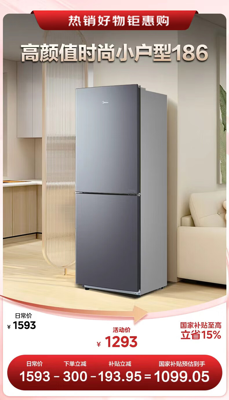 美的(Midea)186双开门两门低音小型节能省电无霜低温补偿深冷速冻租房宿舍家用小冰箱BCD-186WMA国家补贴
