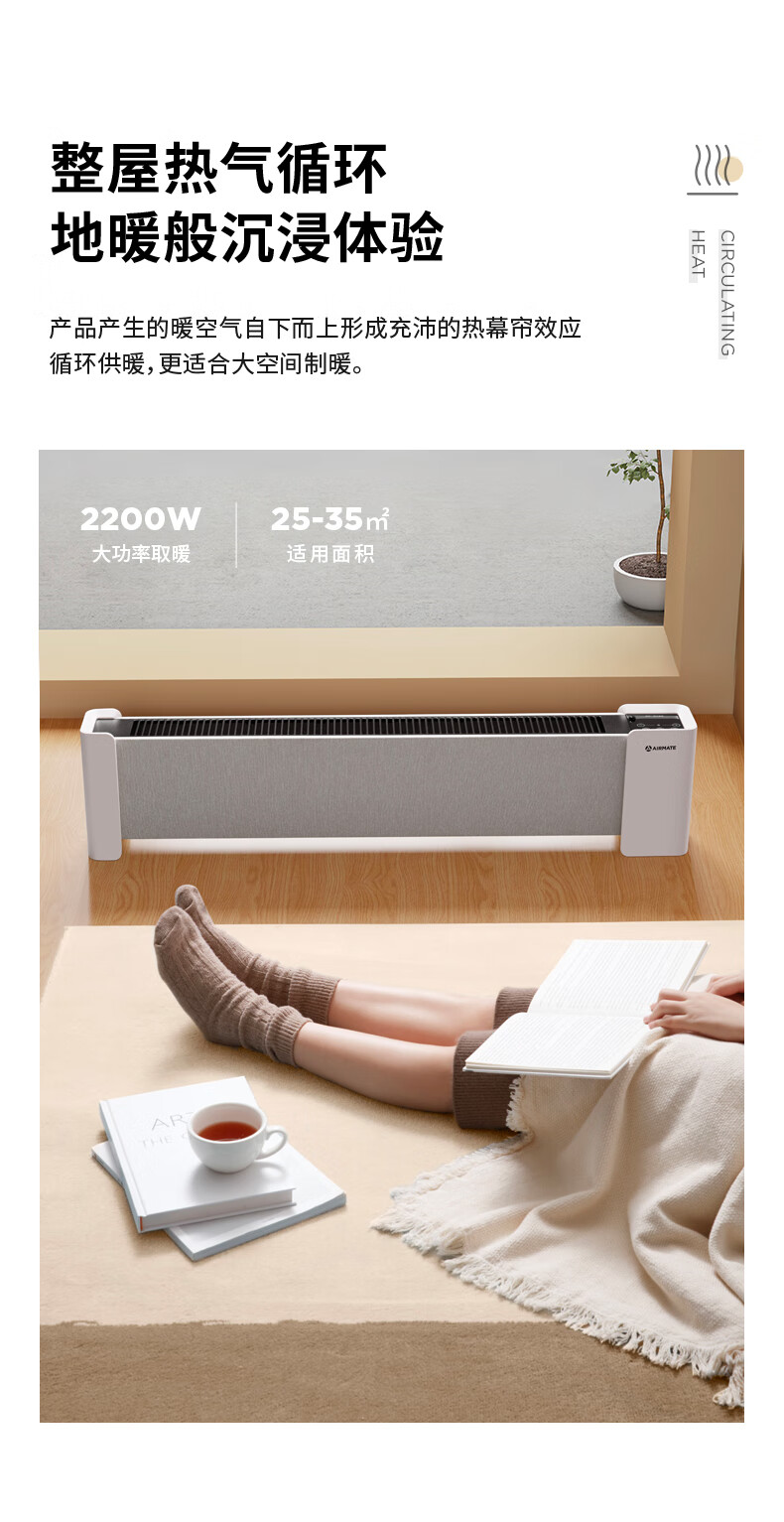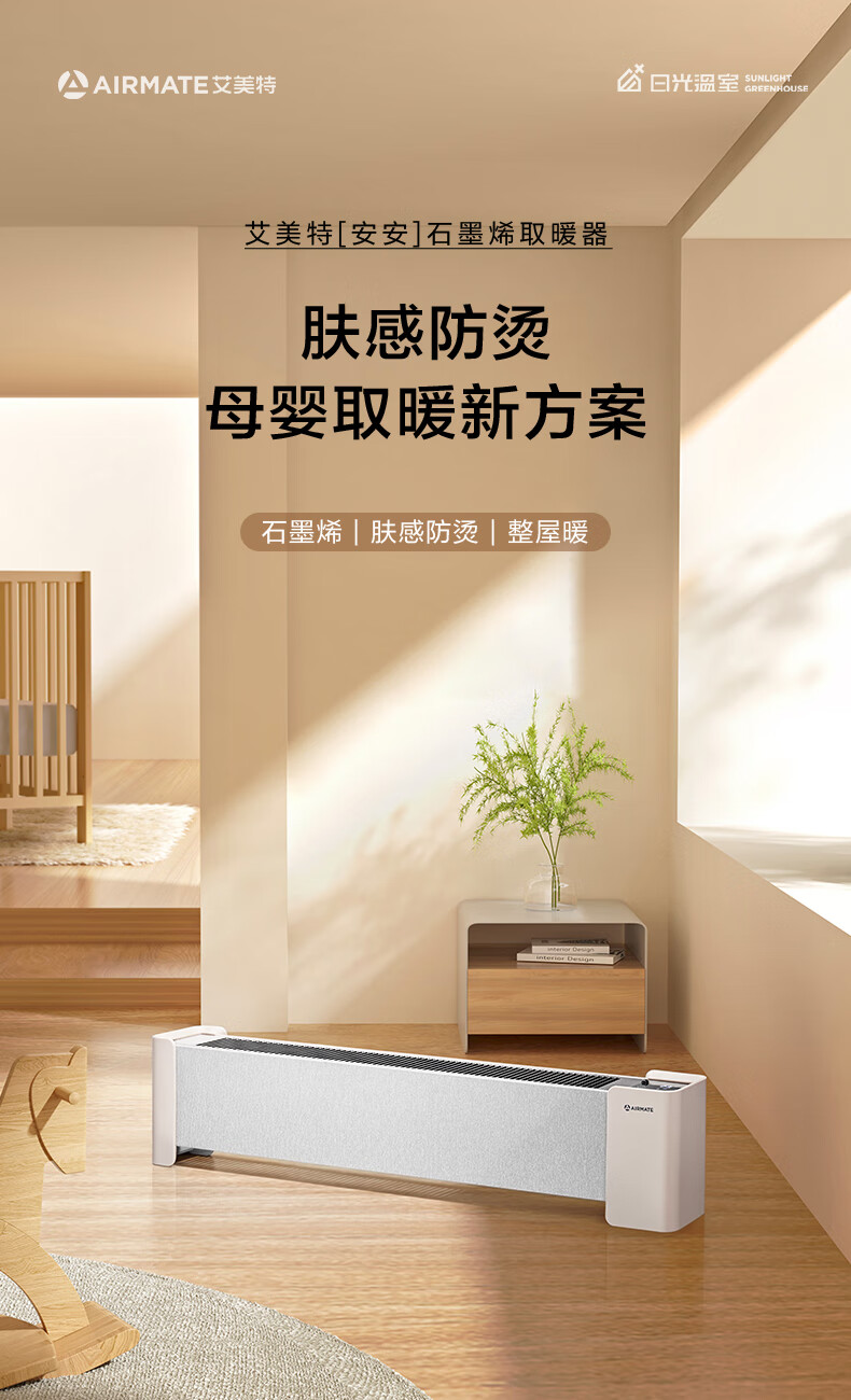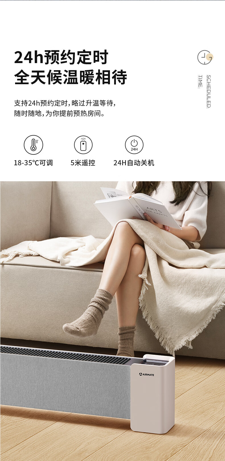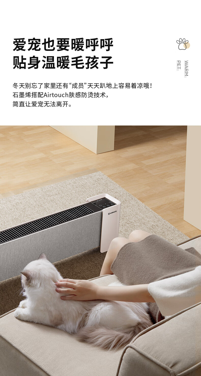 艾美特(AIRMATE)【肤感防烫】石墨烯踢脚线/取暖器/暖风机/电暖器/电暖气片 家用防水防烫温控遥控移动地暖