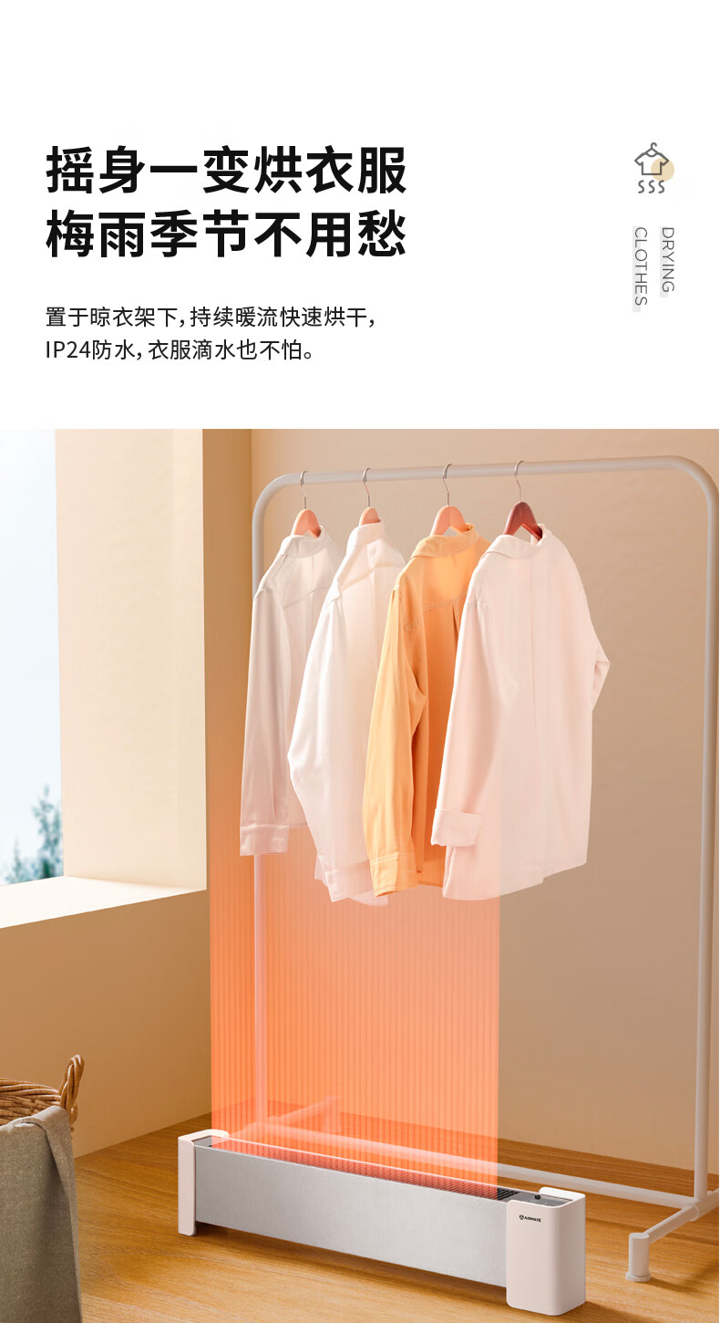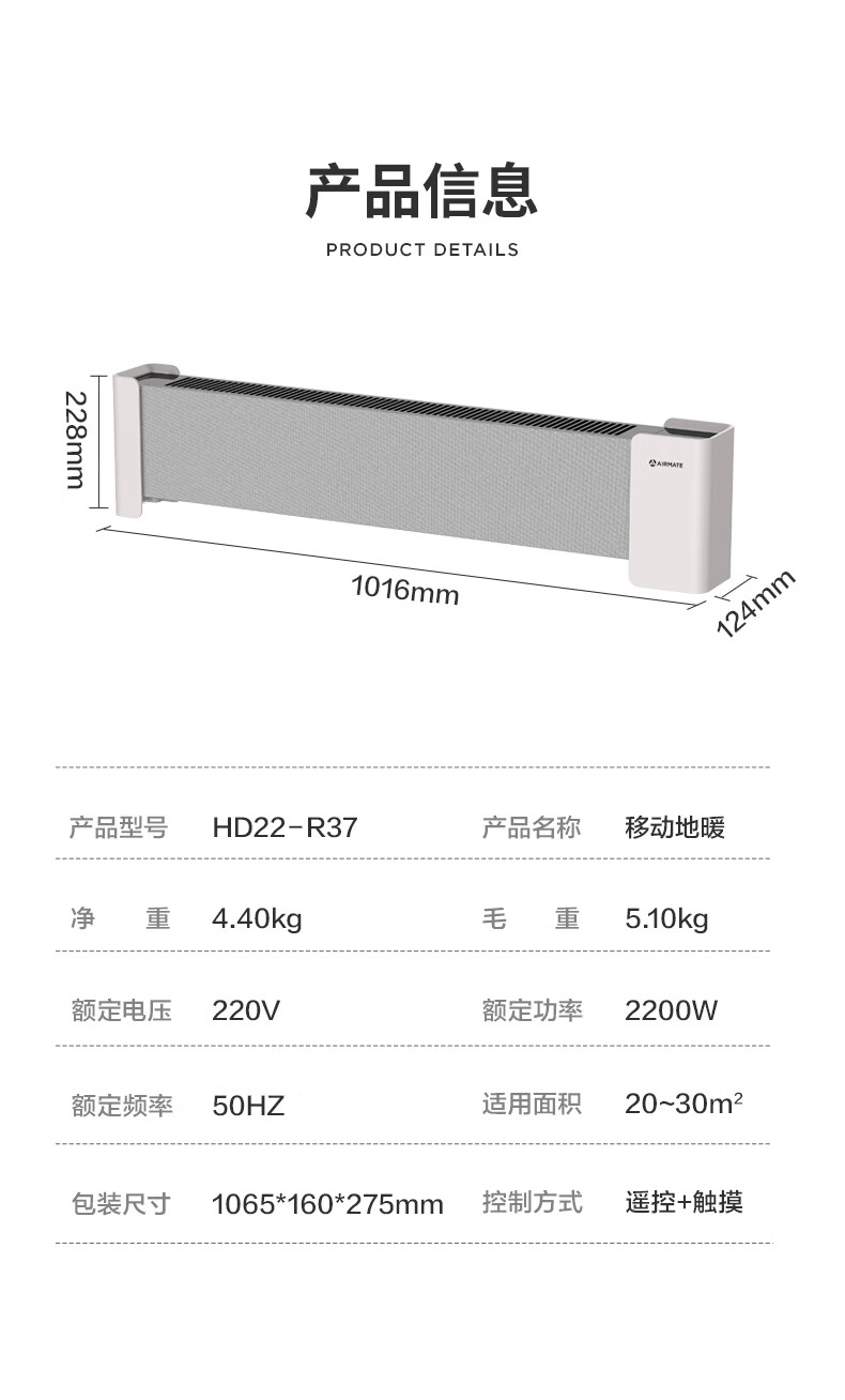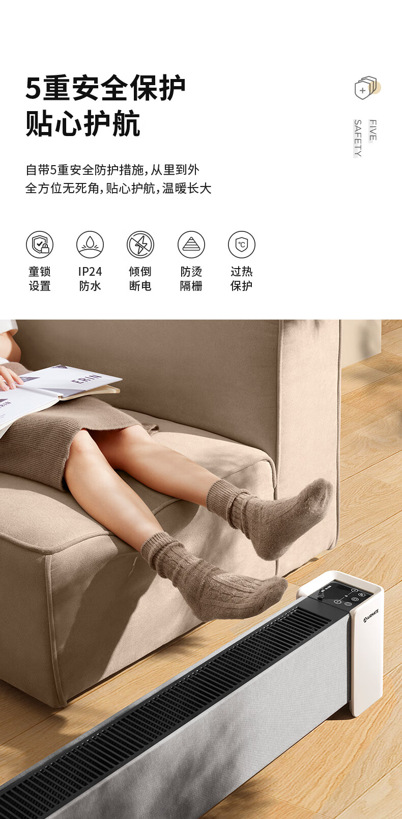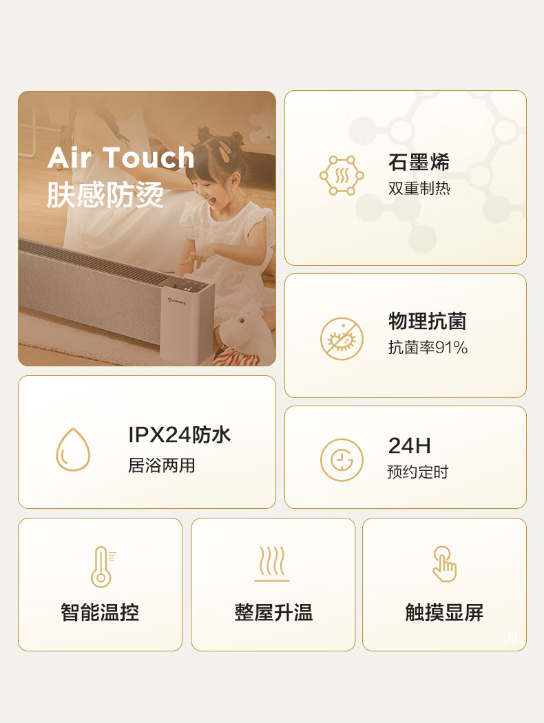 艾美特(AIRMATE)【肤感防烫】石墨烯踢脚线/取暖器/暖风机/电暖器/电暖气片 家用防水防烫温控遥控移动地暖