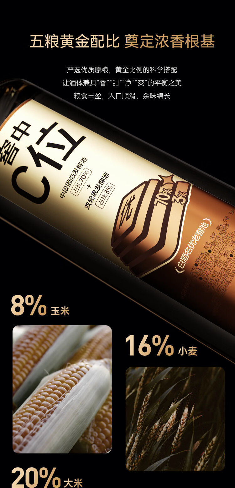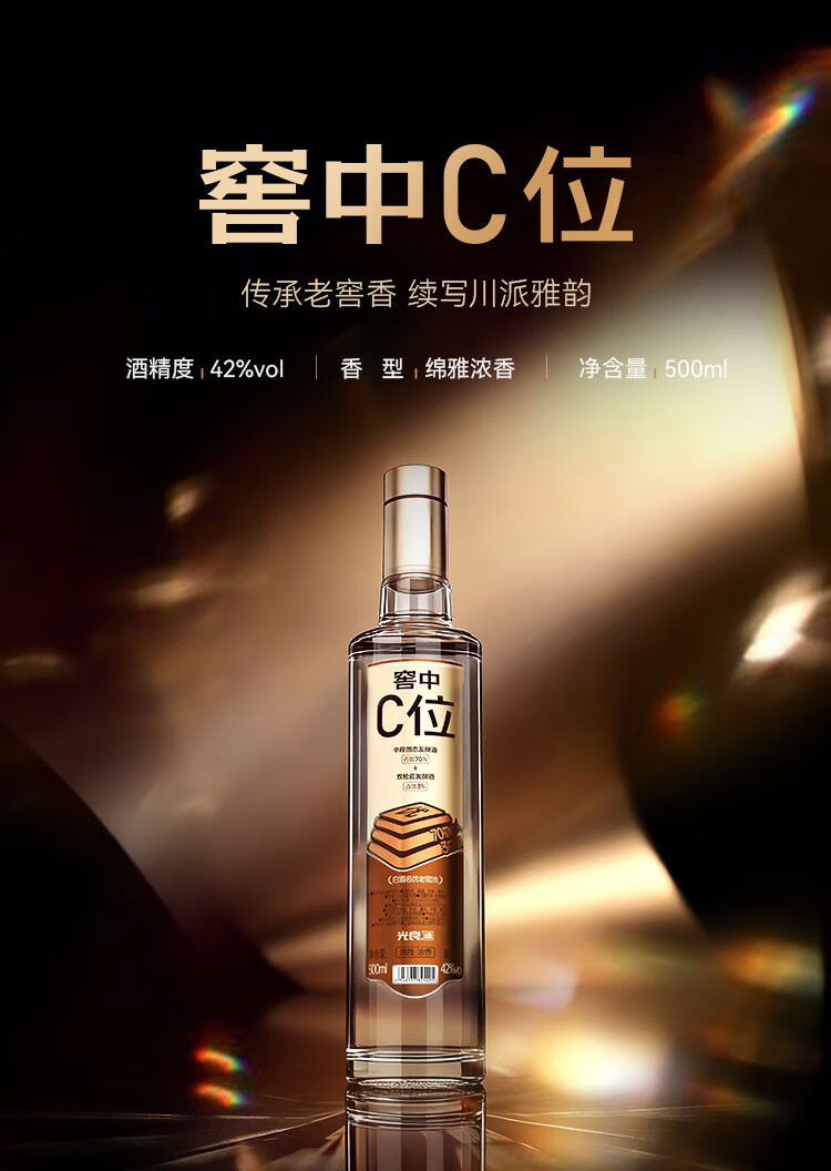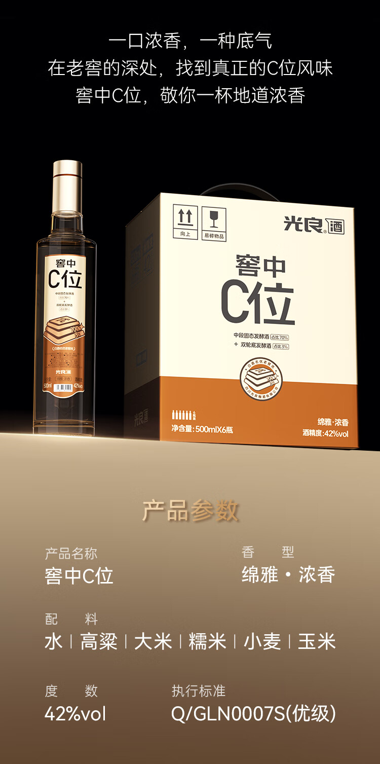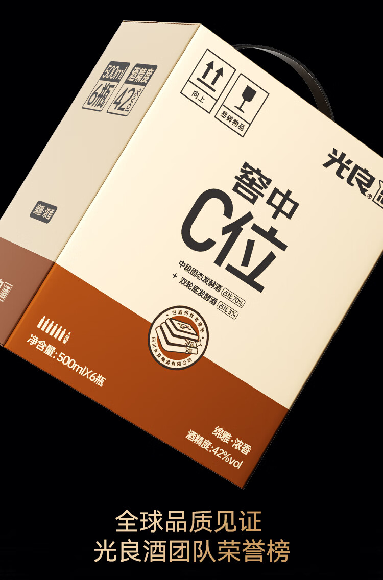 光良【新品抢鲜】窖中C位 纯粮食 42度浓香型光瓶白酒 超高性价比 42%vol 500mL 6瓶 整箱装
