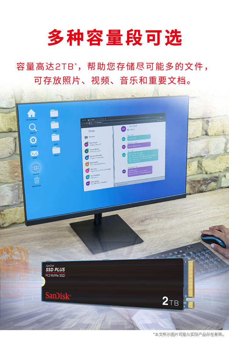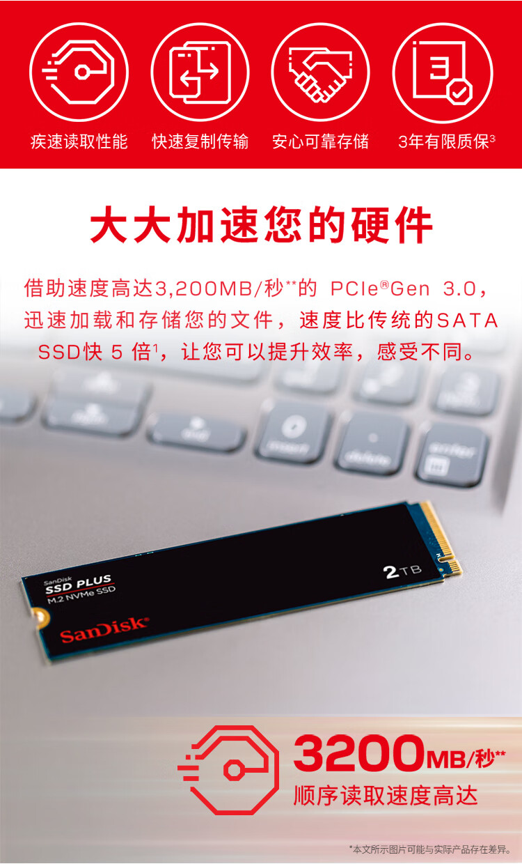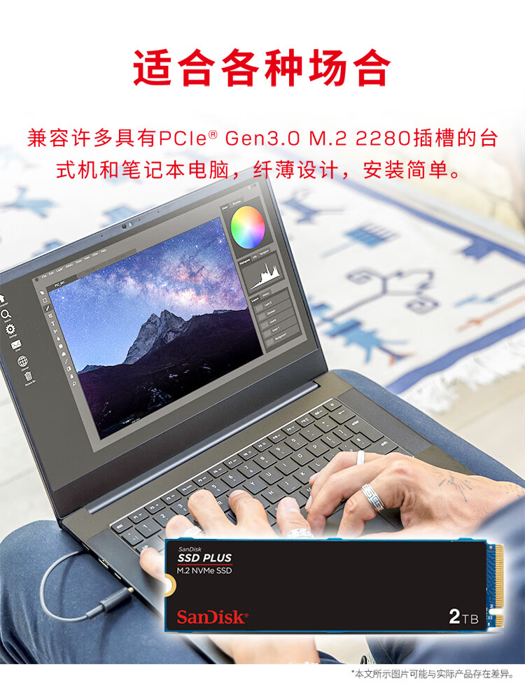 闪迪(SanDisk)250GB SSD固态硬盘2400MB/s读速PLUS性能加强版M.2接口TLC高速NVMe协议PCIe3.0笔记本电脑扩容2280