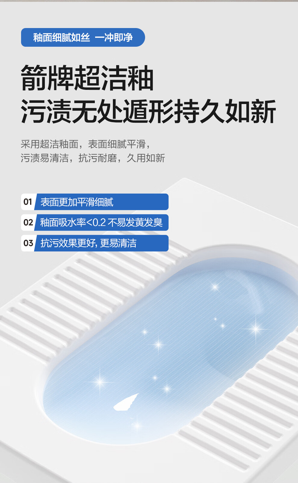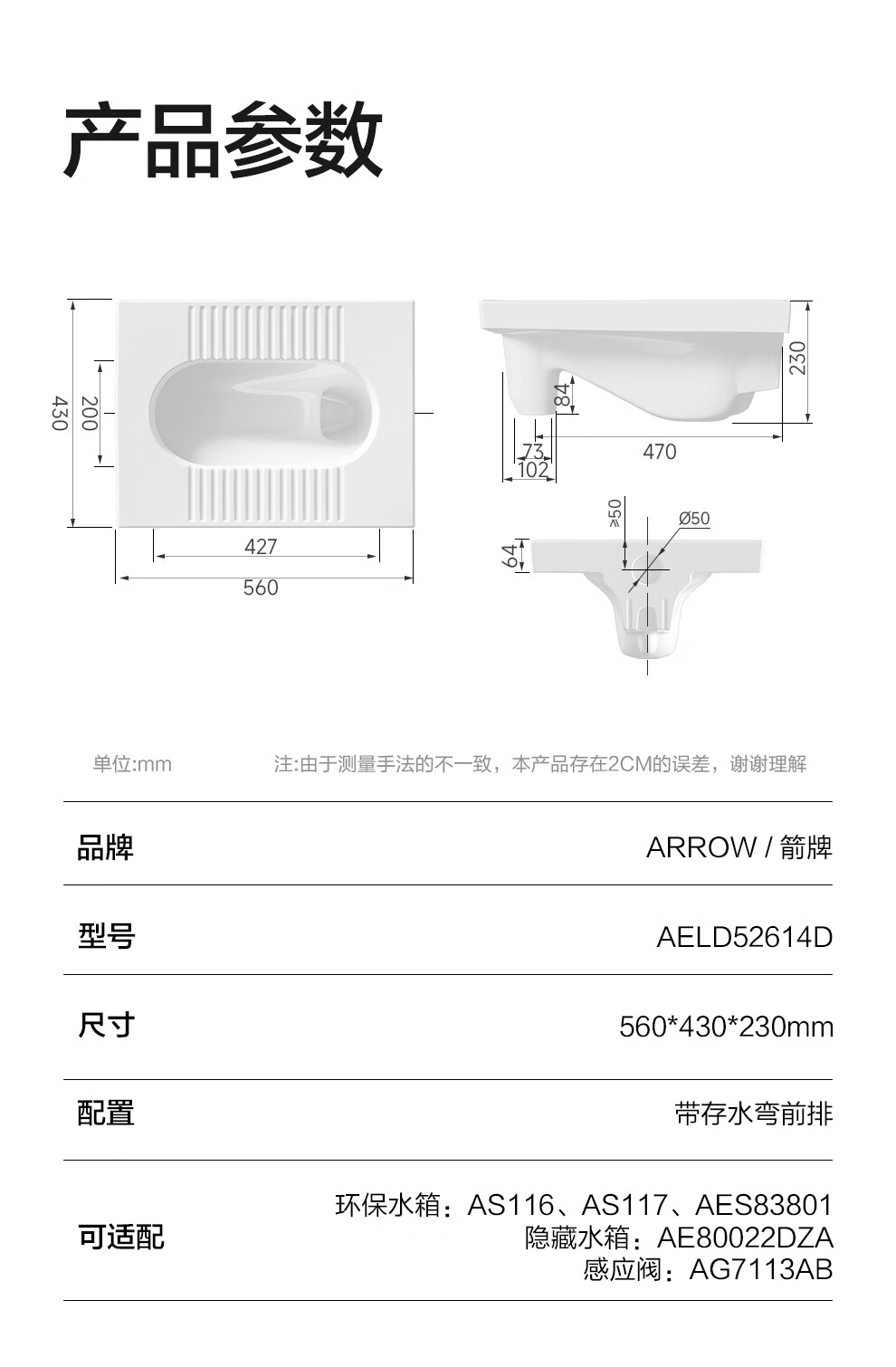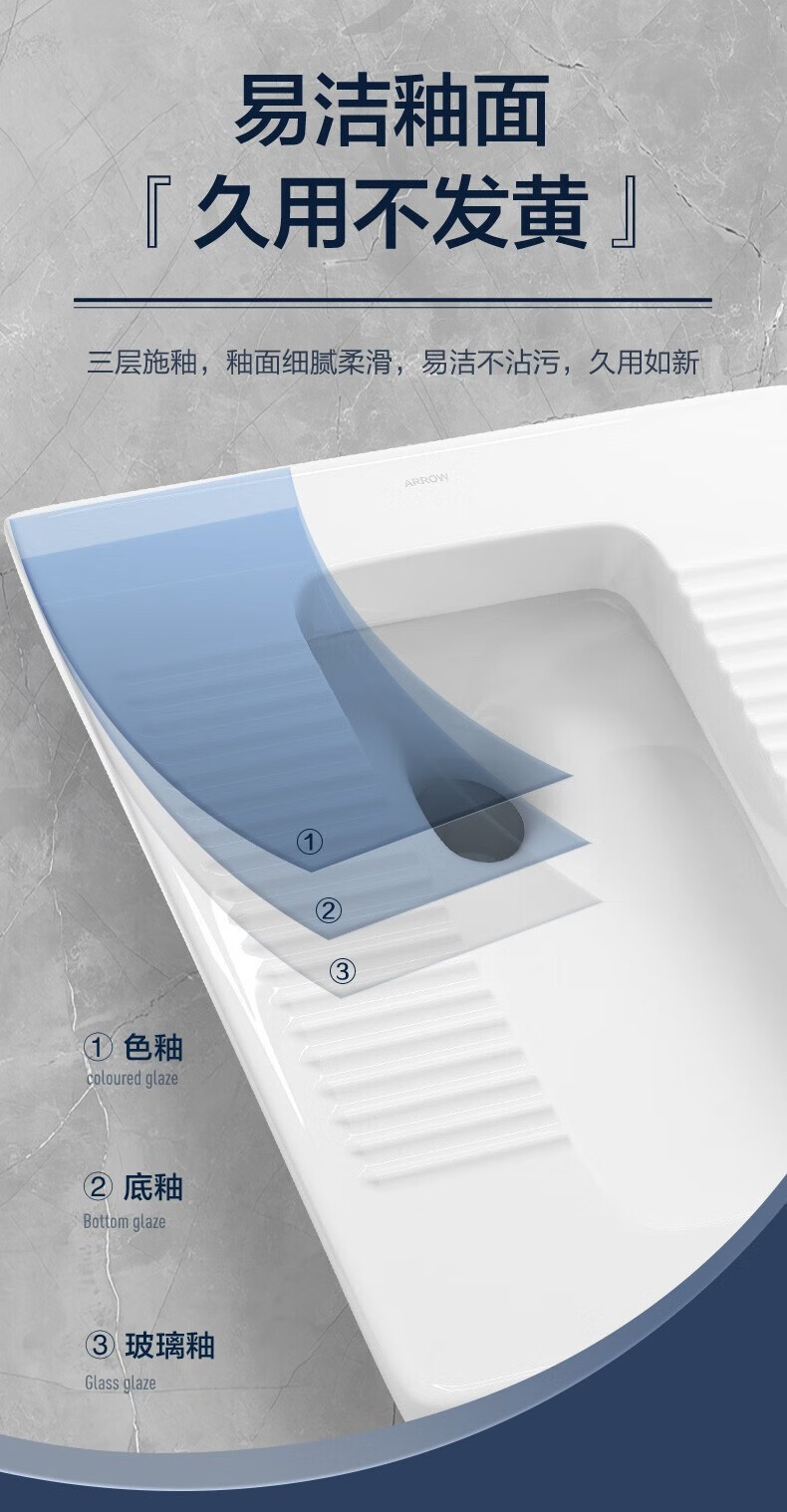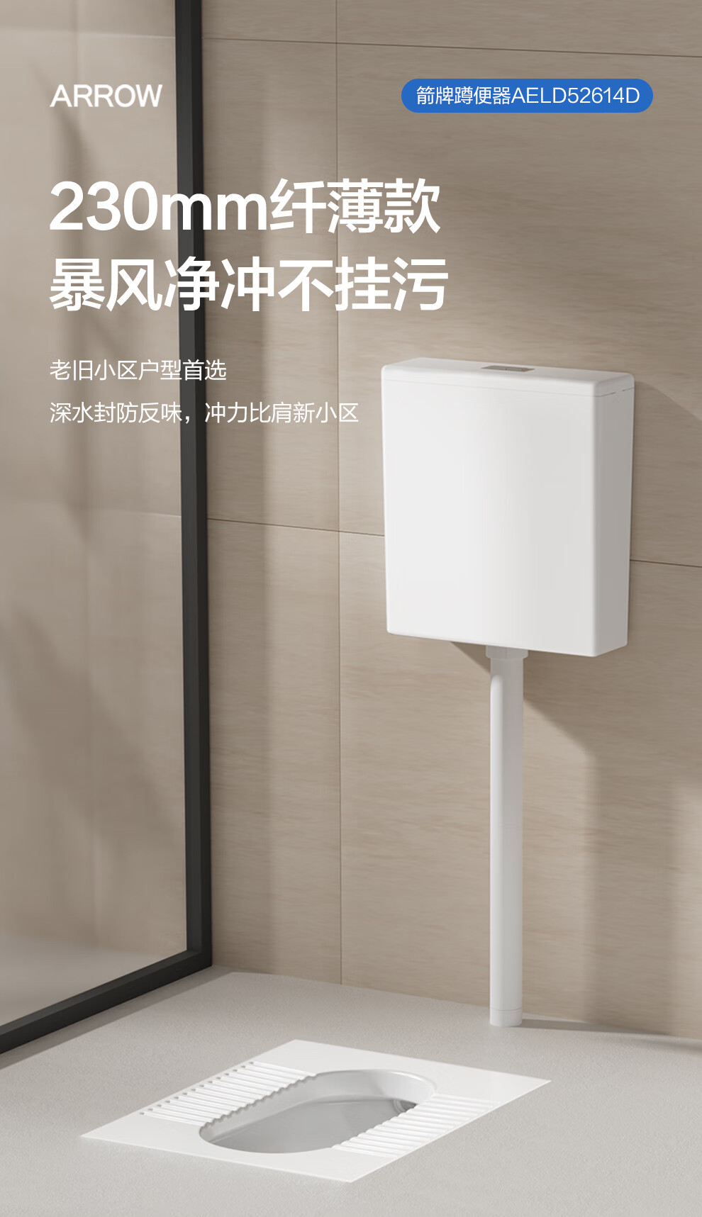 箭牌(ARROW)卫浴蹲便器套装 蹲坑蹲便器超薄蹲便蹲厕便池 带水箱套装自洁釉面 (套装)52614D+83802水箱 深度230