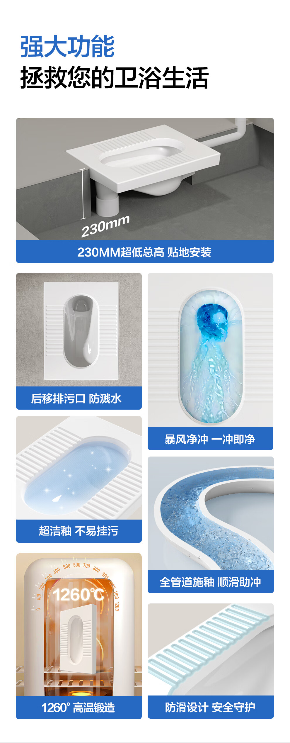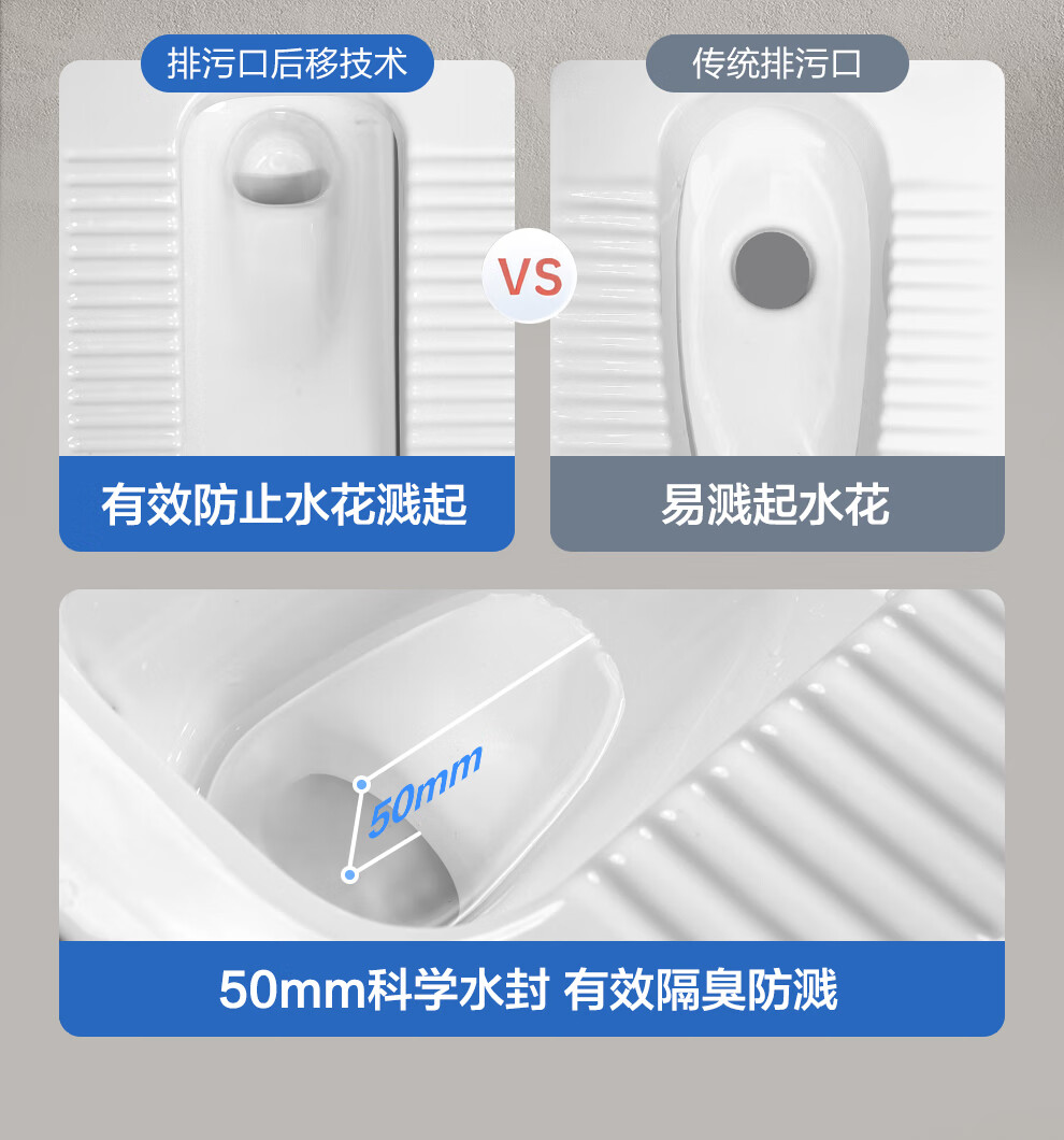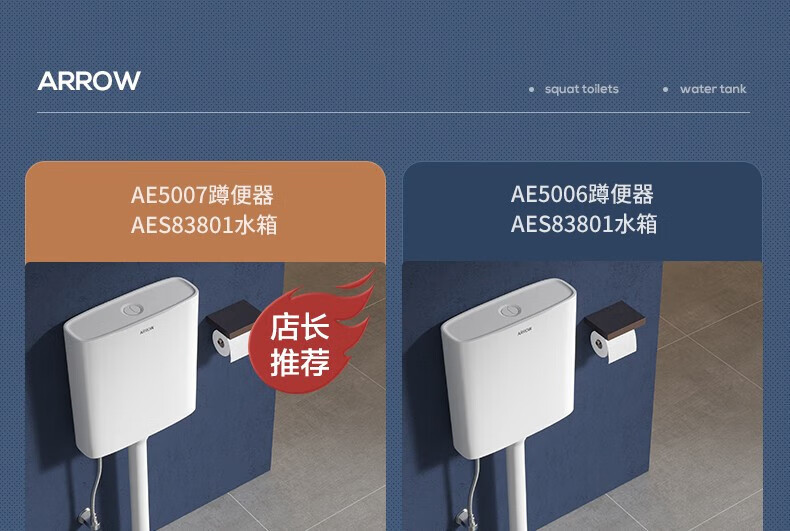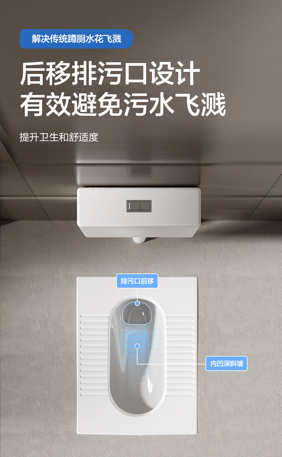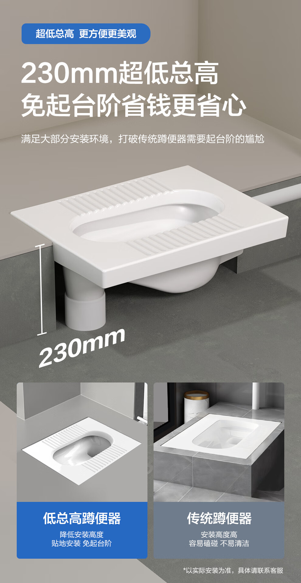 箭牌(ARROW)卫浴蹲便器套装 蹲坑蹲便器超薄蹲便蹲厕便池 带水箱套装自洁釉面 (套装)52614D+83802水箱 深度230