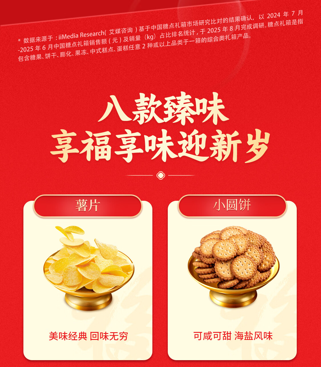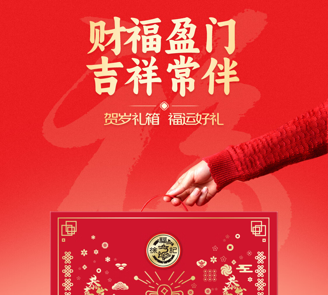 徐福记【年货礼盒】多口味混合零食礼盒 新年礼盒团购 零食大礼包 【甄选8味】金元宝礼盒/888g