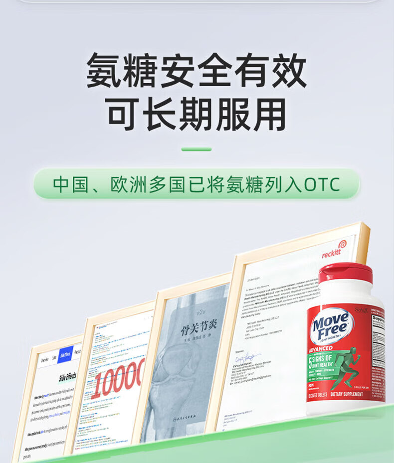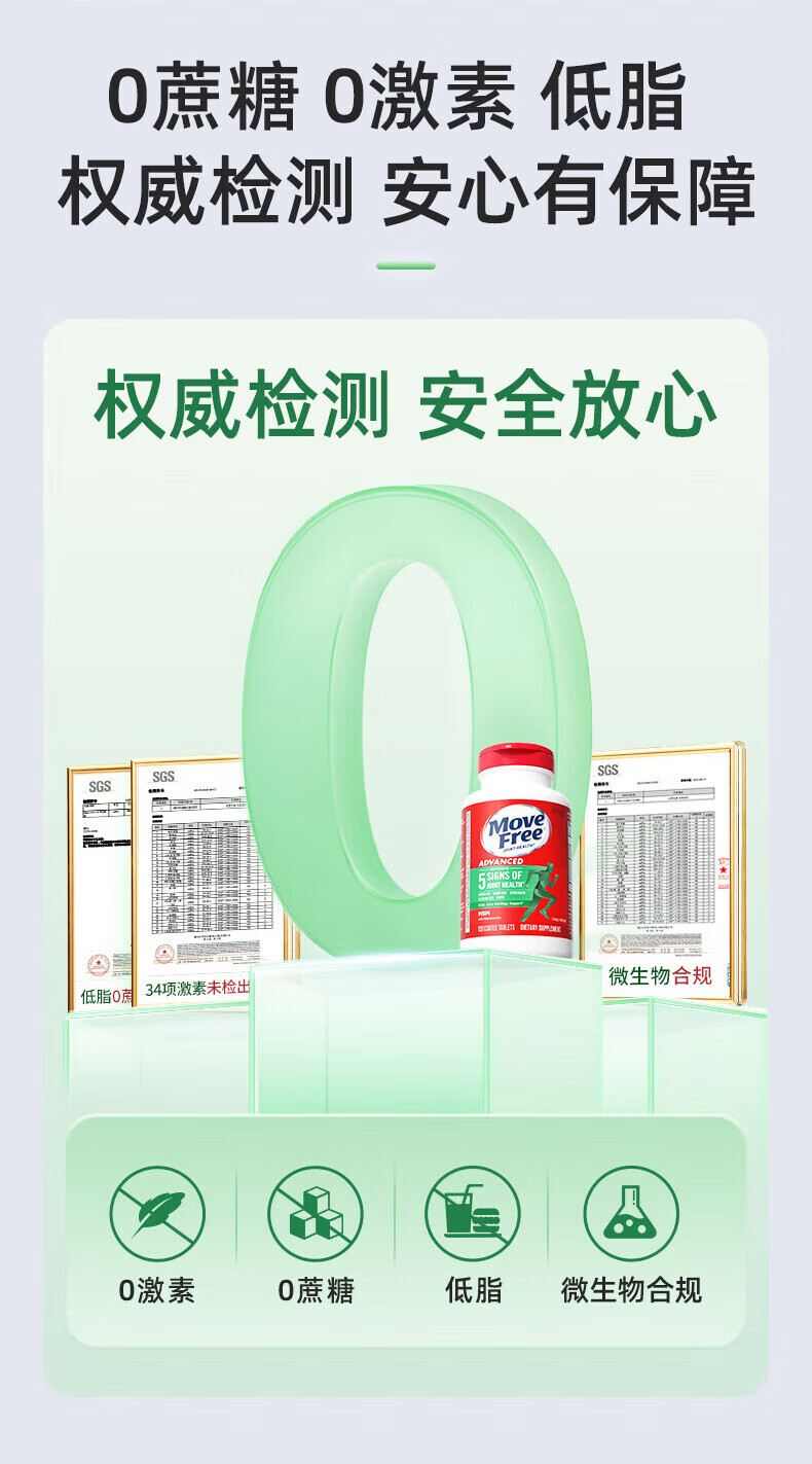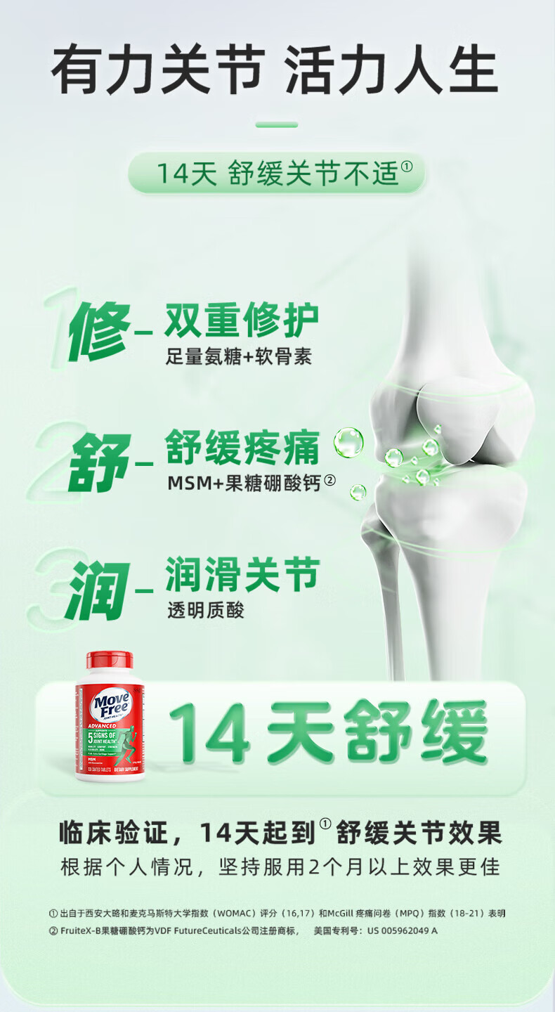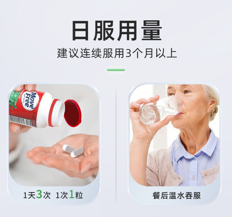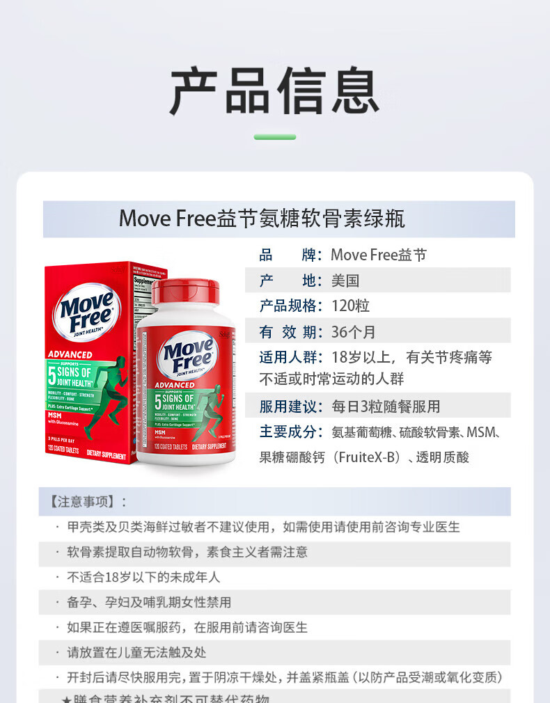 益节(Move Free)氨糖软骨素美国维骨力骨胶原钙片氨基葡萄糖 【舒缓不适】绿瓶 120粒*1瓶