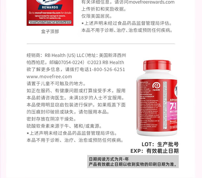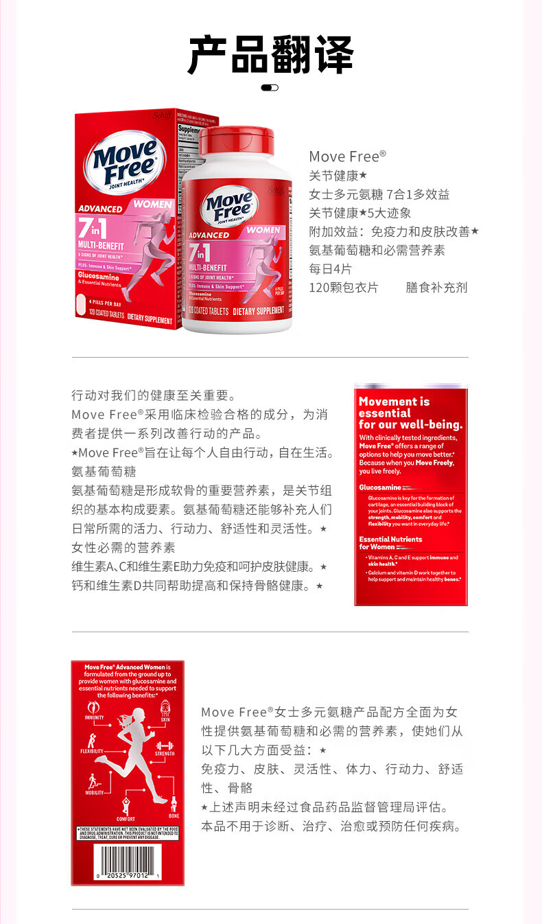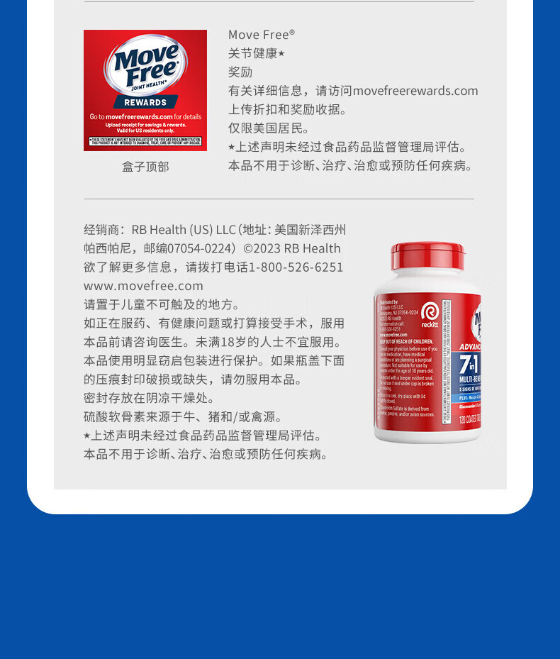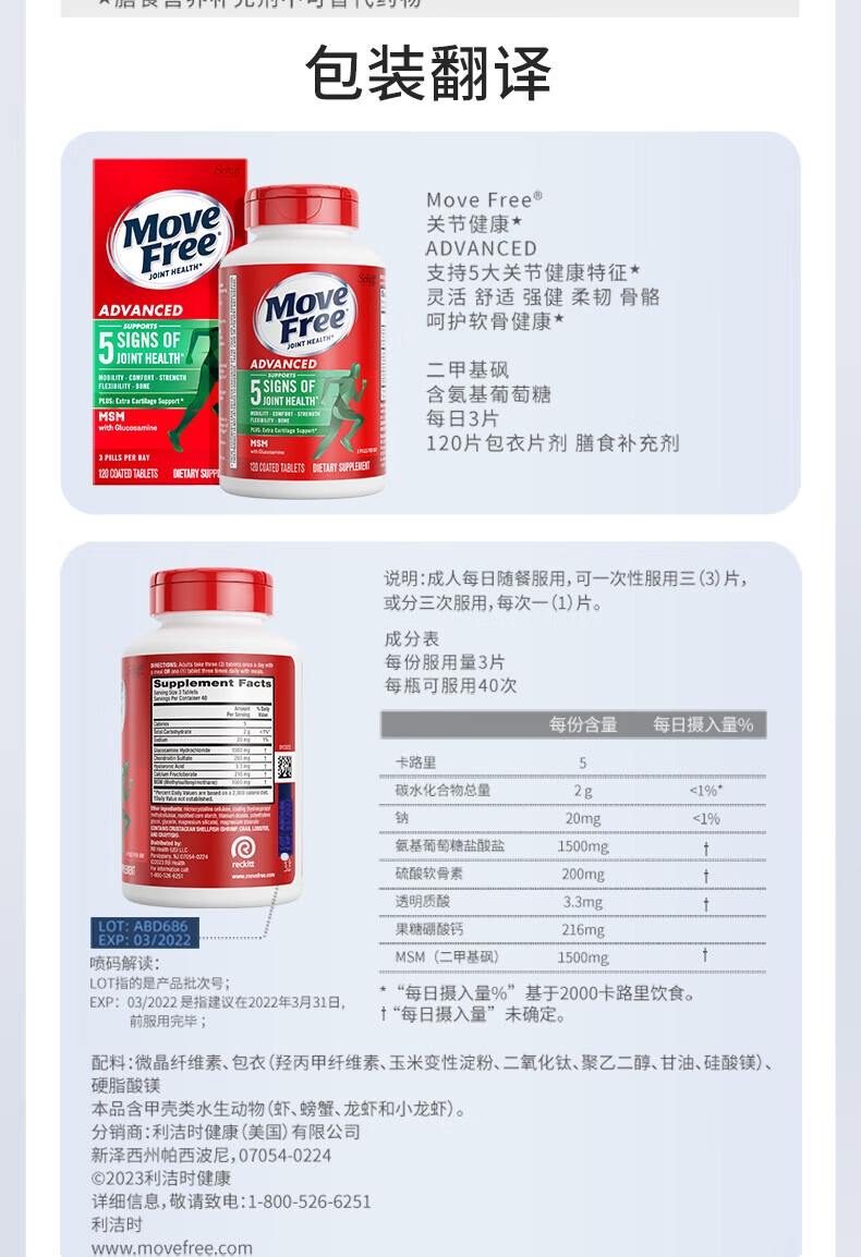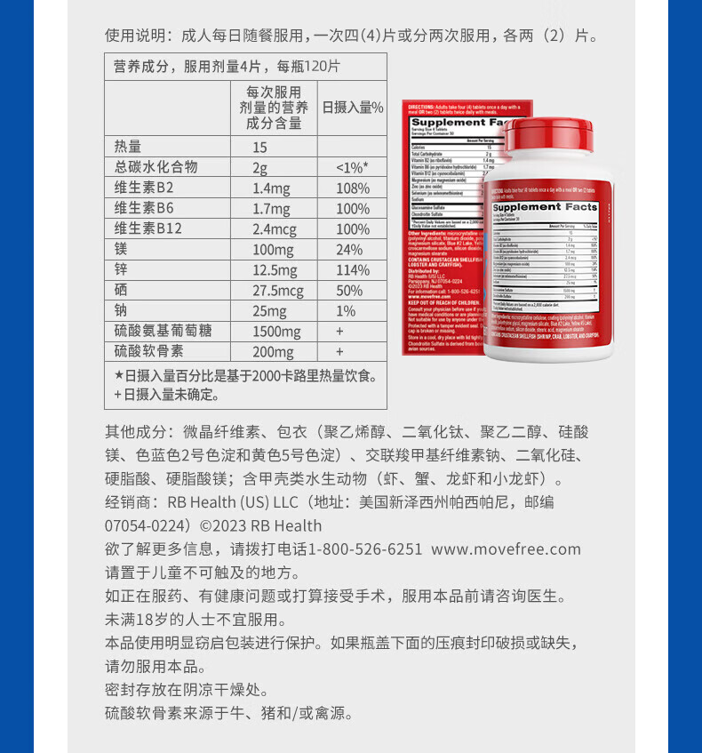益节(Move Free)氨糖软骨素美国维骨力骨胶原钙片氨基葡萄糖 【舒缓不适】绿瓶 120粒*1瓶
