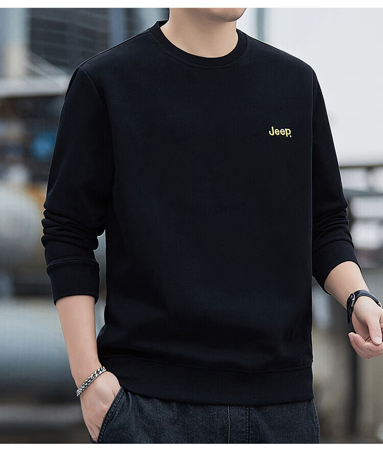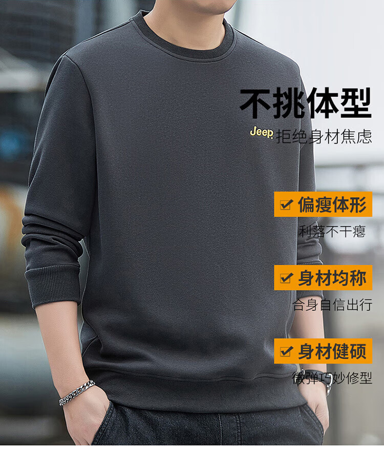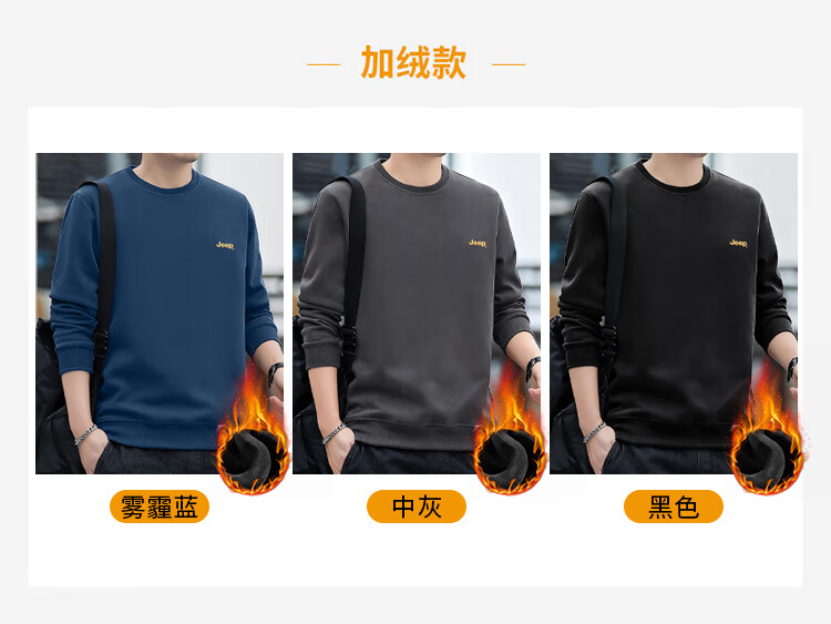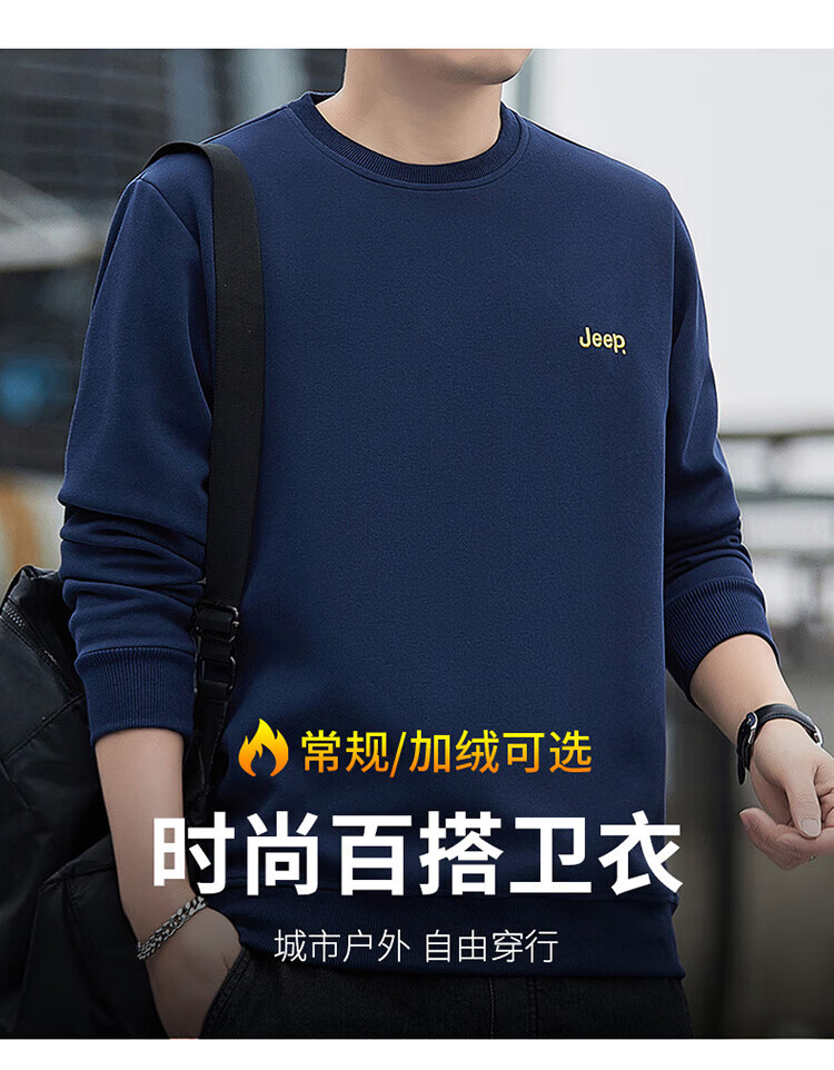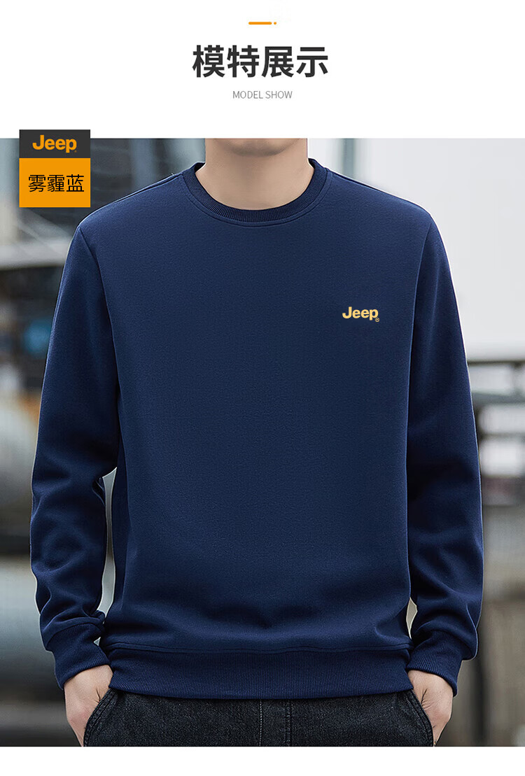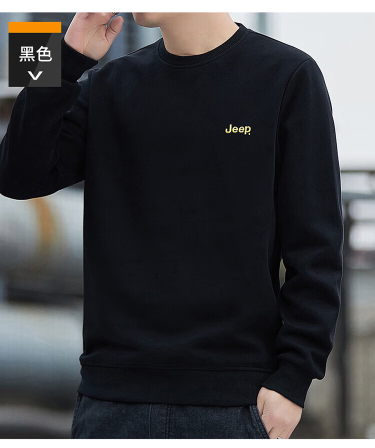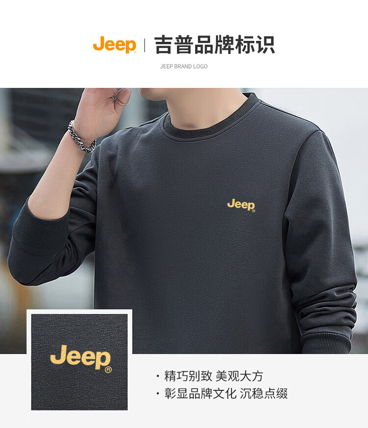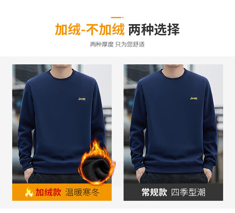 吉普(JEEP)圆领加绒卫衣男士冬季防风保暖商务圆领外套高端耐磨厚款重磅男装