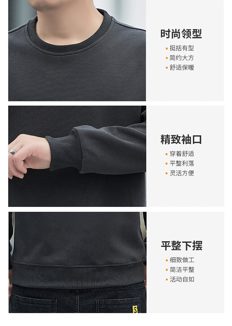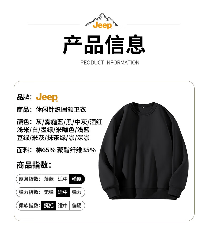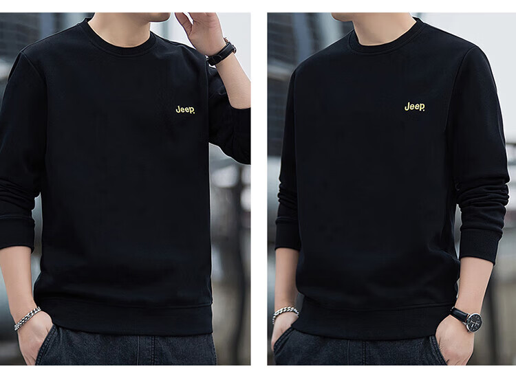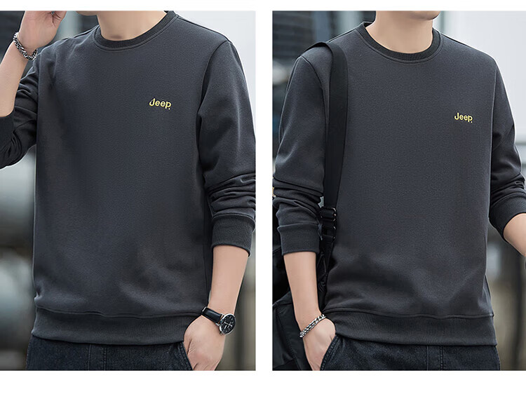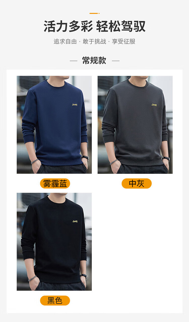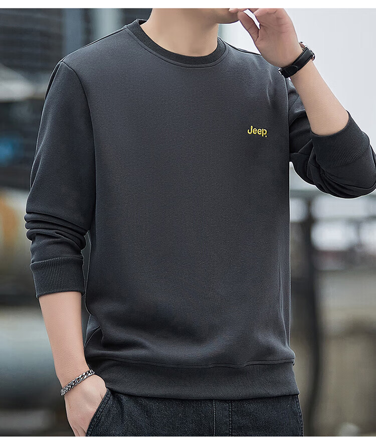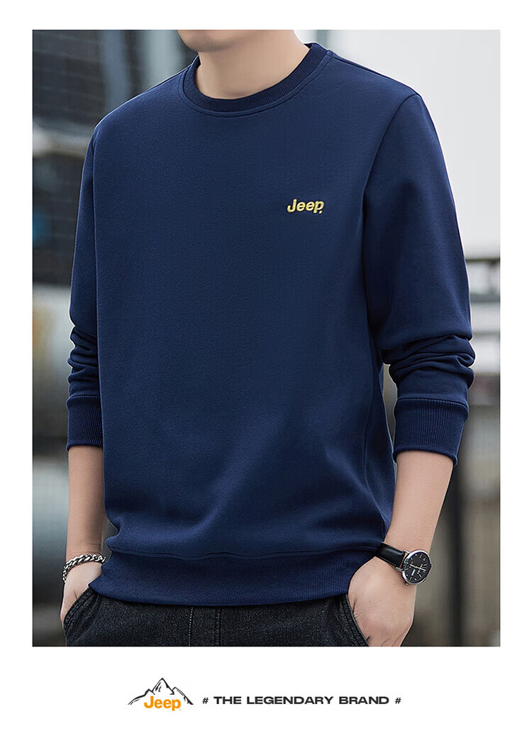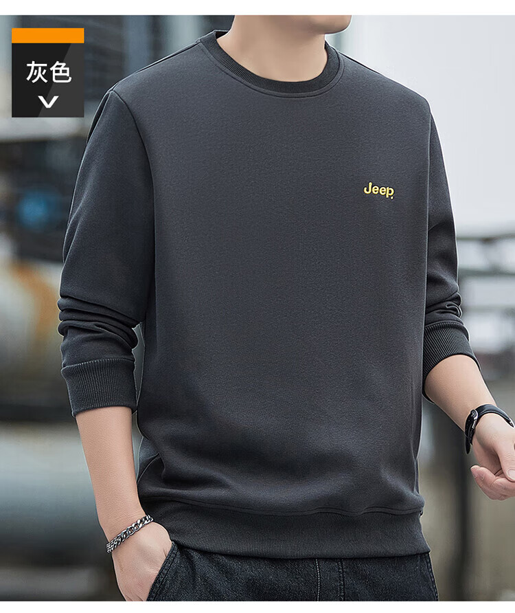 吉普(JEEP)圆领加绒卫衣男士冬季防风保暖商务圆领外套高端耐磨厚款重磅男装