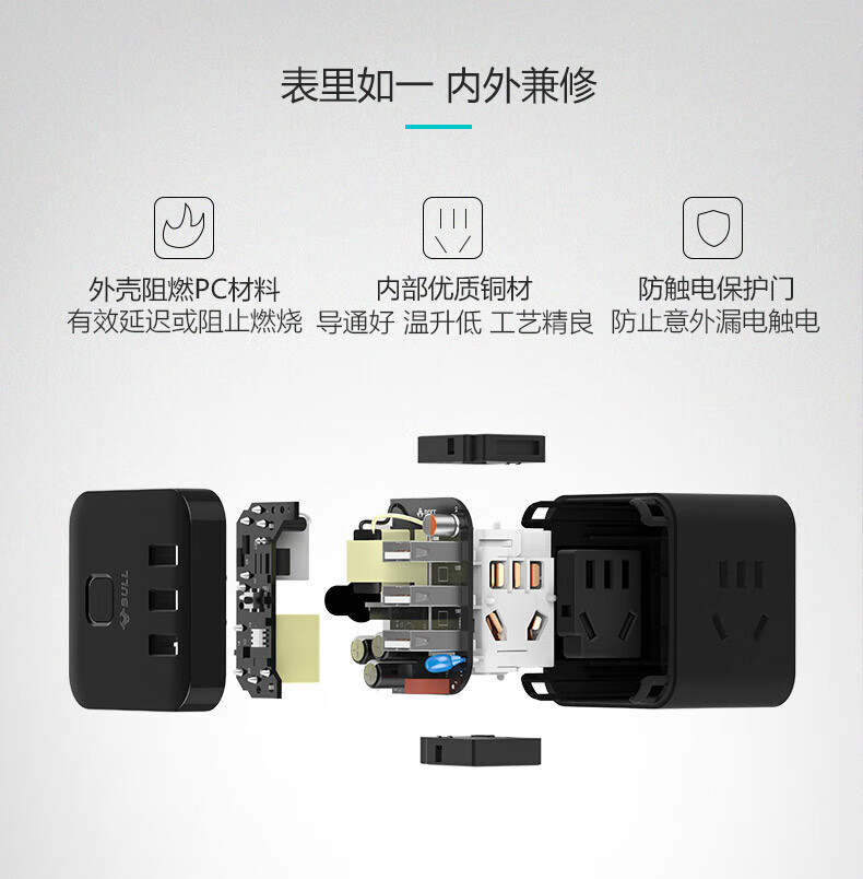 公牛(BULL)万能转换插头 多国旅行出行充电转接头插座 香港日本欧洲马来西亚英标欧标德标美标泰国越南出国用 【15W快充】USB带Type-C口L10U15灰 官方正品国际旅游通用转换器防火阻燃款质保2年