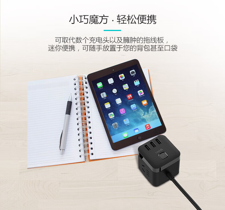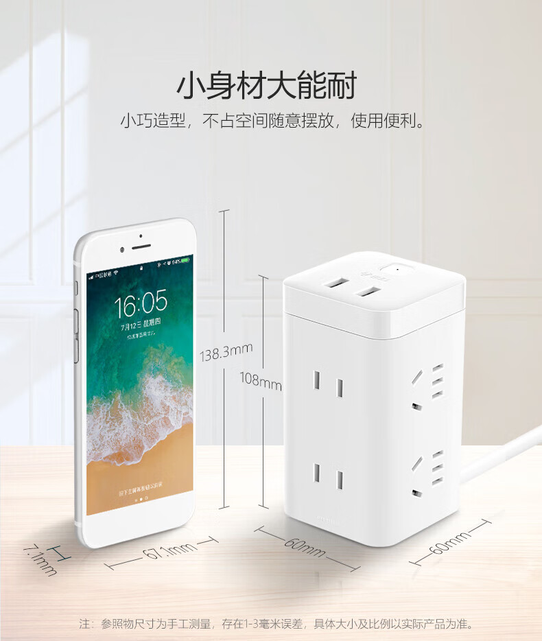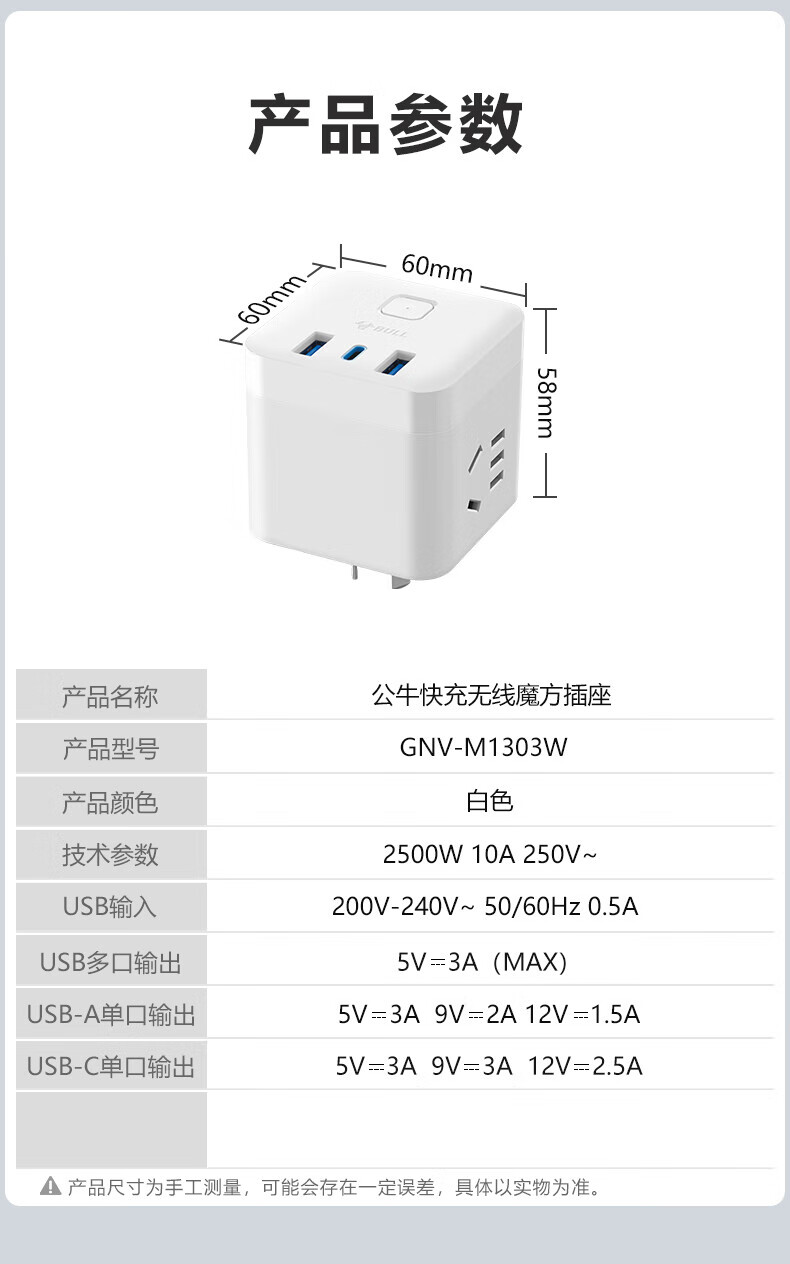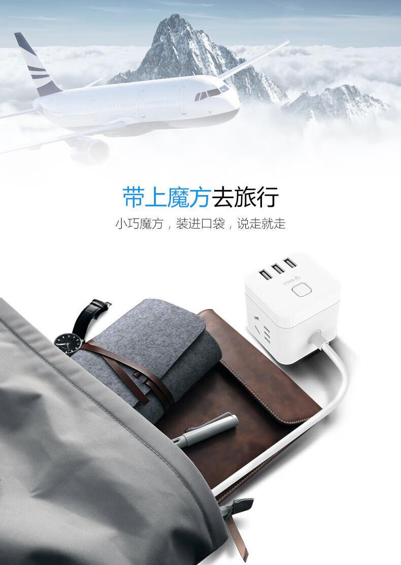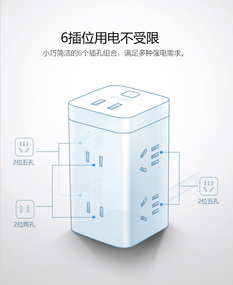 公牛(BULL)魔方插座带线 一转多插排电源转换器 家用办公排插学生宿舍电源拓展器带USB插座 旅游便携式排插 1.5米【3五孔+3USB】黑色 官方pc防阻燃外壳防触电保护小巧便携