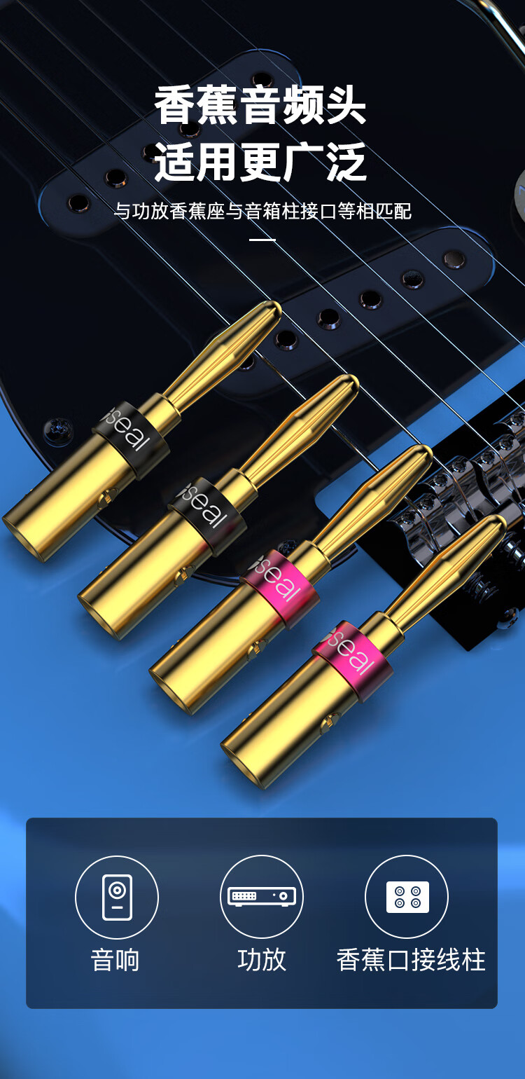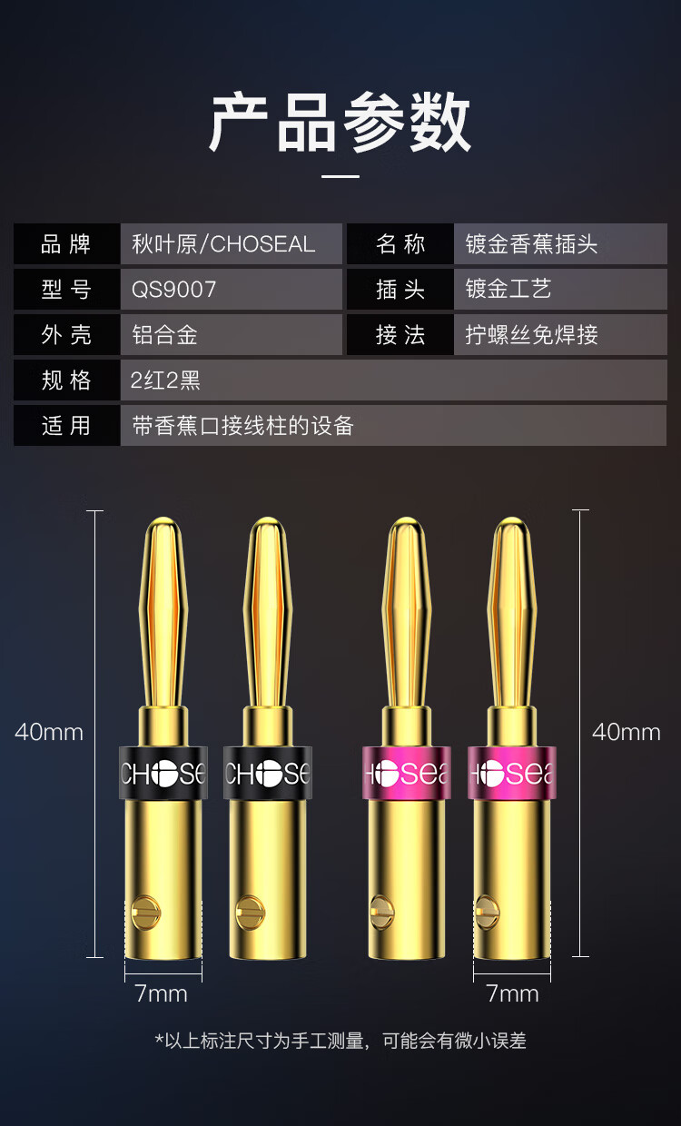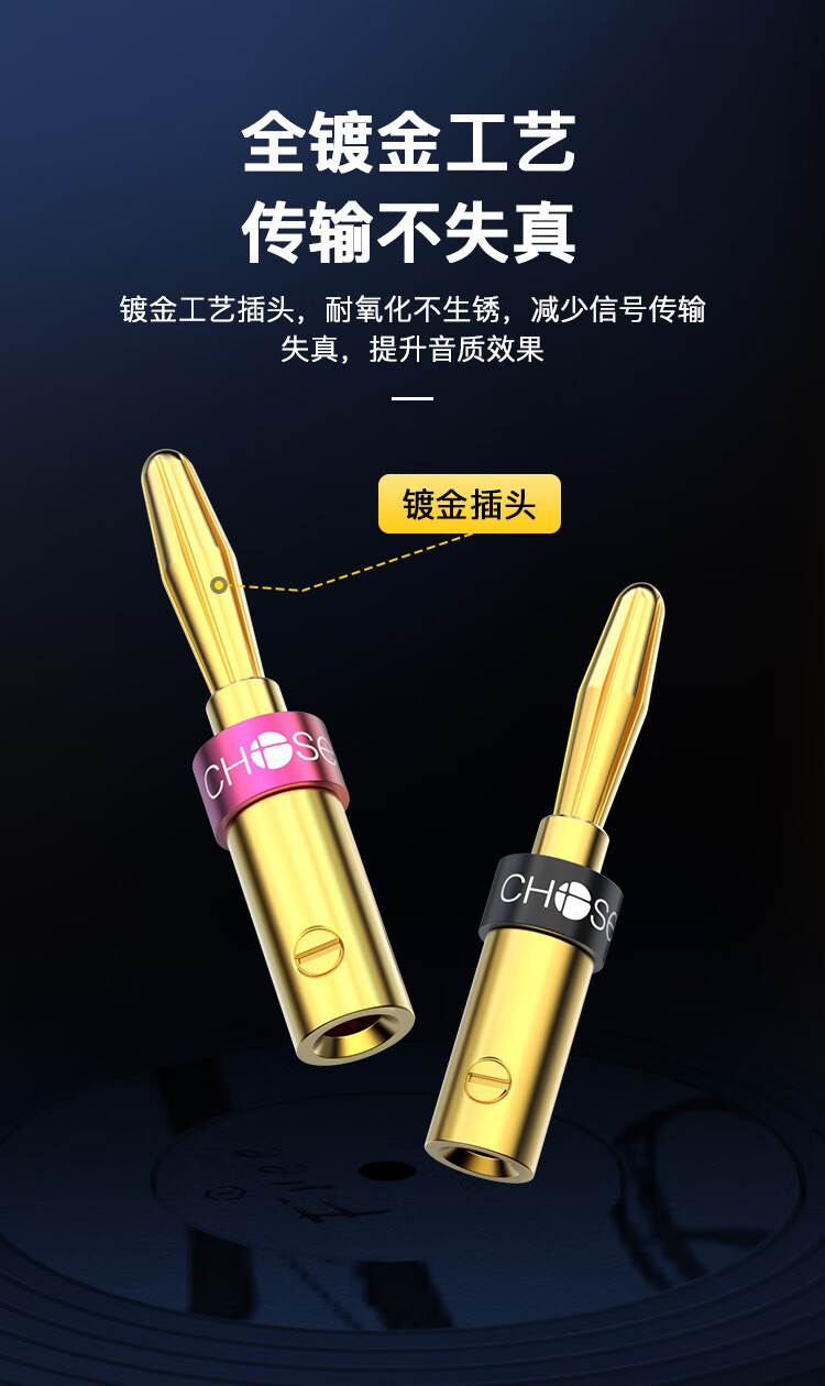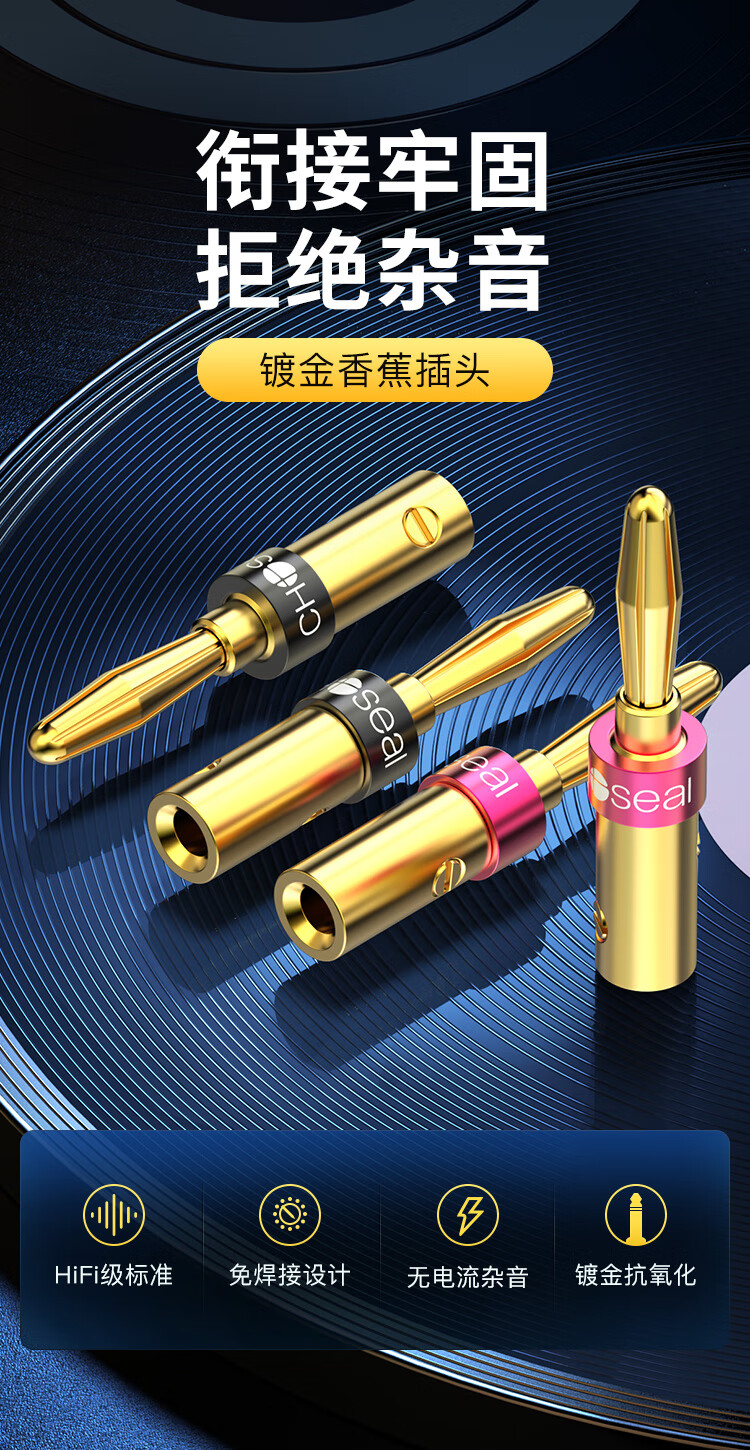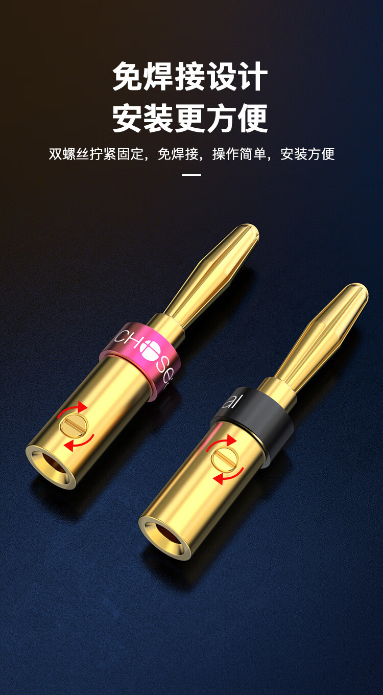 秋叶原(CHOSEAL)音频线音响线喇叭线香蕉头 音箱专用接线端子 免焊接 两对香蕉音频线插头 QS9007