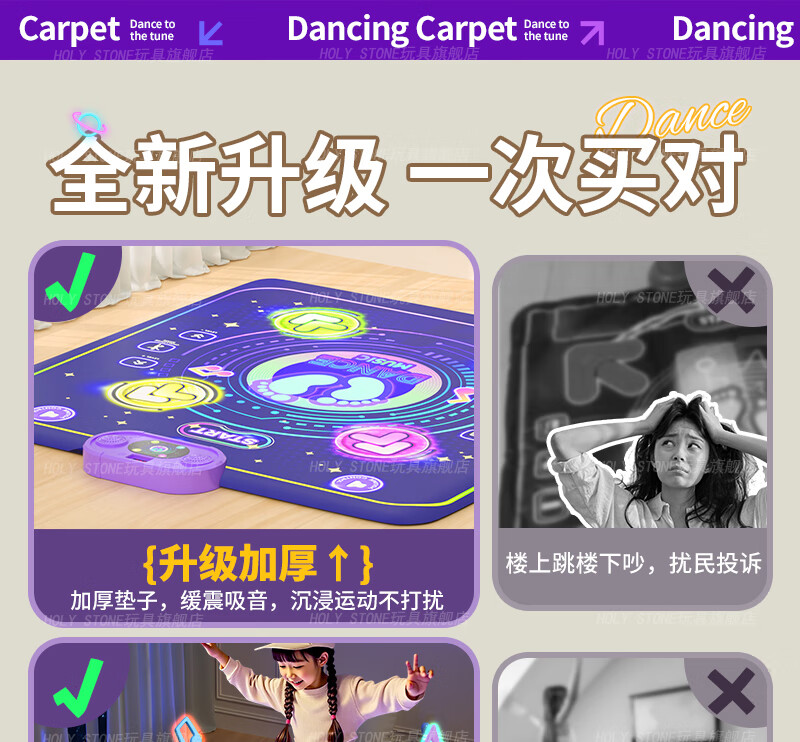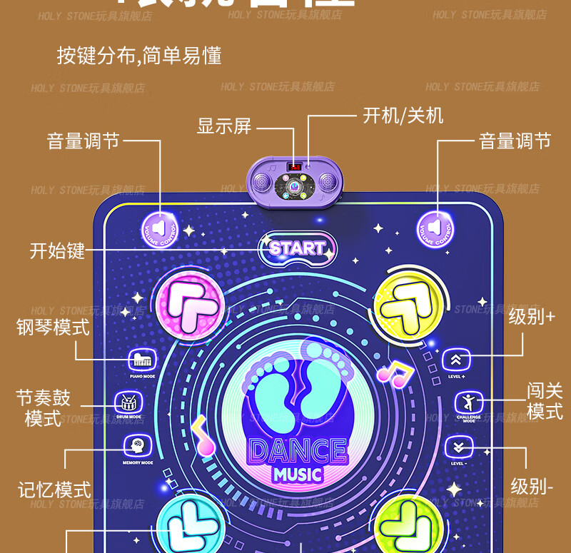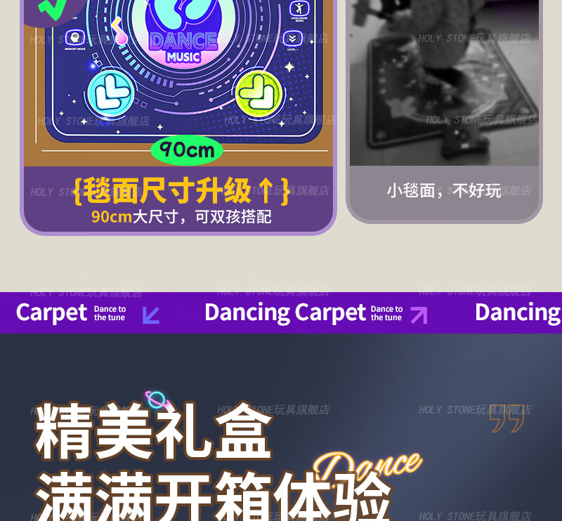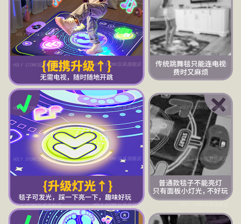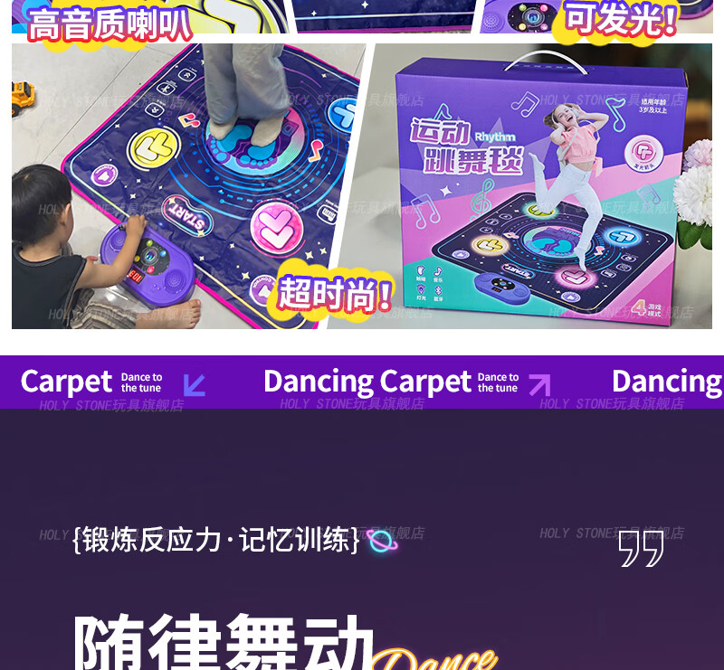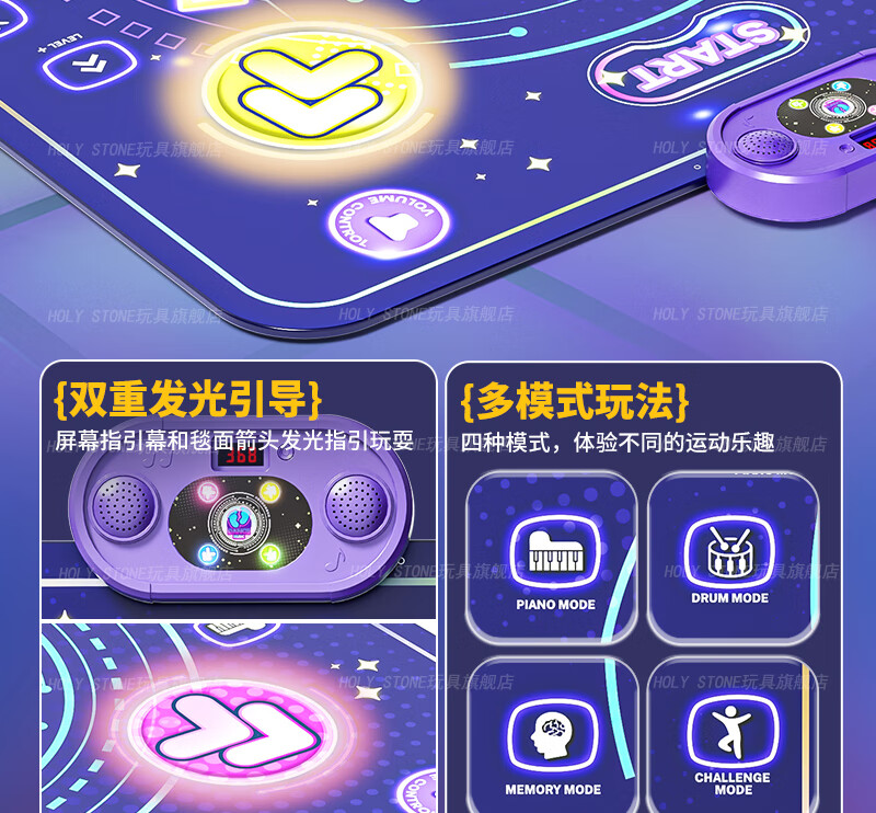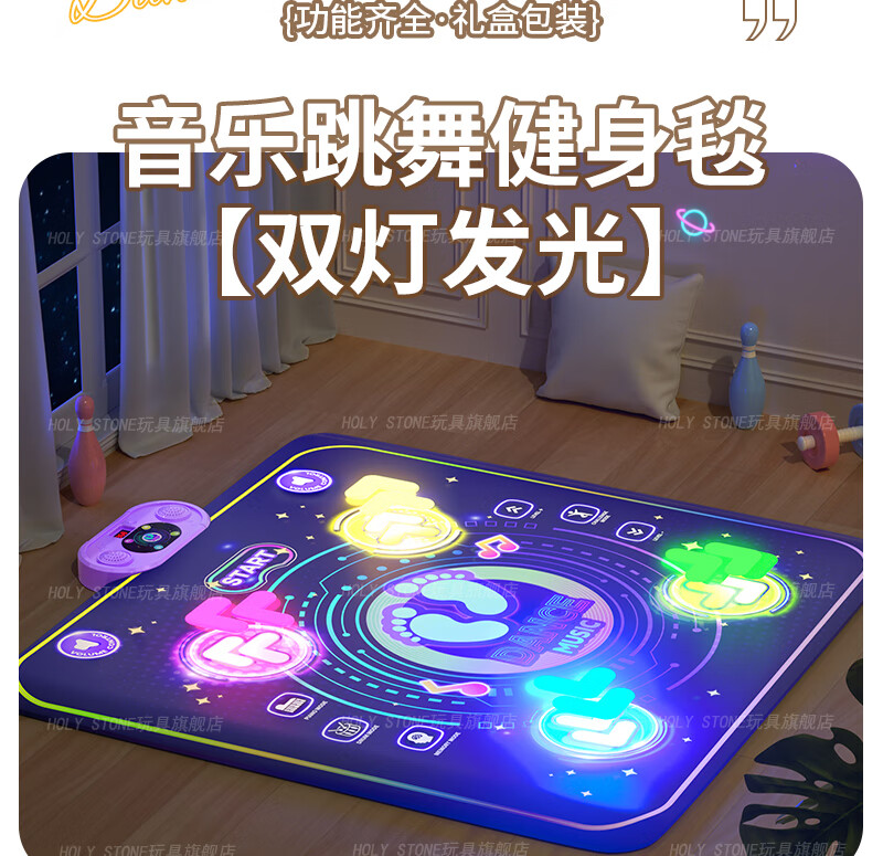 Holy STONE圣诞礼物儿童跳舞毯玩具女孩3-6岁音乐家用跳舞机7-14岁生日礼物 加大加厚【双灯充电】4模式+礼盒 女儿女童2026火的玩具5-8-10-12-15岁4-9岁