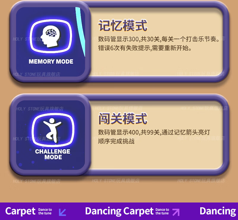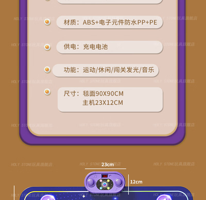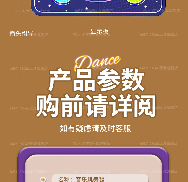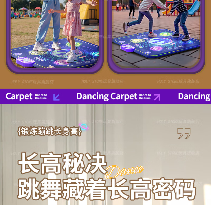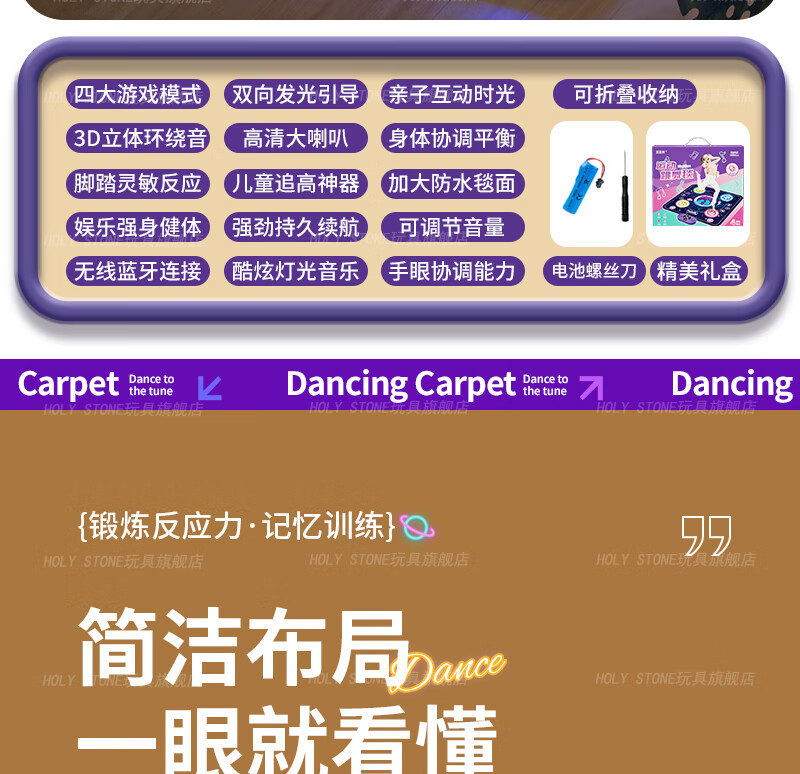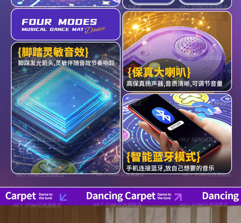 Holy STONE圣诞礼物儿童跳舞毯玩具女孩3-6岁音乐家用跳舞机7-14岁生日礼物 加大加厚【双灯充电】4模式+礼盒 女儿女童2026火的玩具5-8-10-12-15岁4-9岁