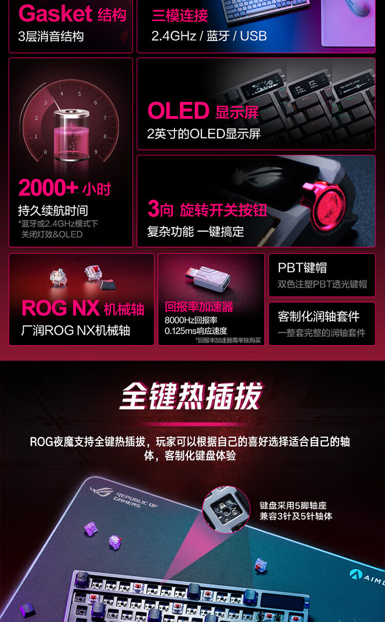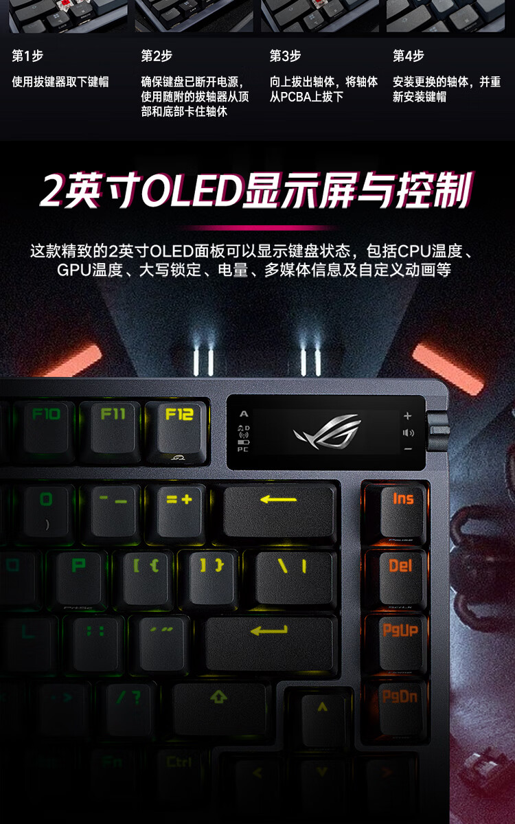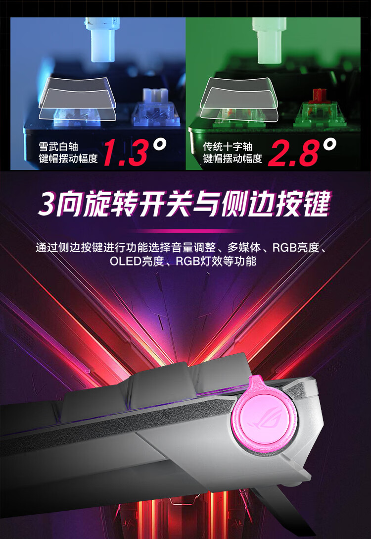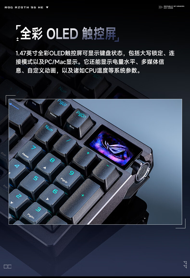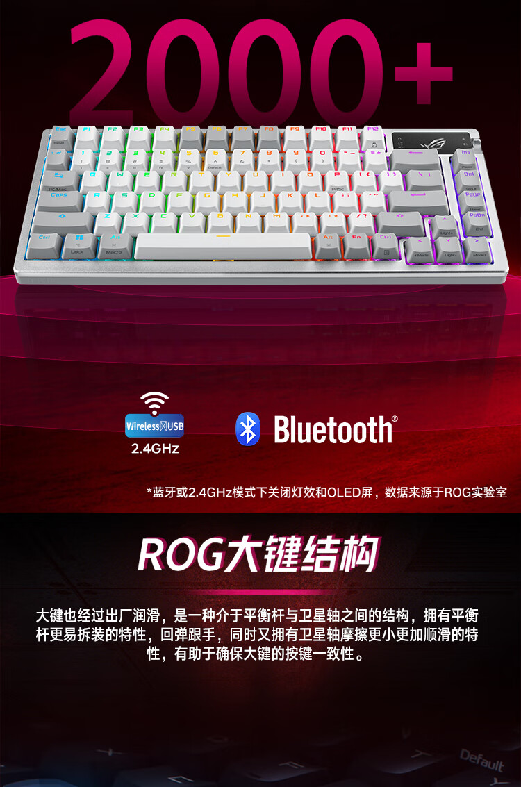 ROG夜魔 机械键盘/磁轴键盘 无线/蓝牙三模游戏键盘 RGB热插拔客制化Gasket结构OLED屏 无畏契约打瓦 夜魔98 HE 磁轴 月耀白 【重磅新品】