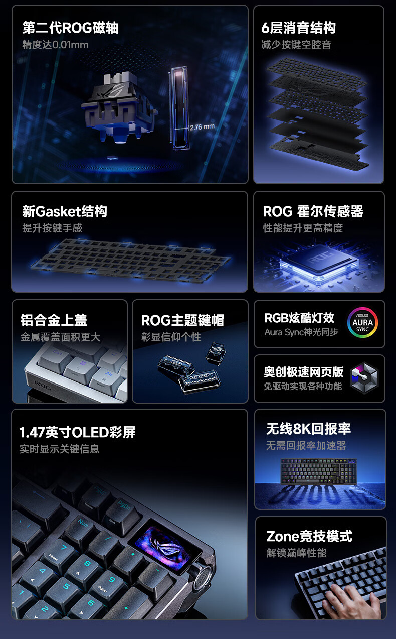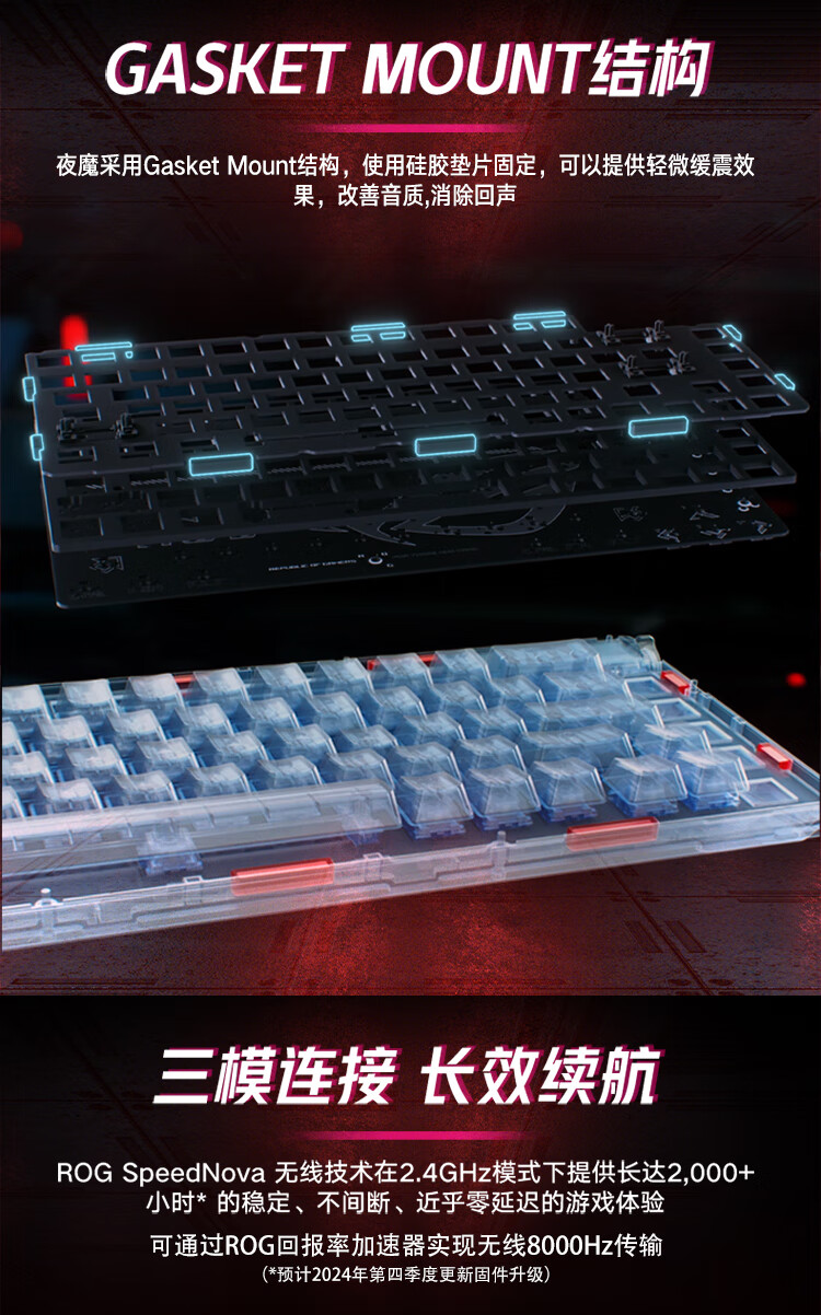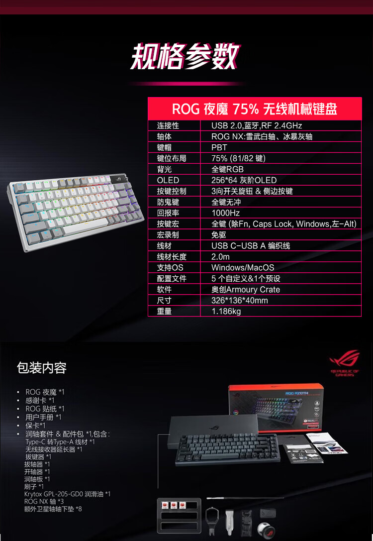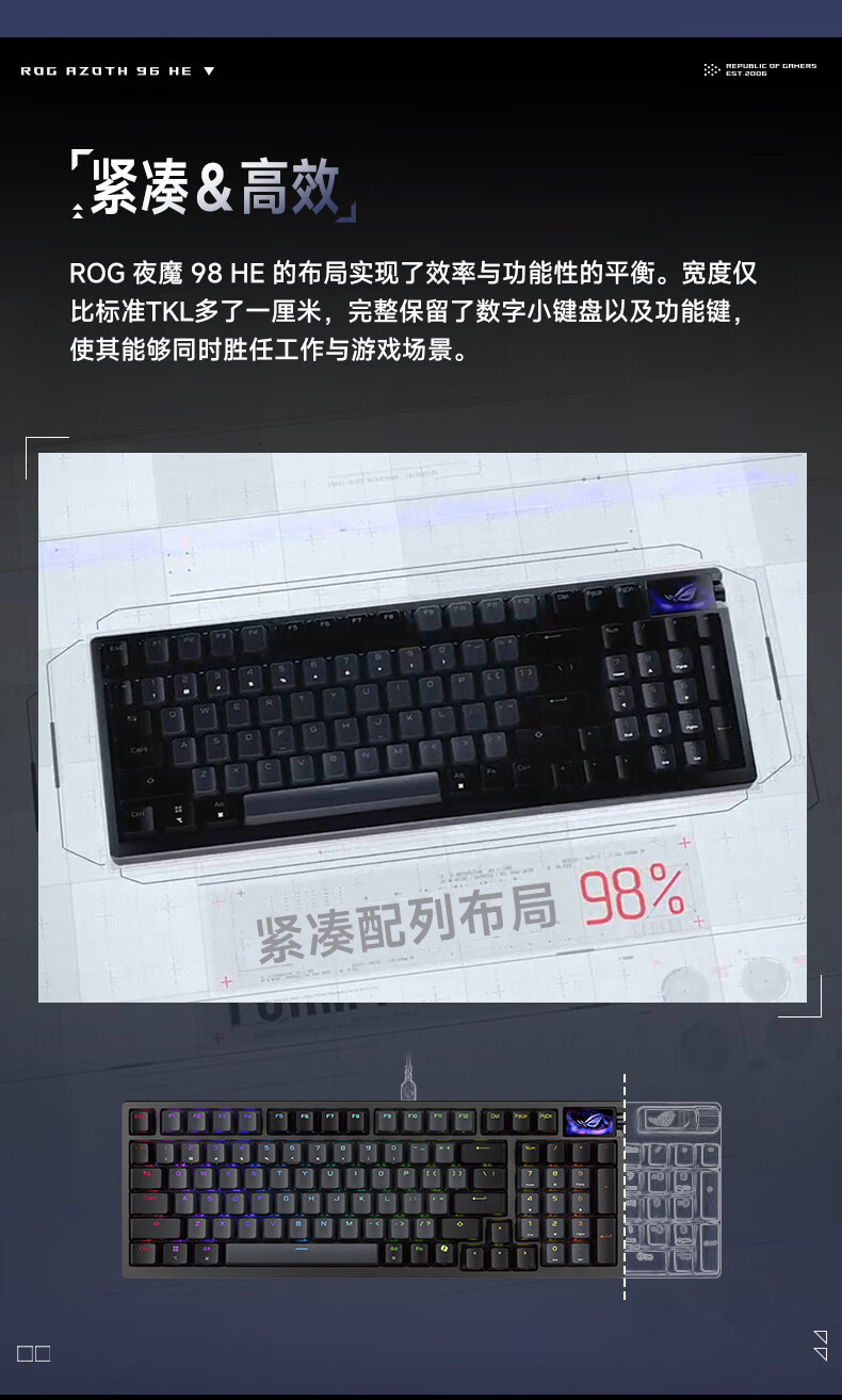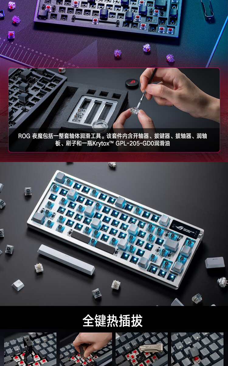 ROG夜魔 机械键盘/磁轴键盘 无线/蓝牙三模游戏键盘 RGB热插拔客制化Gasket结构OLED屏 无畏契约打瓦 夜魔98 HE 磁轴 月耀白 【重磅新品】