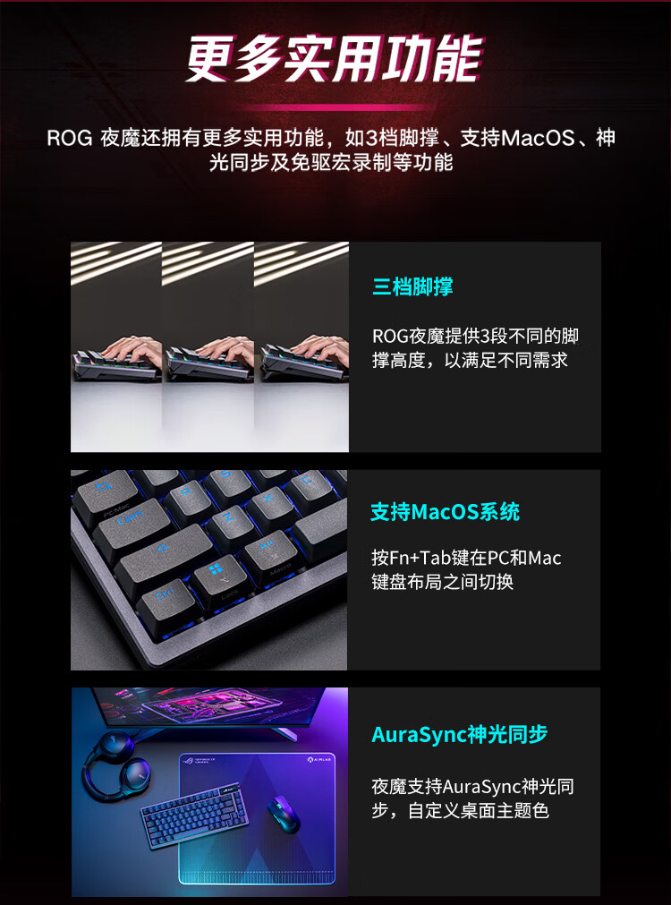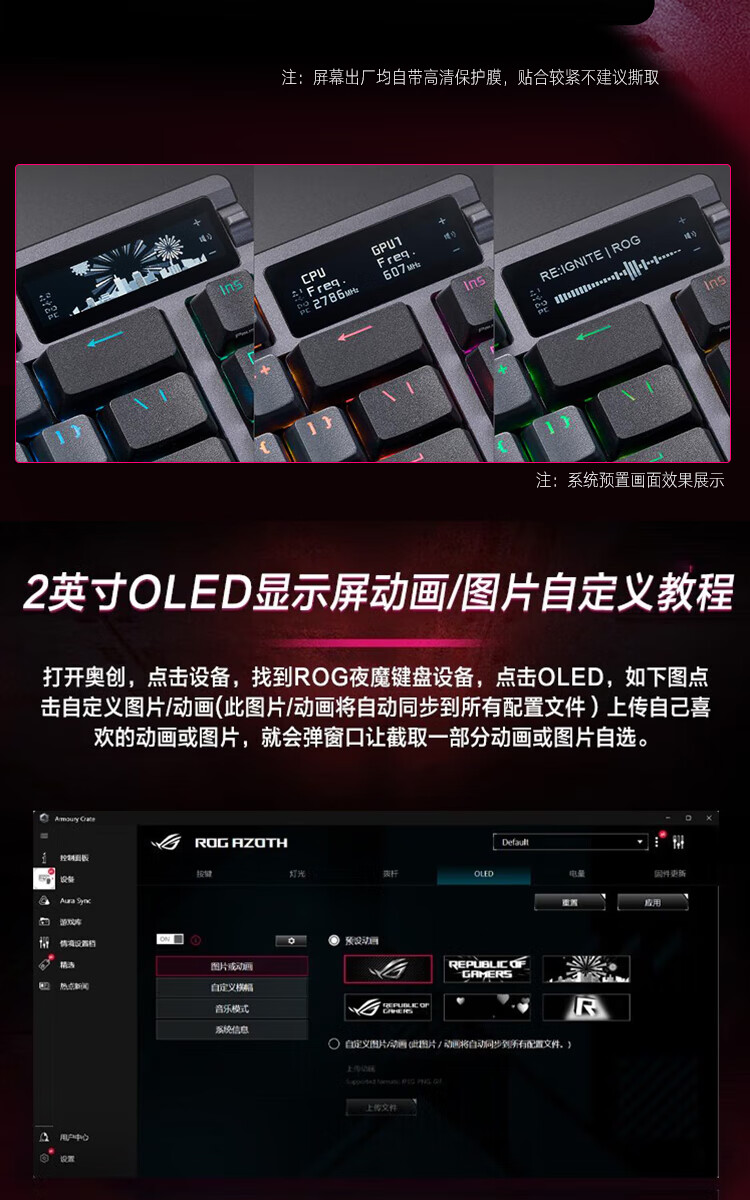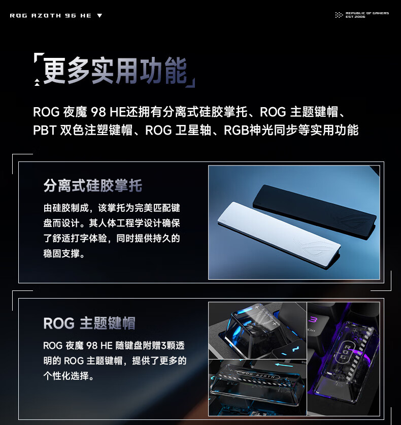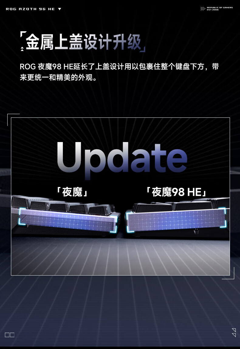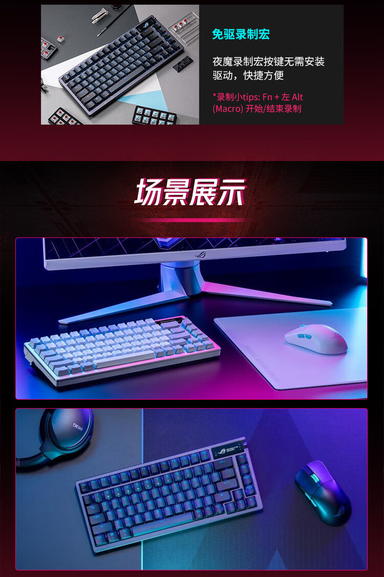 ROG夜魔 机械键盘/磁轴键盘 无线/蓝牙三模游戏键盘 RGB热插拔客制化Gasket结构OLED屏 无畏契约打瓦 夜魔98 HE 磁轴 月耀白 【重磅新品】