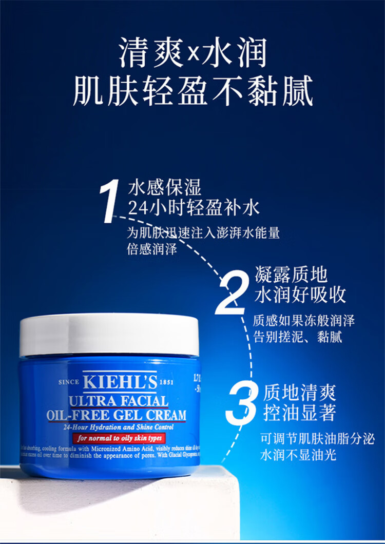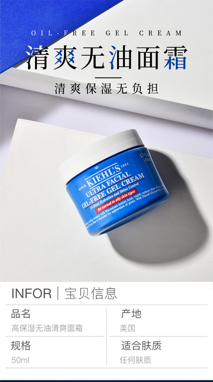 科颜氏(Kiehl's)高保湿面霜50ml清爽控油保湿混油皮推荐男女原装生日礼物