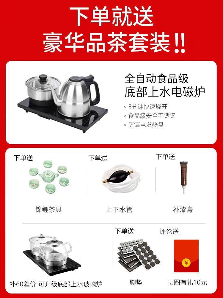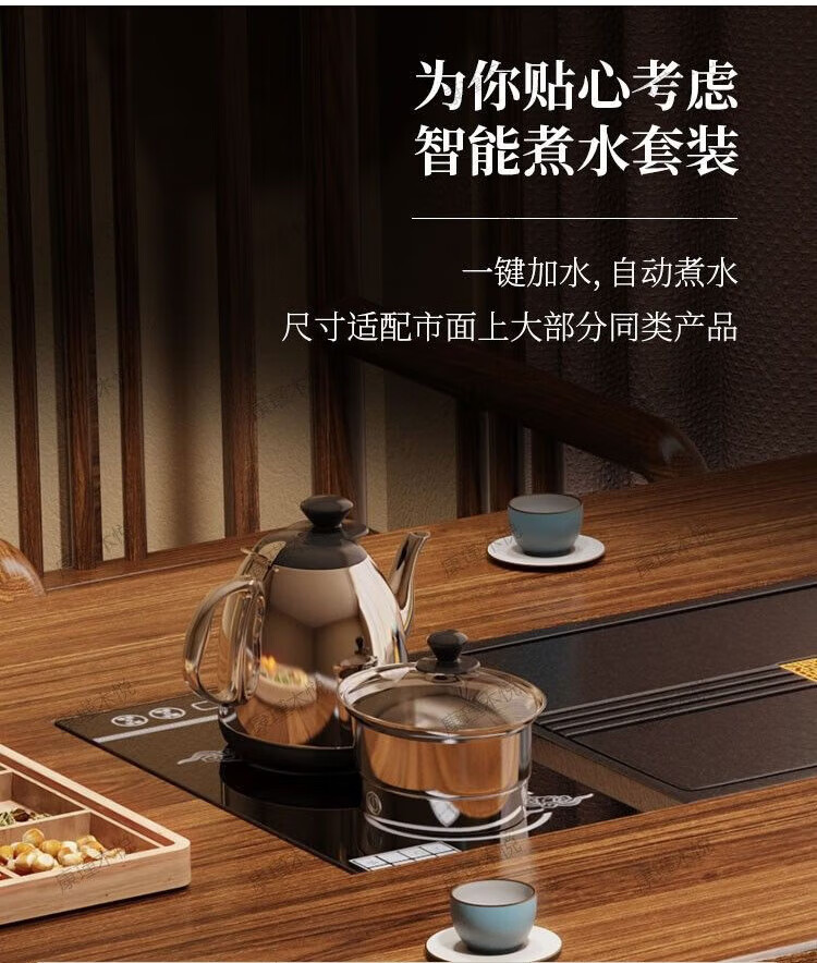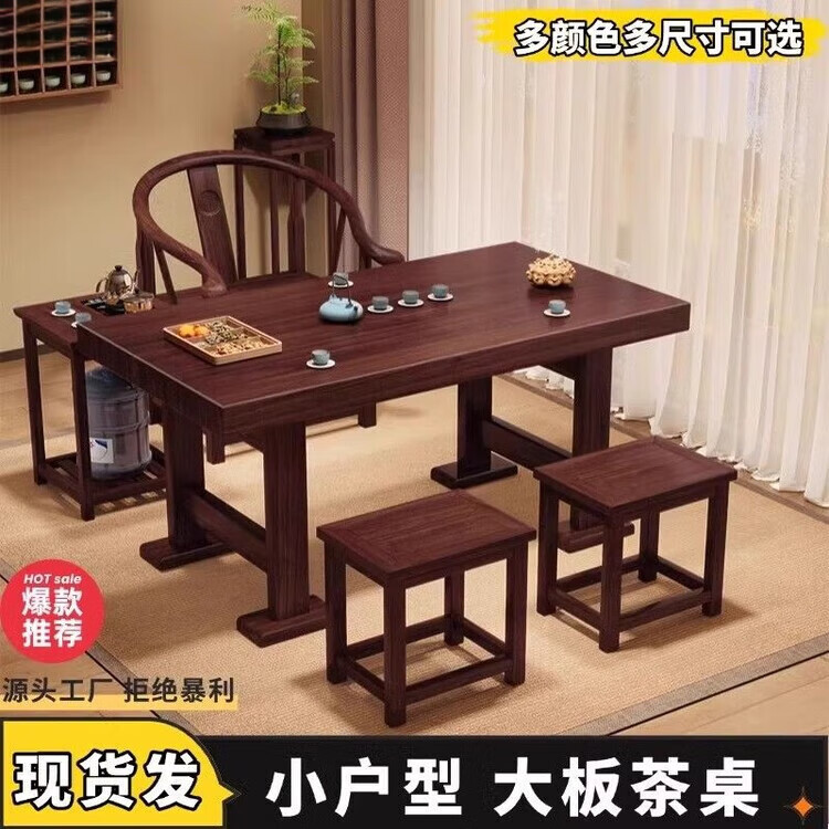 迈途森阳台小户型茶桌椅组合新中式实木办公茶几家用功夫干泡台大板桌 胡桃色1.4米长 【石茶盘】+1牛角+礼包