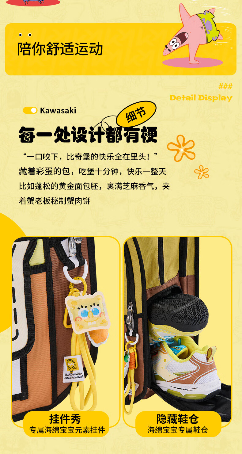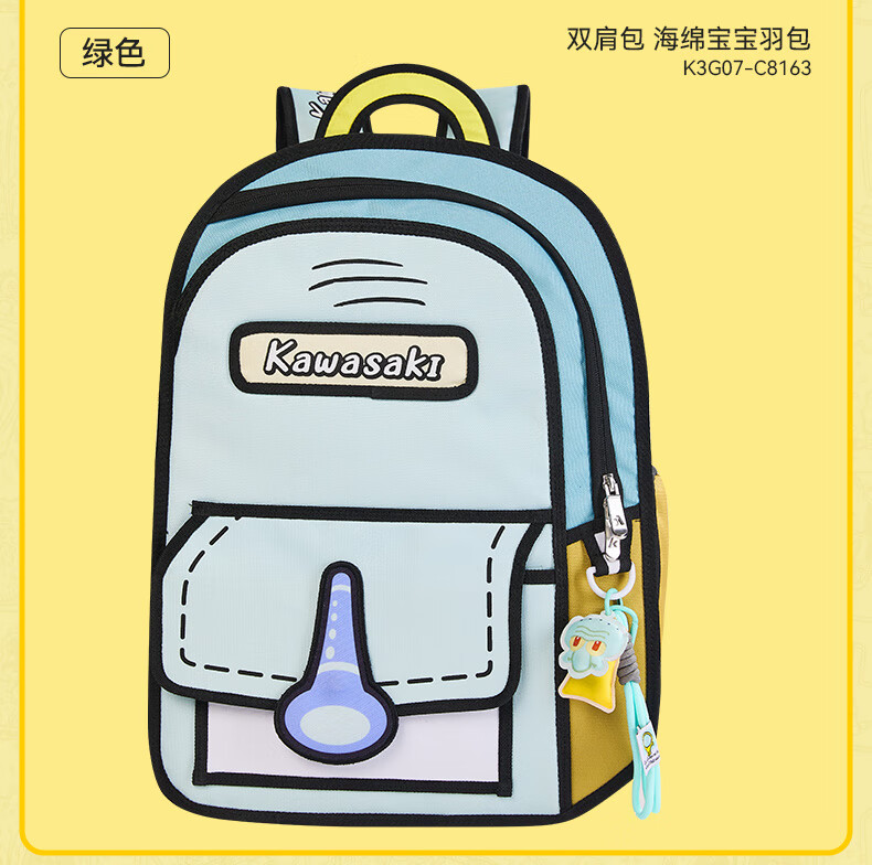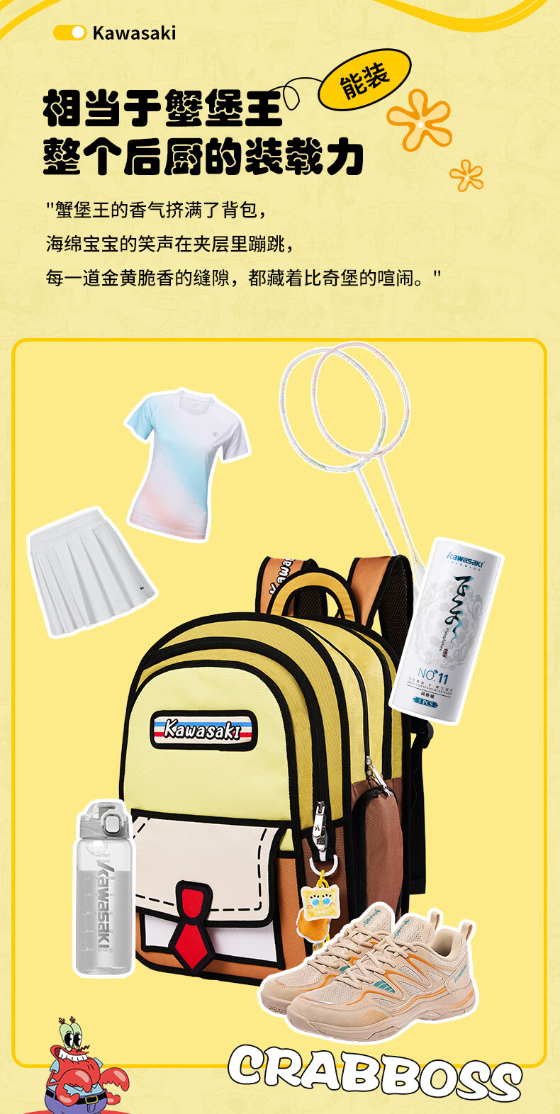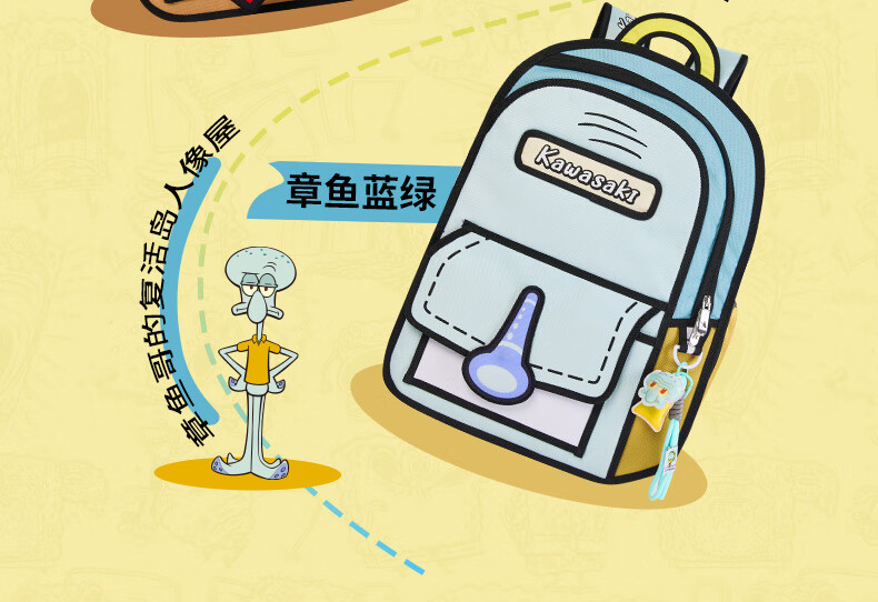 川崎(KAWASAKI)海绵宝宝联名款羽毛球包双肩包漫画风时尚运动包独立鞋仓超大容量 【章鱼哥】漫画风|羽球双肩包-C8250