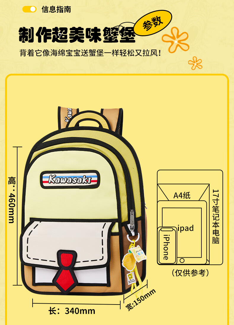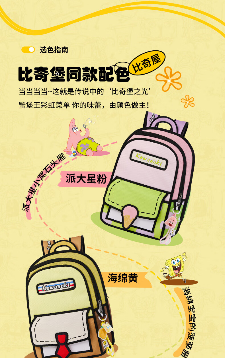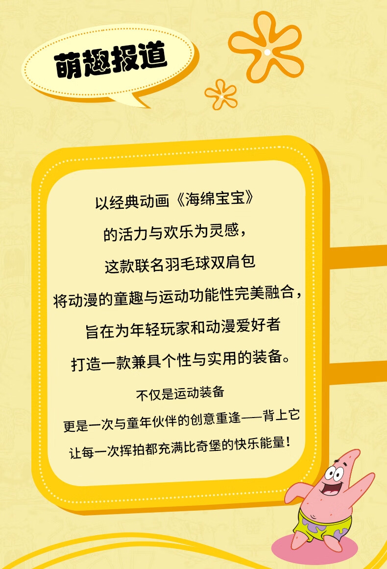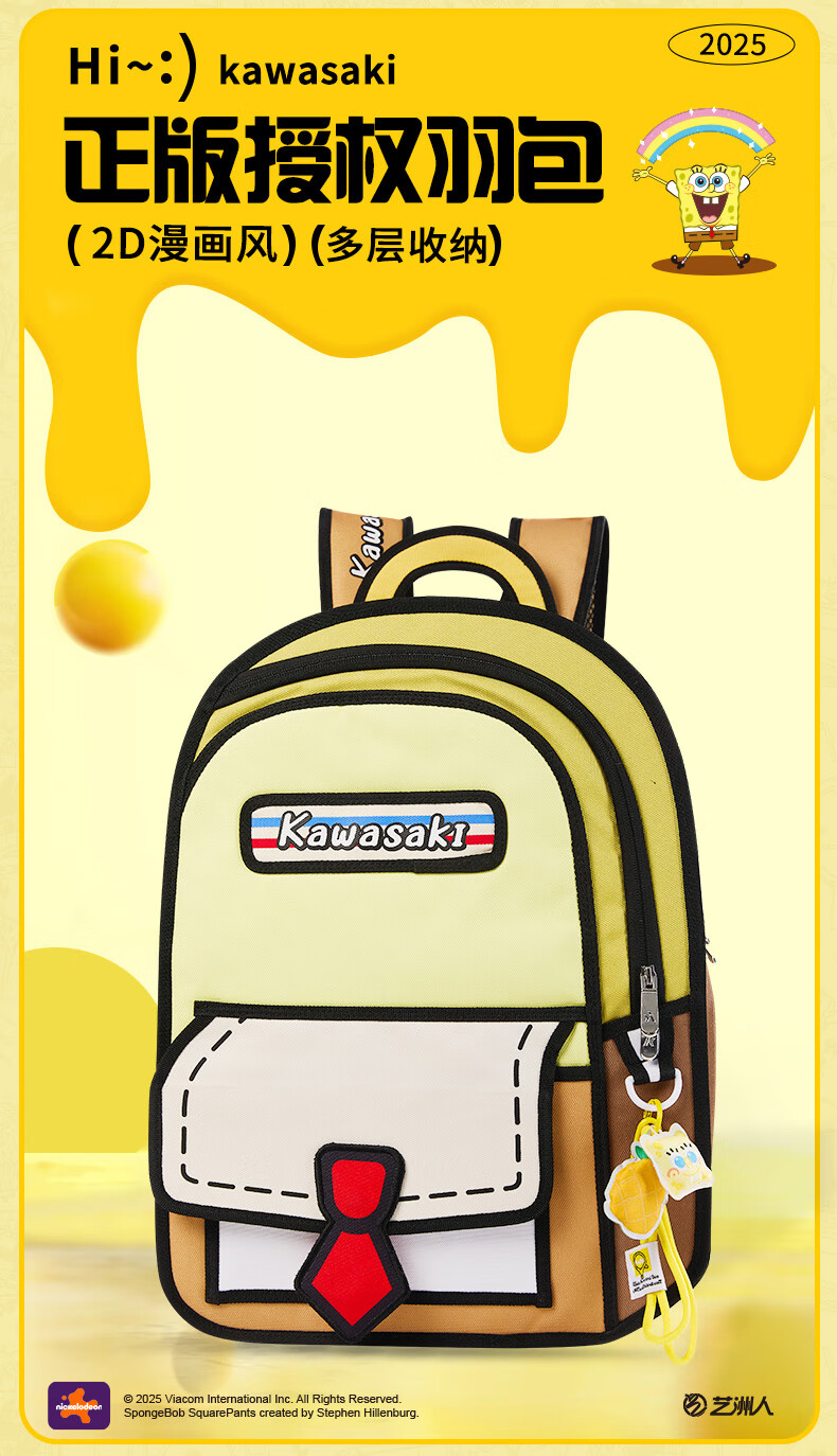 川崎(KAWASAKI)海绵宝宝联名款羽毛球包双肩包漫画风时尚运动包独立鞋仓超大容量 【章鱼哥】漫画风|羽球双肩包-C8250