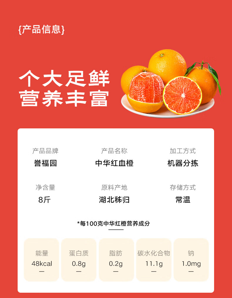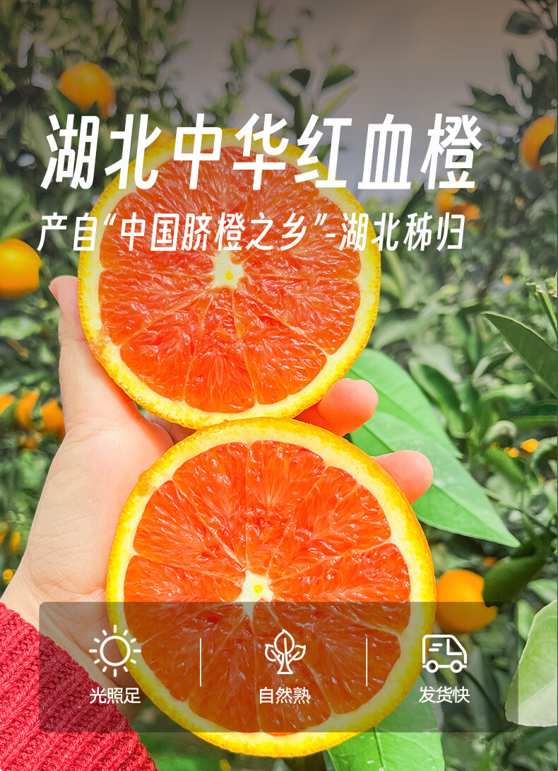 京鲜生 湖北中华红血橙 净重8斤 单果150g+ 新鲜水果源头直发包邮
