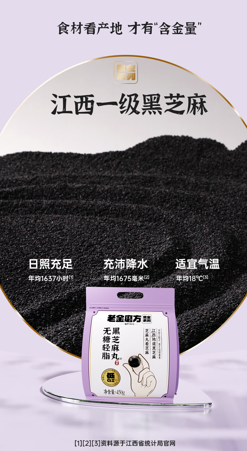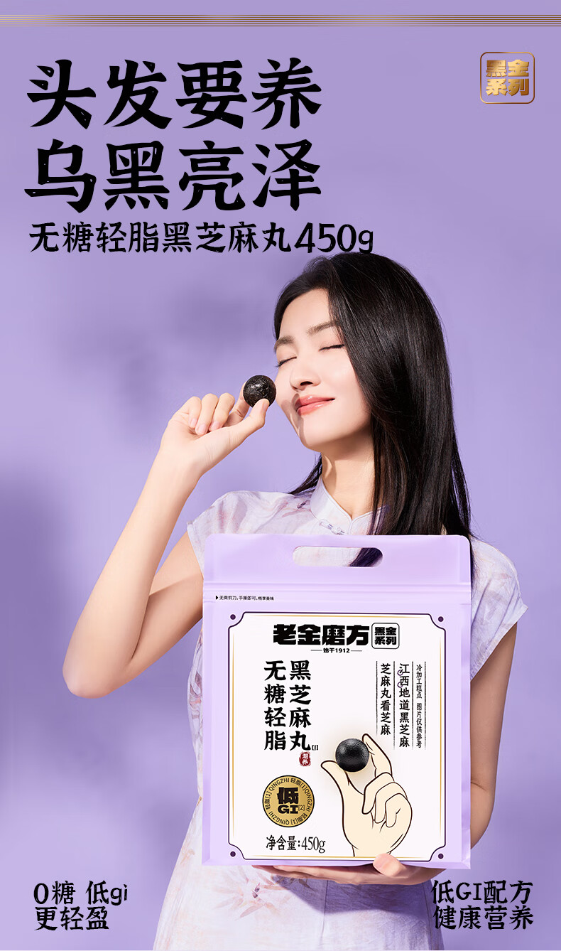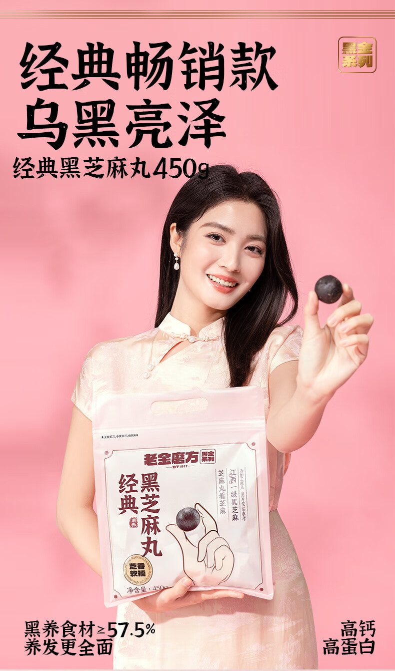 老金磨方【黑金系列】黑芝麻丸450g 九蒸九晒健康零食即食糕点 【高钙高蛋白】轻脂黑芝麻丸 450g*1袋