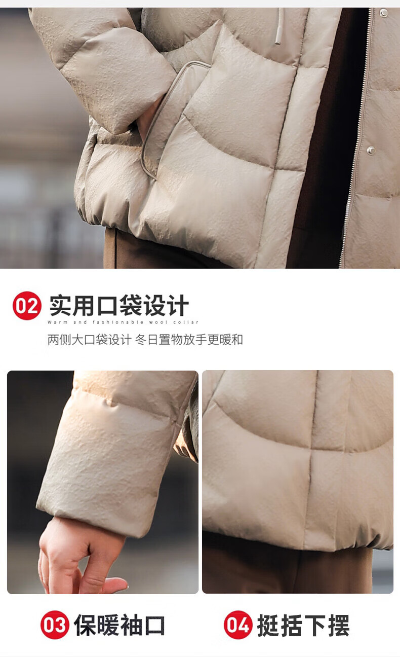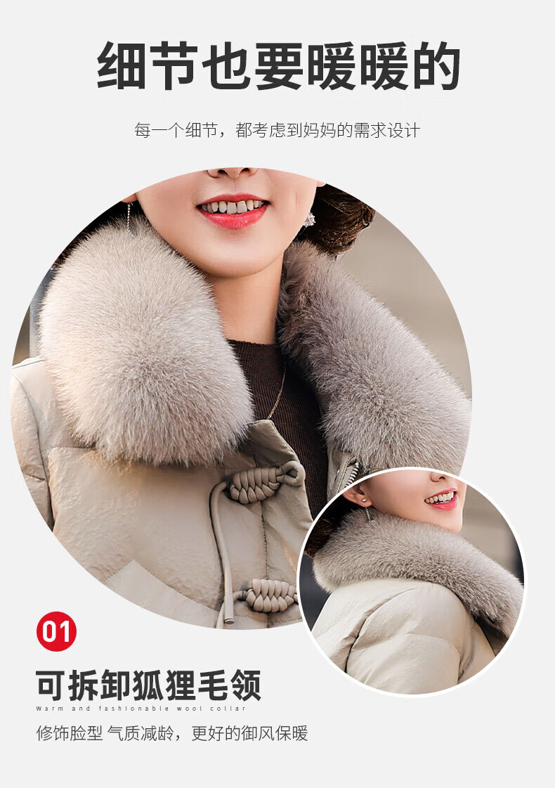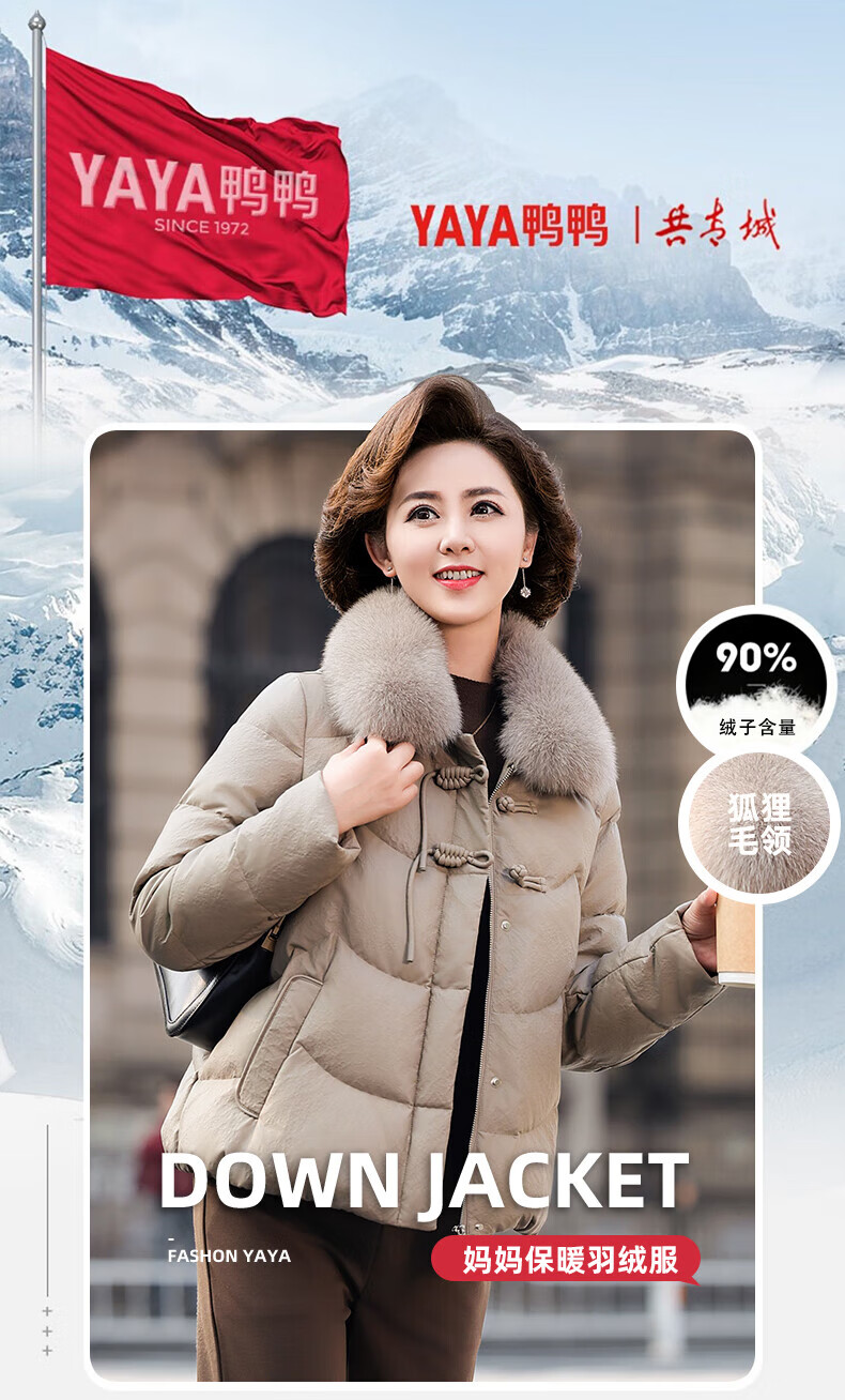 鸭鸭(YAYA) 狐狸毛领冬季羽绒服女士中老年妈妈冬装新款加厚连帽厚外套送礼 卡其色 2XL 建议115-130斤