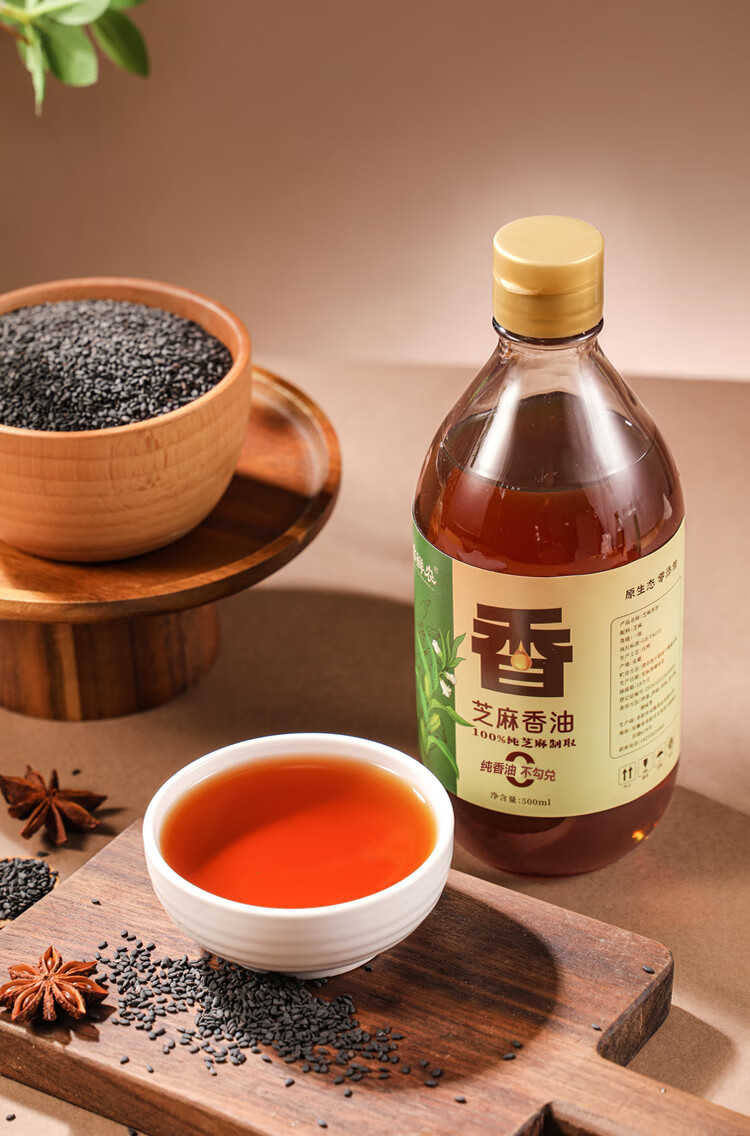 芝麻香油100%纯黑芝麻油火锅蘸料拌菜拌面家用调味500ml黑芝麻油 古鲜农黑芝麻油500ml*2玻璃瓶