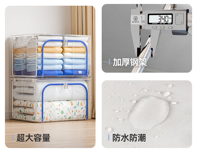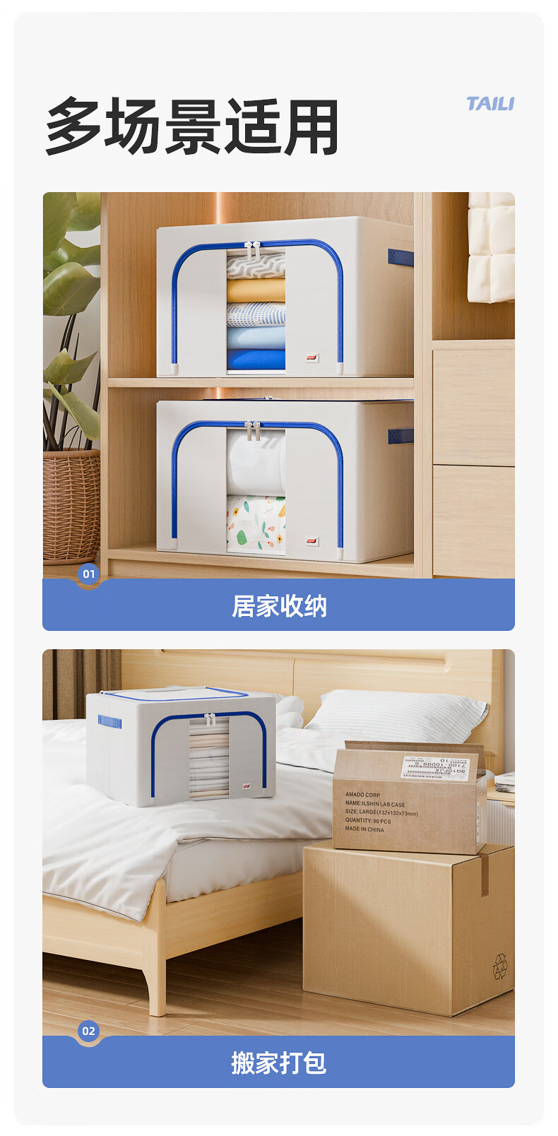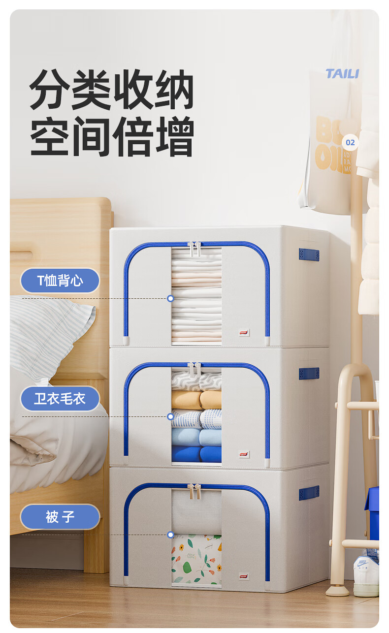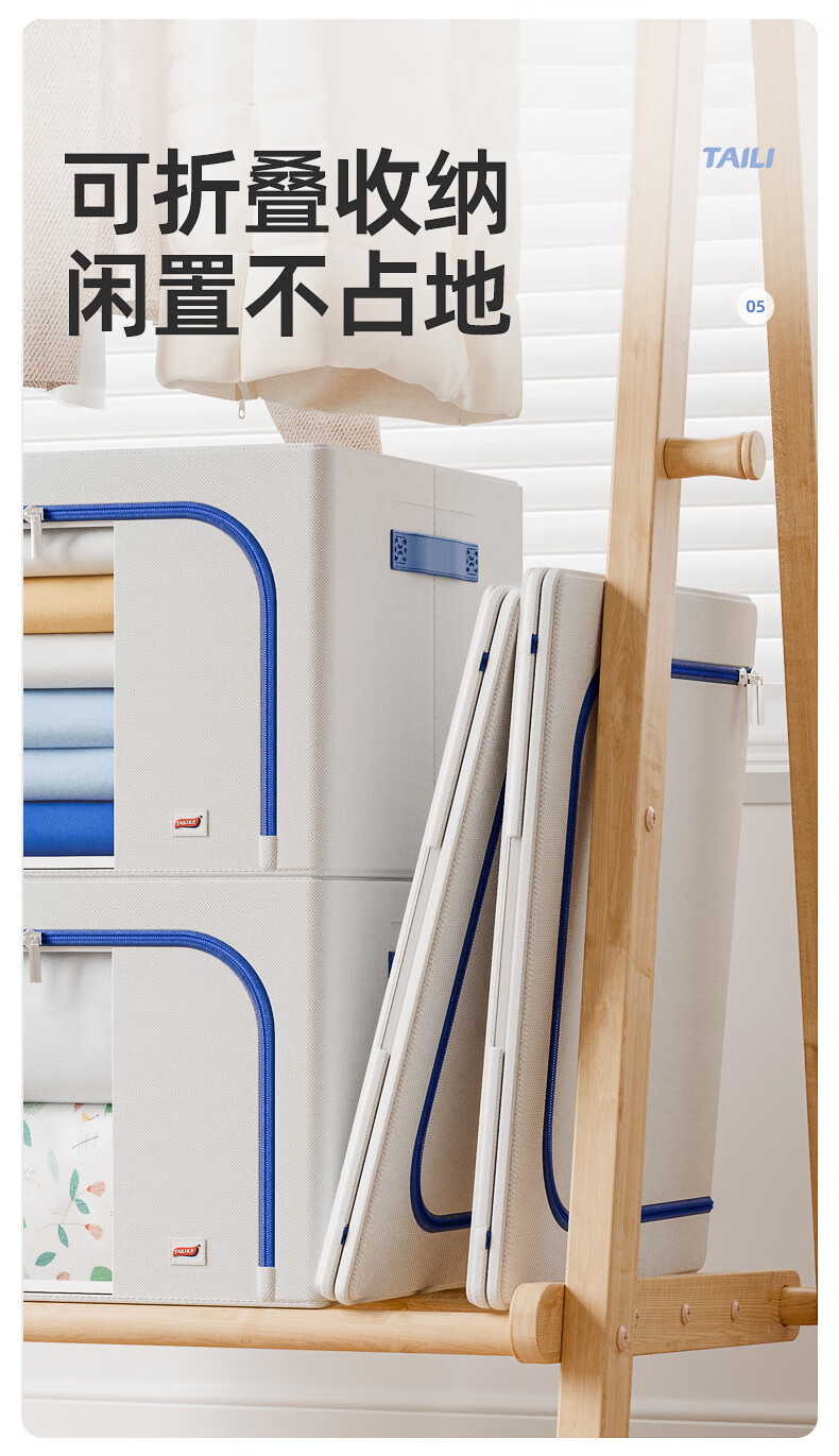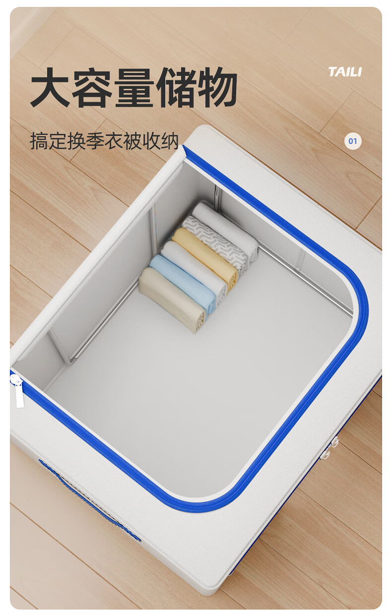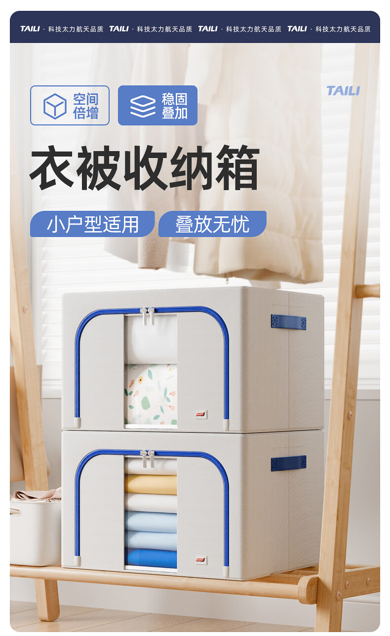 太力收纳箱衣服棉被布艺牛津布玩具储物箱搬家箱折叠百纳箱盒一个装 【环保牛津布收纳箱】66L